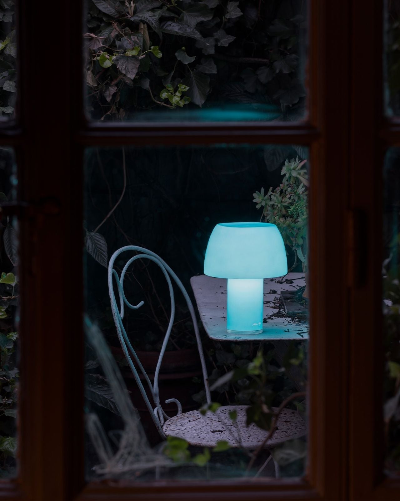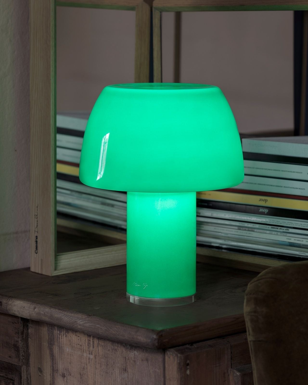 Featuring a sleek and innovative design by Álvaro Siza, this table lamp is portable, rechargeable, and has a 15-hour battery life. Its IP54 rating ensures protection against dust and water splashes from any direction, making it suitable for outdoor spaces like patios and gardens. The lamp, available in white, blue, yellow, orange, or green translucent glass, provides a soft and glare-free light, perfect for elevating the atmosphere of exterior or interior spaces.