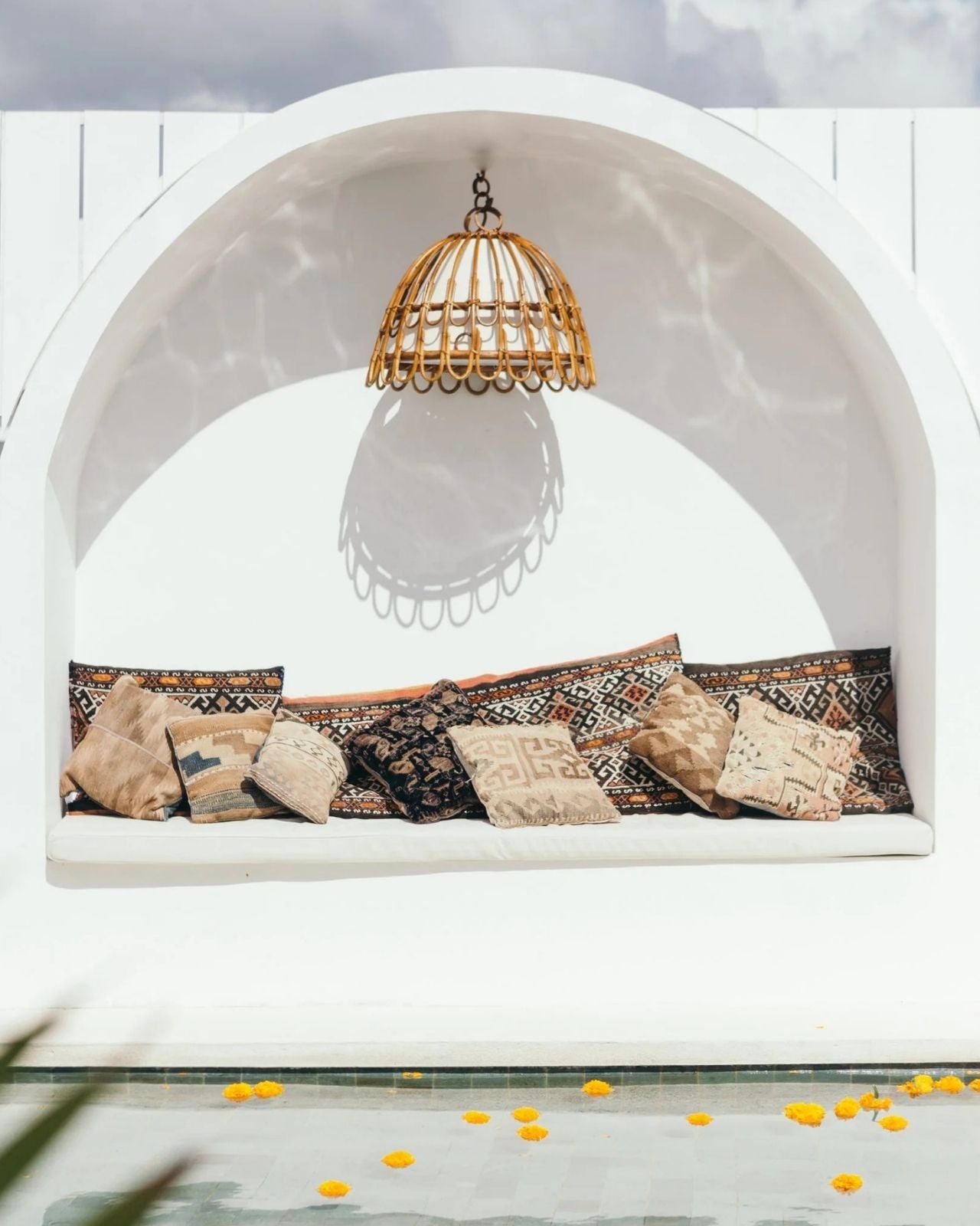 Natural Bleach Rattan Dome Pendant Lounge Area