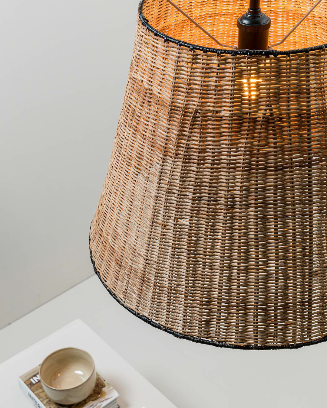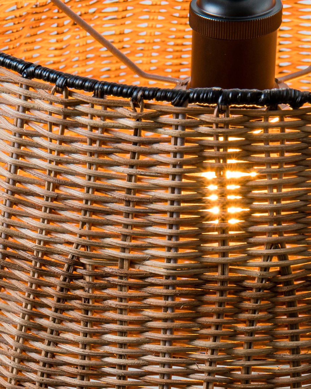 Black and Natural Rattan Pendant Light