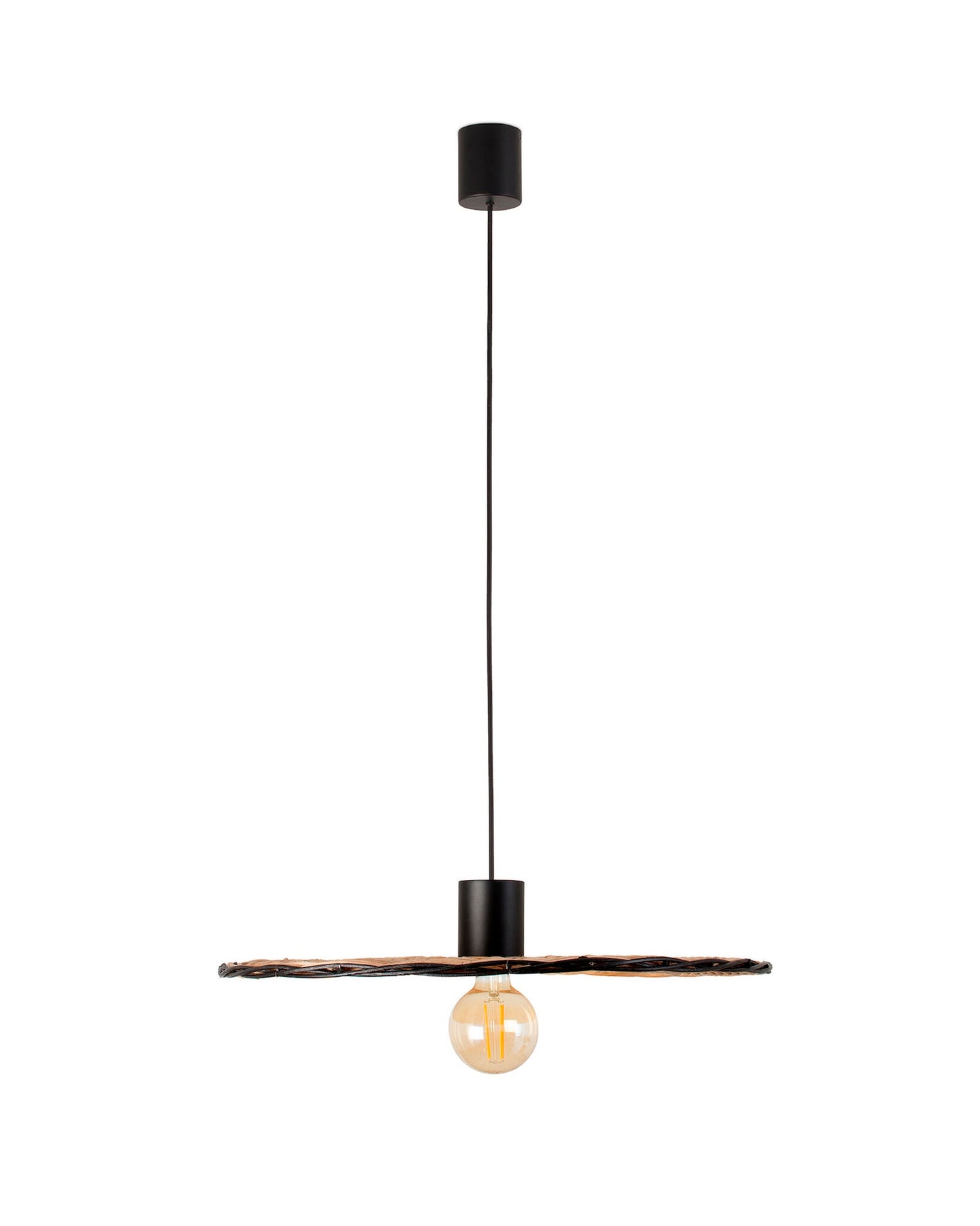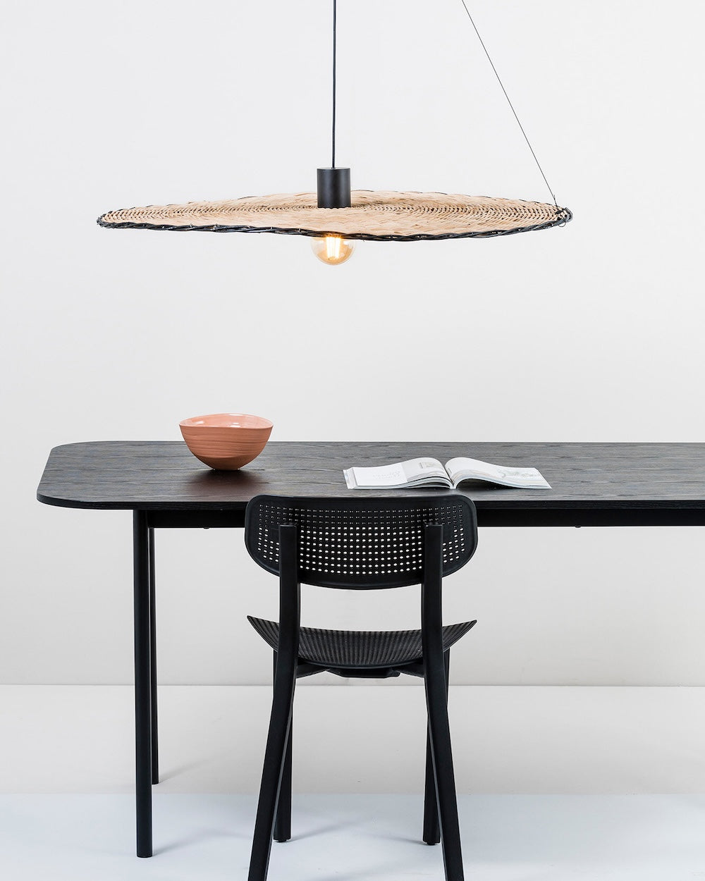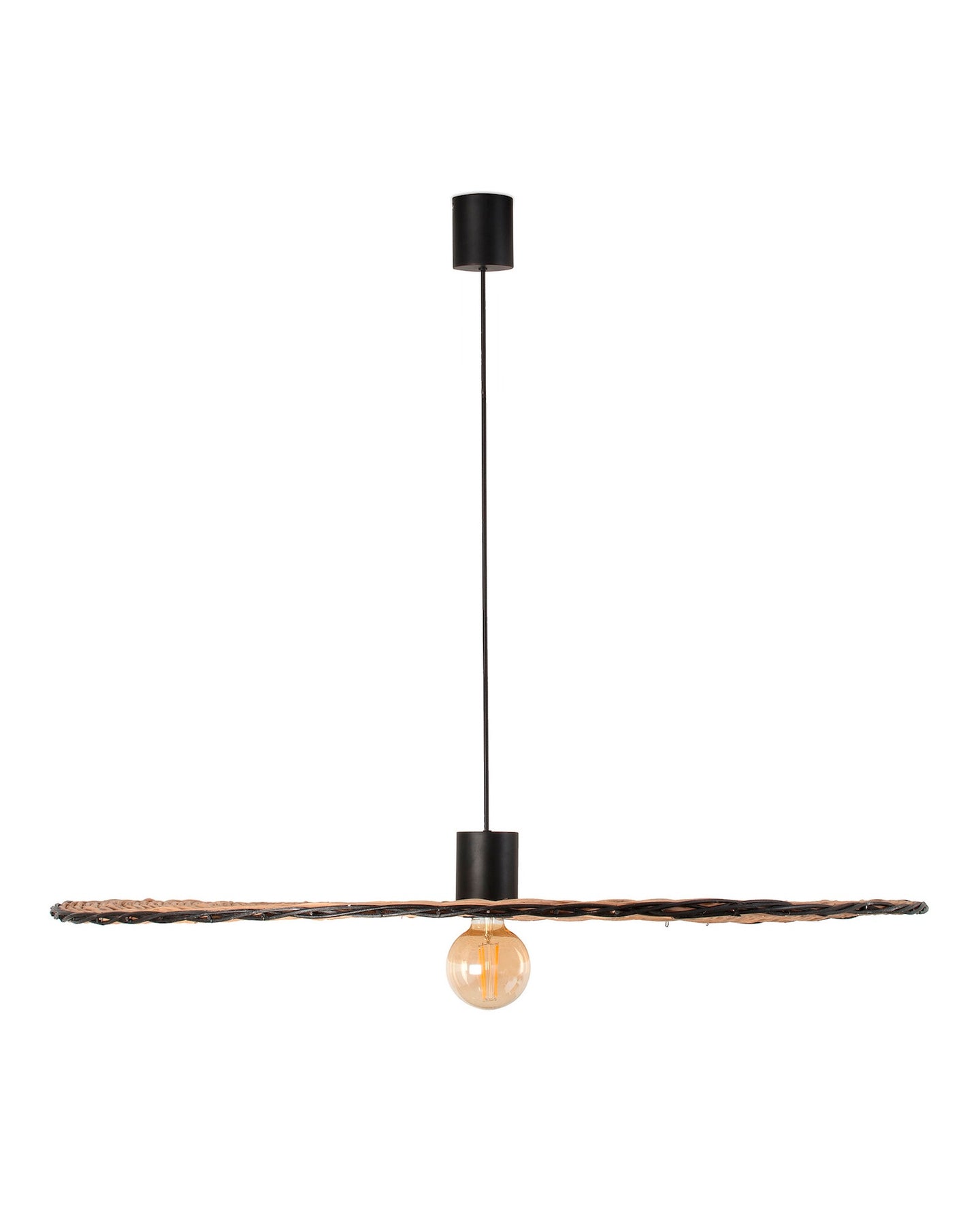 Designed and handmade with natural fibres, this rattan disc pendant light is a perfect mix between a Mediterranean style and minimalism and will stand out over a dining table or in a living room. The Mediterranean Rattan Disc Pendant Light features a round disc shade available in two sizes and will bring warmth as well as elegance to any interior space due to its subtle black detail.