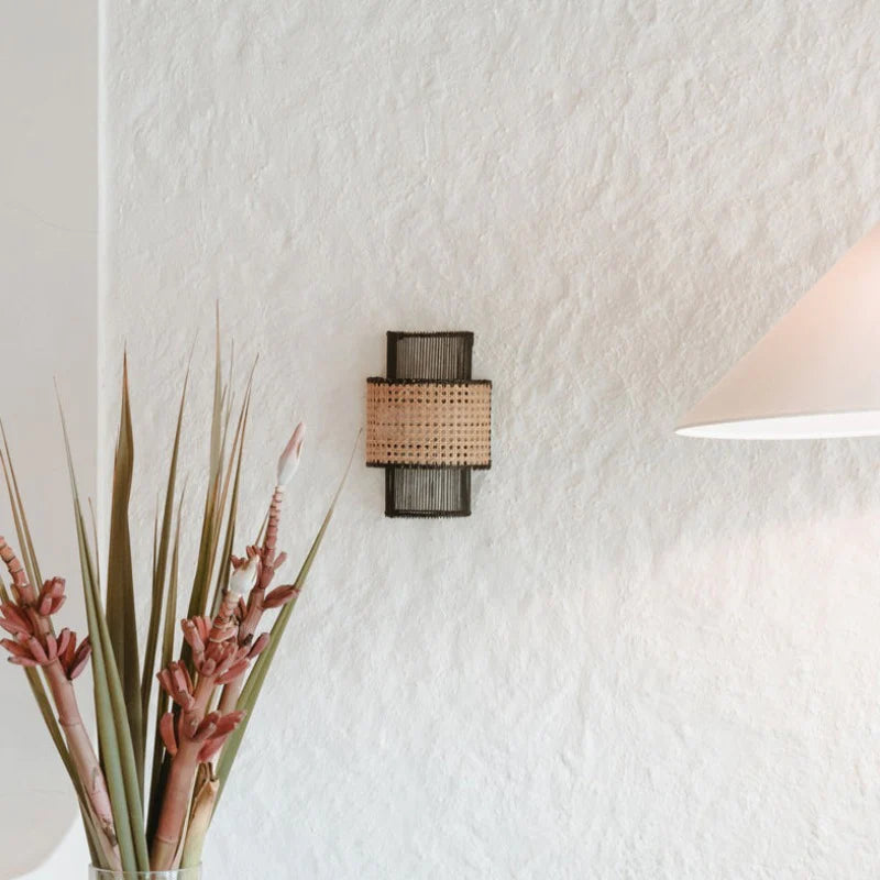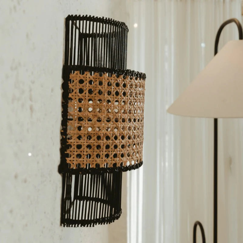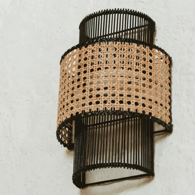 Tiered Tall Rattan Wall Light