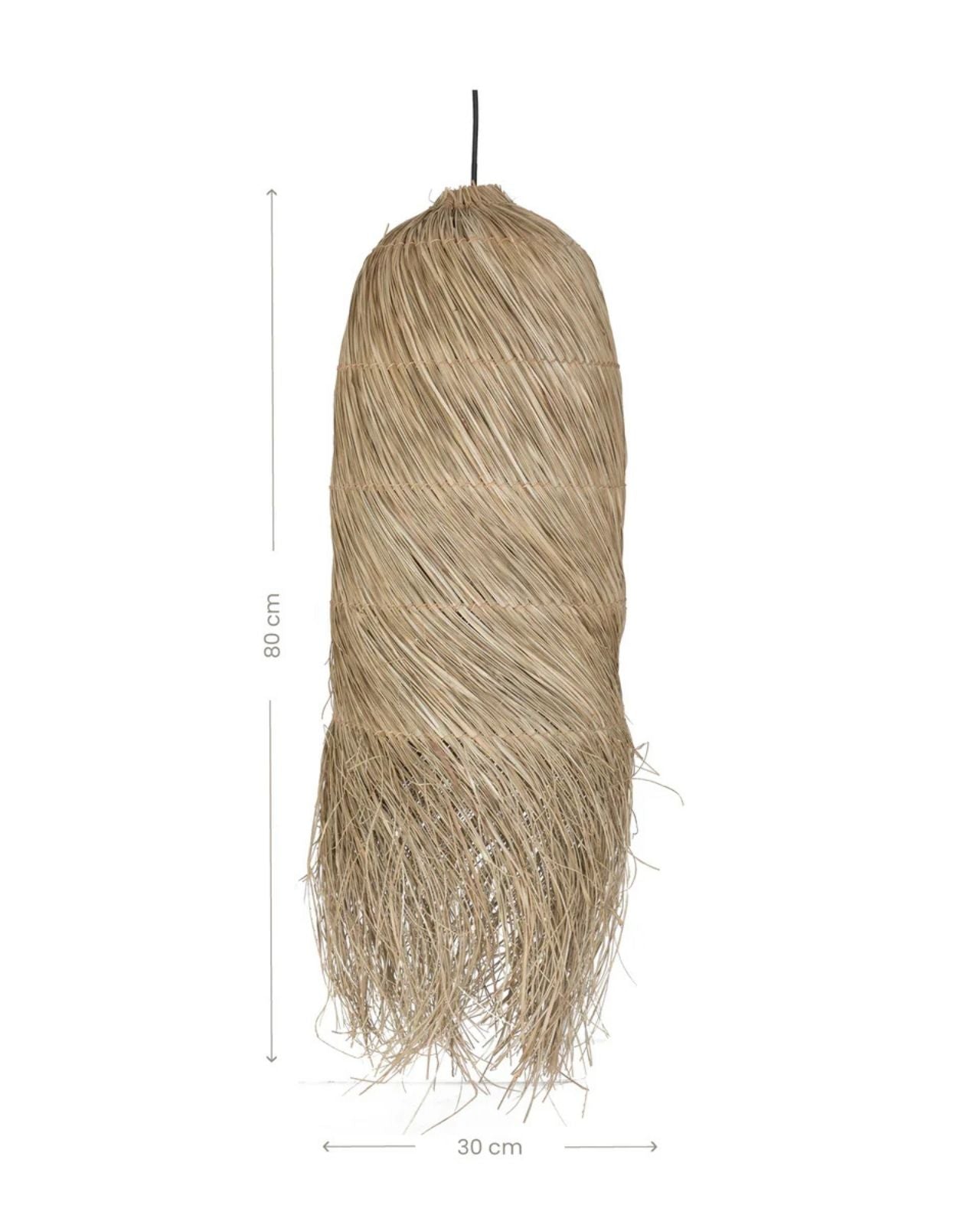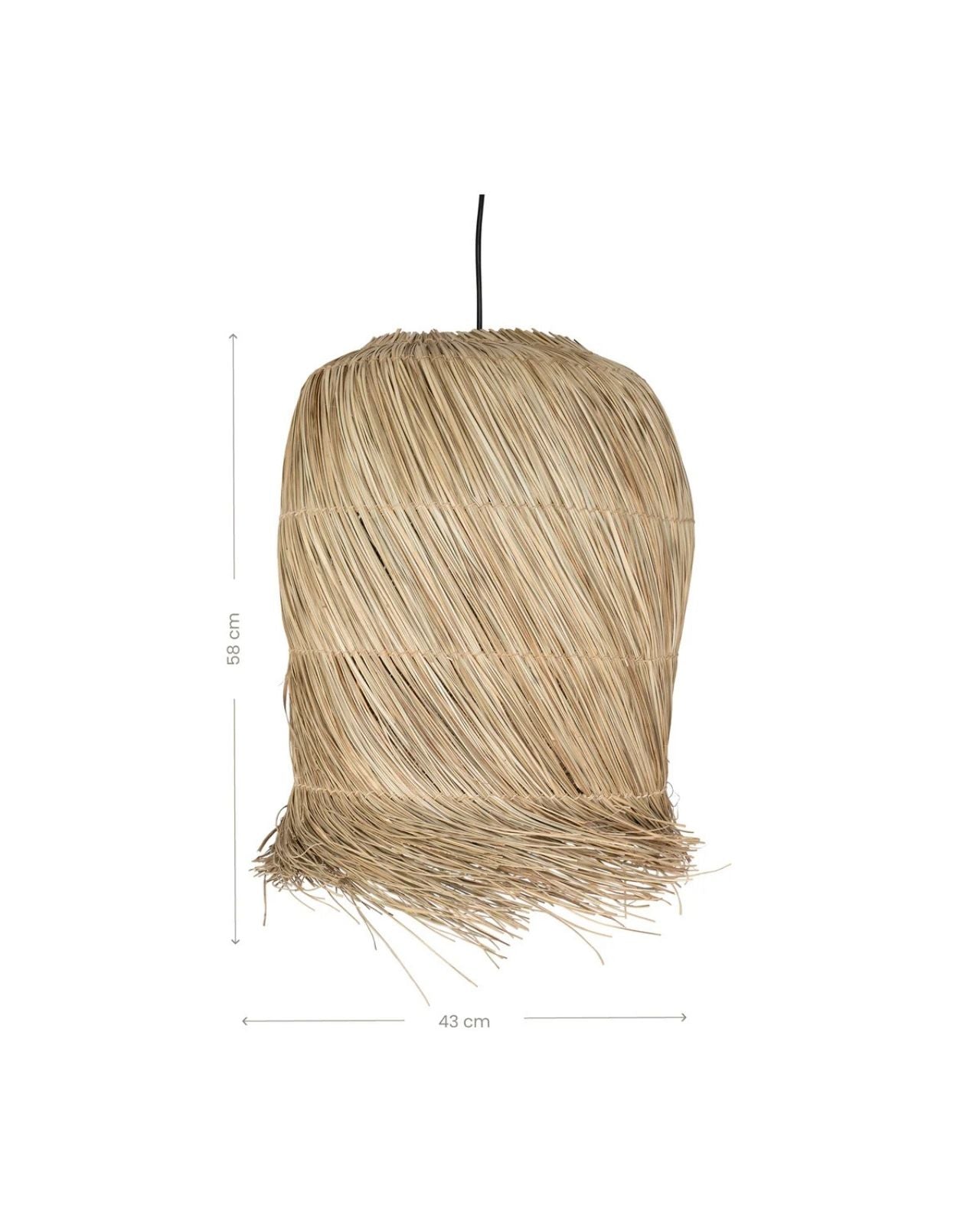 Designed by Uniqwa Collections, bringing a natural and rustic coastal feel to any living room, bedroom or patio, this natural pendant is crafted from ethically sourced and eco-conscious materials. The organic mendong grass is hand-weaved over an oblique brown powder-coated iron frame using low-waste production techniques. Available in two different sizes, each shade is unique and will spread a warm light with decorative shadows.