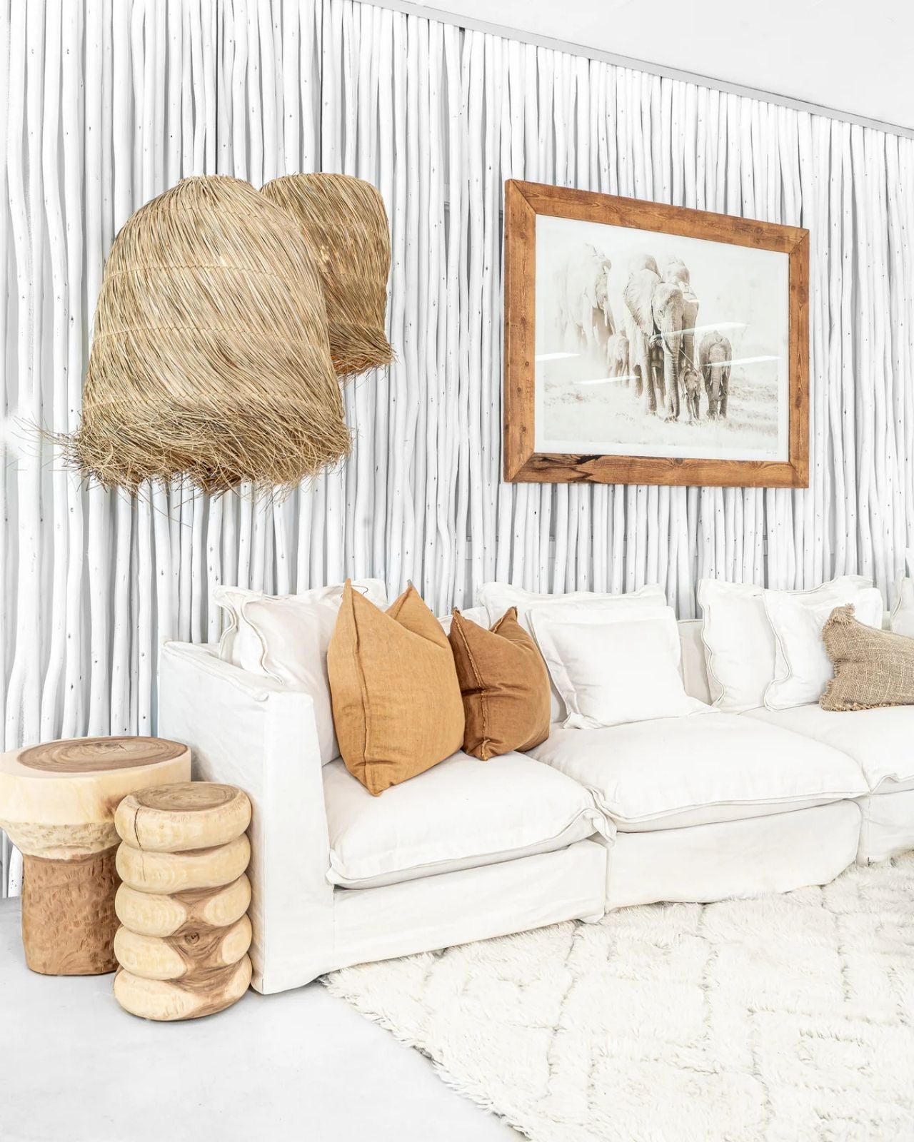 Natural Bleach Rattan Dome Pendant Lounge Area