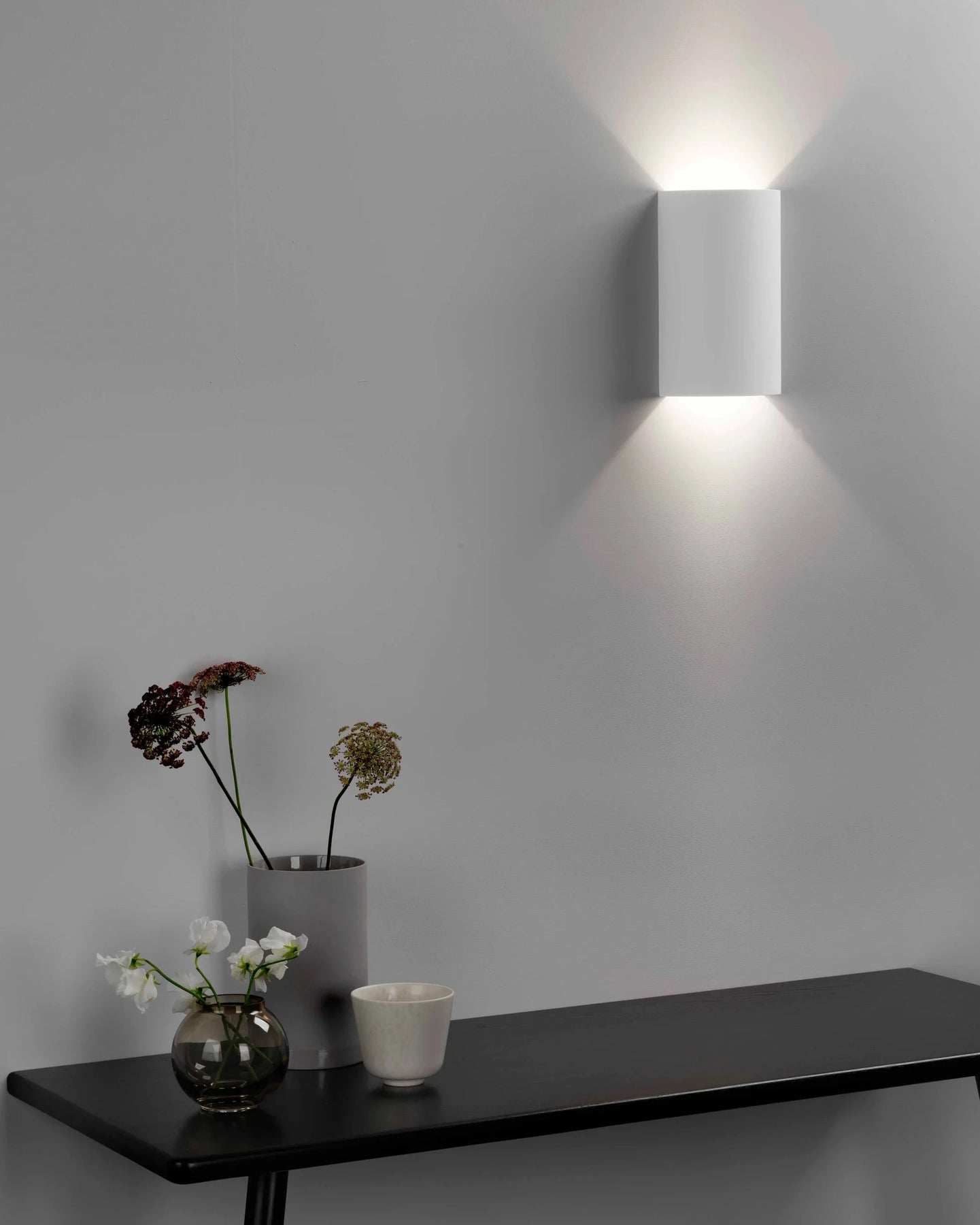 A simple yet multi-functional wall light boasting an on-trend rounded, demi-cylinder silhouette. Light plays with the fixture to bounce off the top and bottom in order to create a playful and interesting effect that is both contemporary yet timeless.
