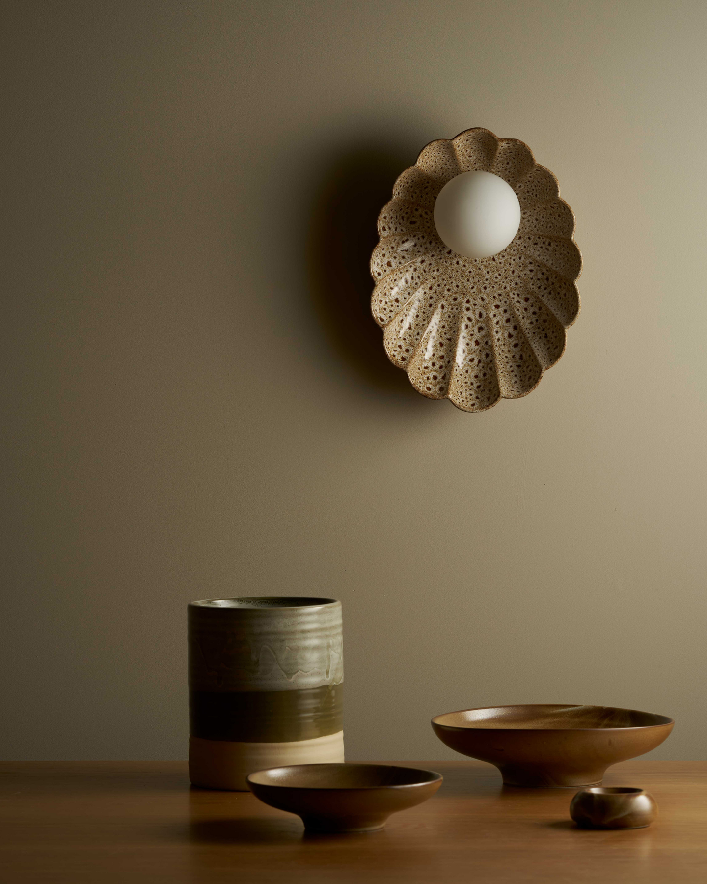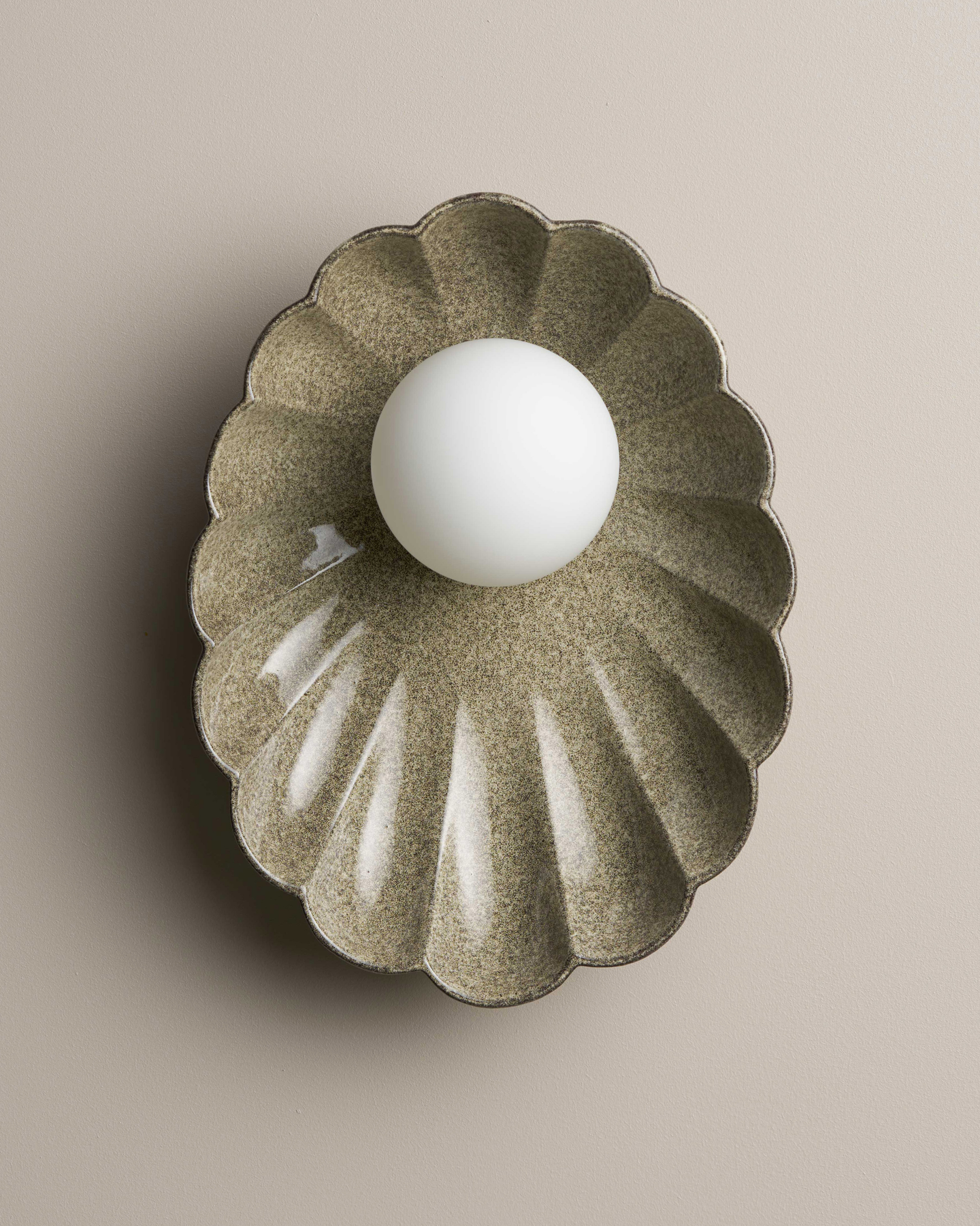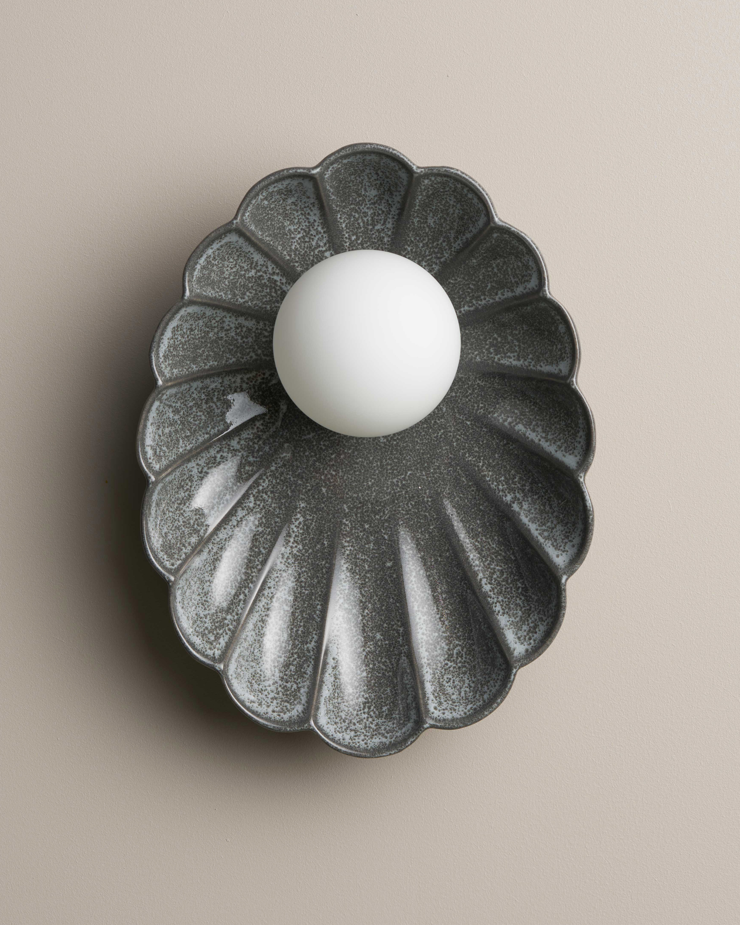 Handmade in Australia using recycled clay the Handmade Ceramic Oyster Wall Sconce features a carefully carved shade. This distinctive sconce is elegant yet simplistic with five available glaze finishes. Each sconce is handmade to order therefore due to the nature of clay and the manufacturing process, variations in shade, colour, and size are a natural feature of ceramic product fired at high temperatures.