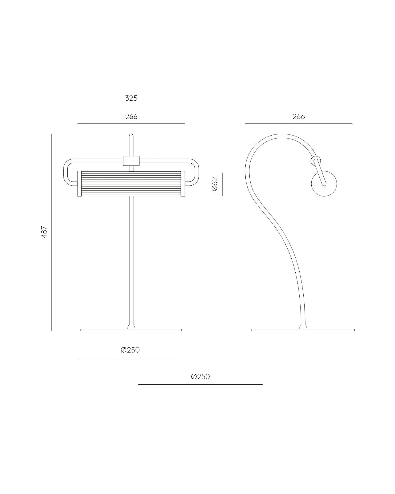 Technical drawing of a lamp with dimensions on a white background