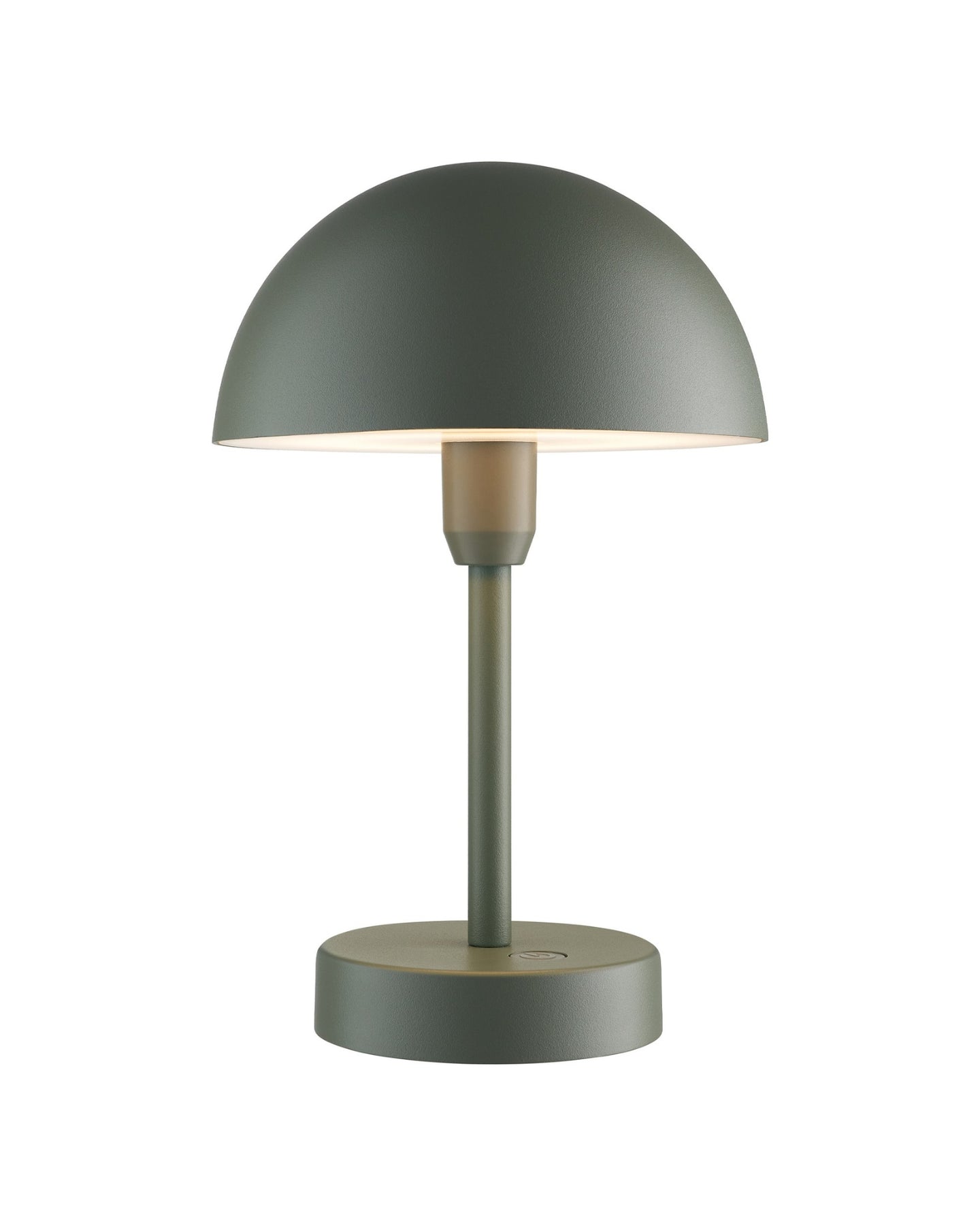 Green table lamp on a dark surface