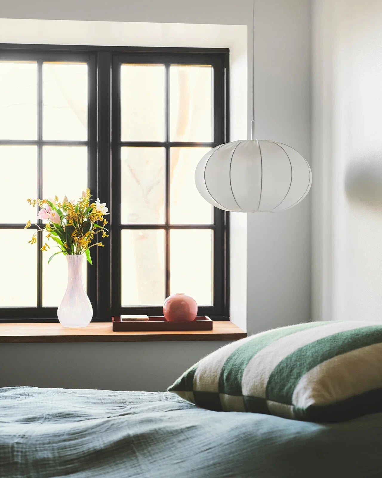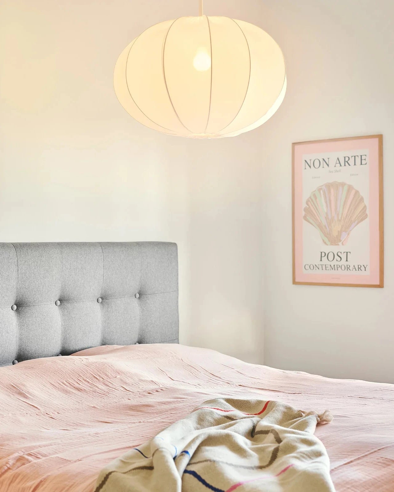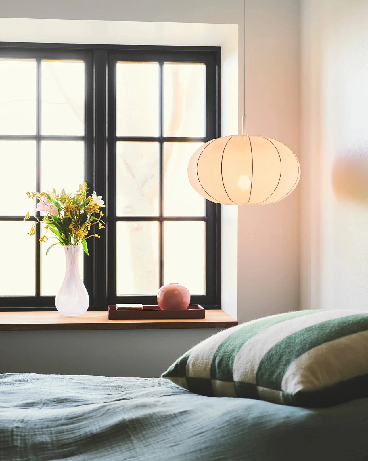 The perfect blend of style and sophistication, the Fabric & Metal Pendant Light features a sleek metal frame that adds a touch of modern minimalism, beautifully complemented by semi-transparent fabric secured around the frame for a soft, diffused glow. The fabric's gentle translucence creates a warm and inviting ambiance, making it ideal for dining rooms, living spaces, or bedrooms. The sturdy hidden metal frame ensures durability while adding a chic, industrial edge to the design.