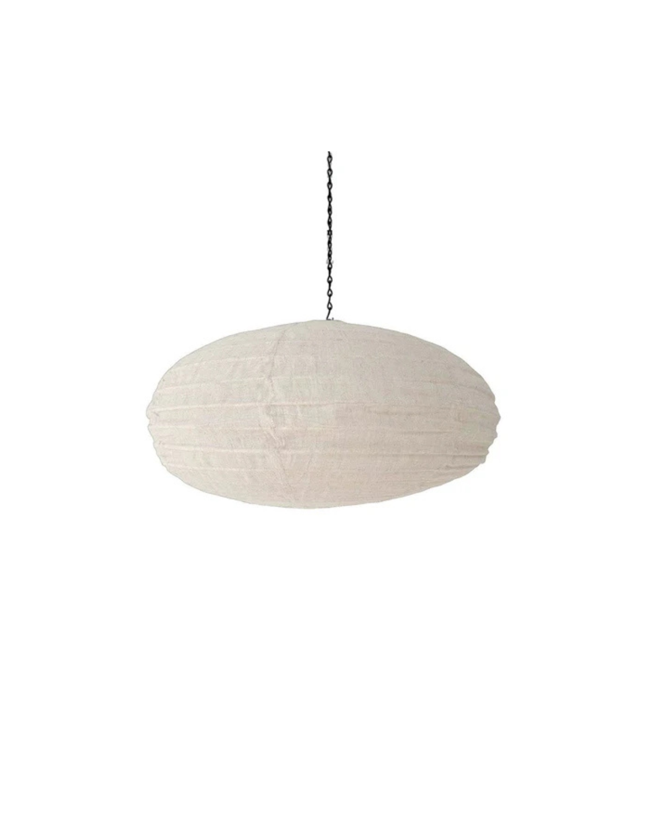 The Oval Cotton Pendant Shade is a minimalist, Japandi stye shade inspired by the warm glow of paper lanterns. Crafted with a fine rattan frame wrapped in cotton fabric, this lightweight shade is ideal for ceilings that can’t support heavy fixtures. The semi-translucent nature of cotton emits a warm glow when illuminated, making it a striking focal point whether hung individually or in clusters. Available in three sizes, it comes flat-packed for easy assembly and installation.