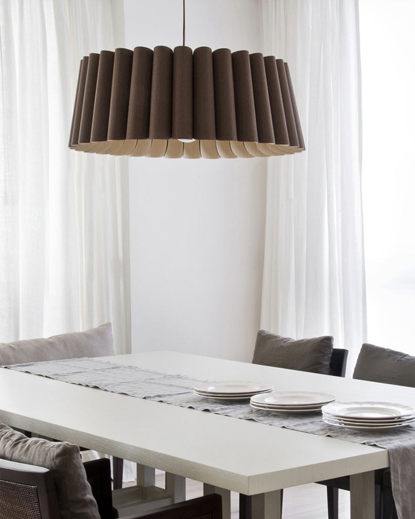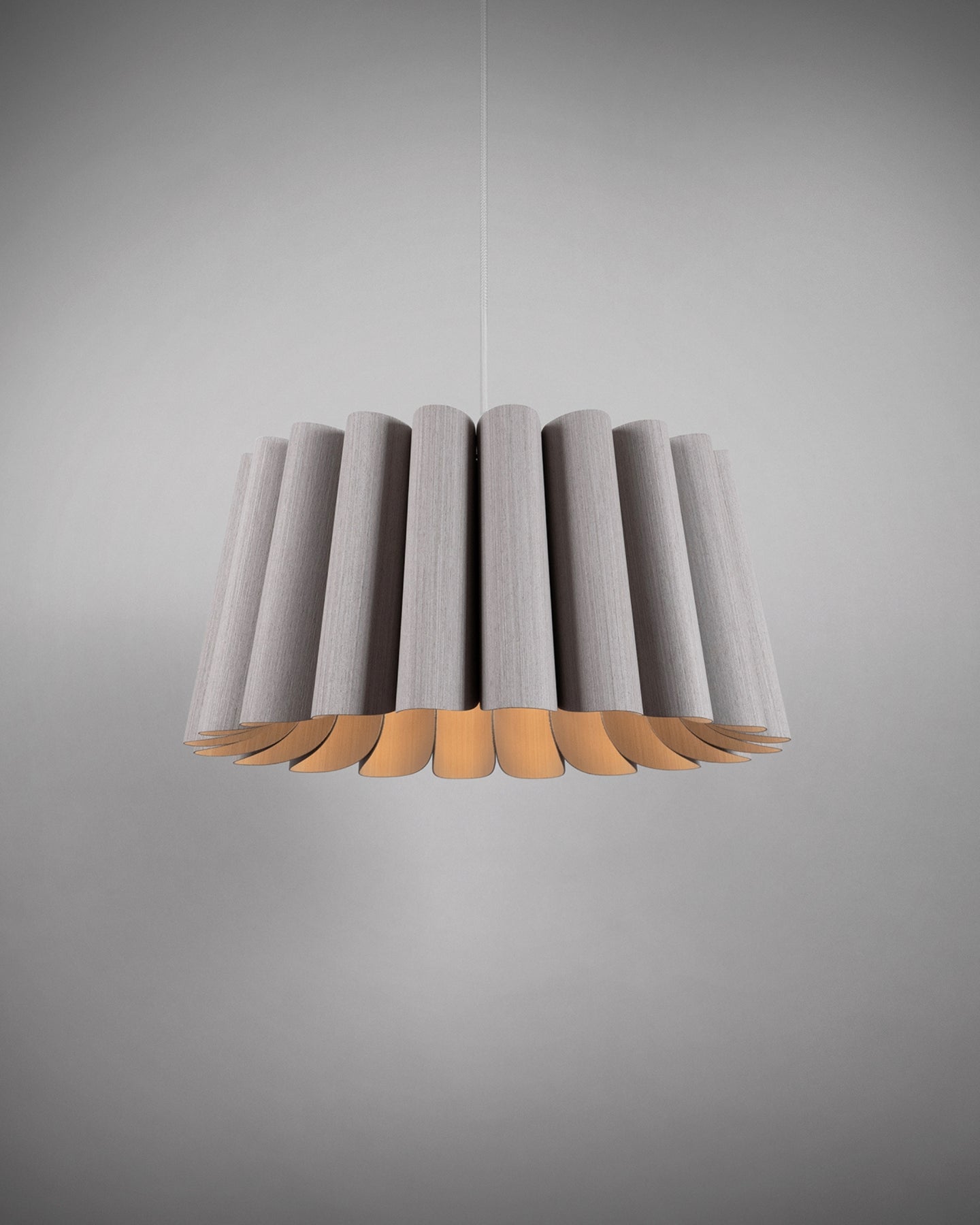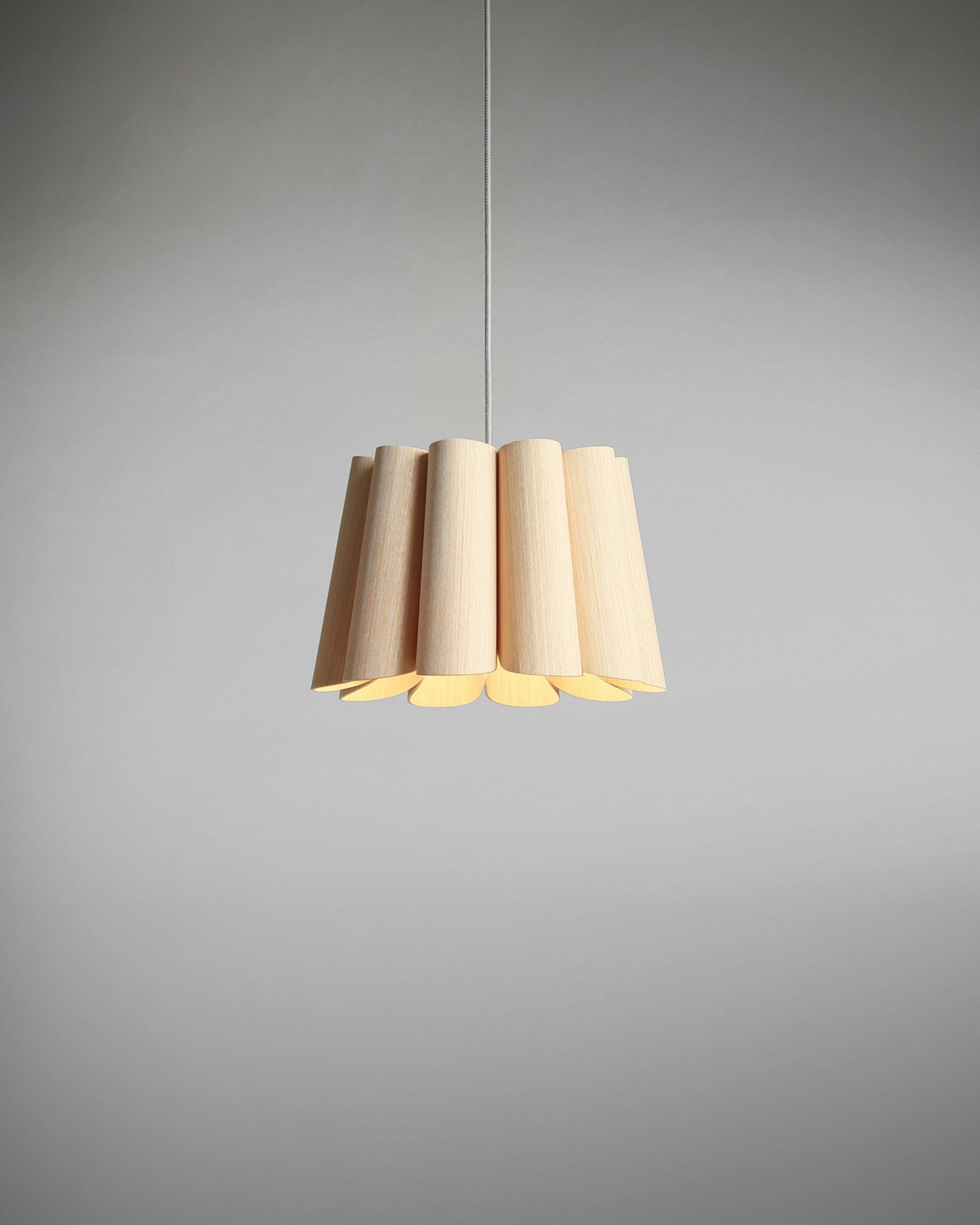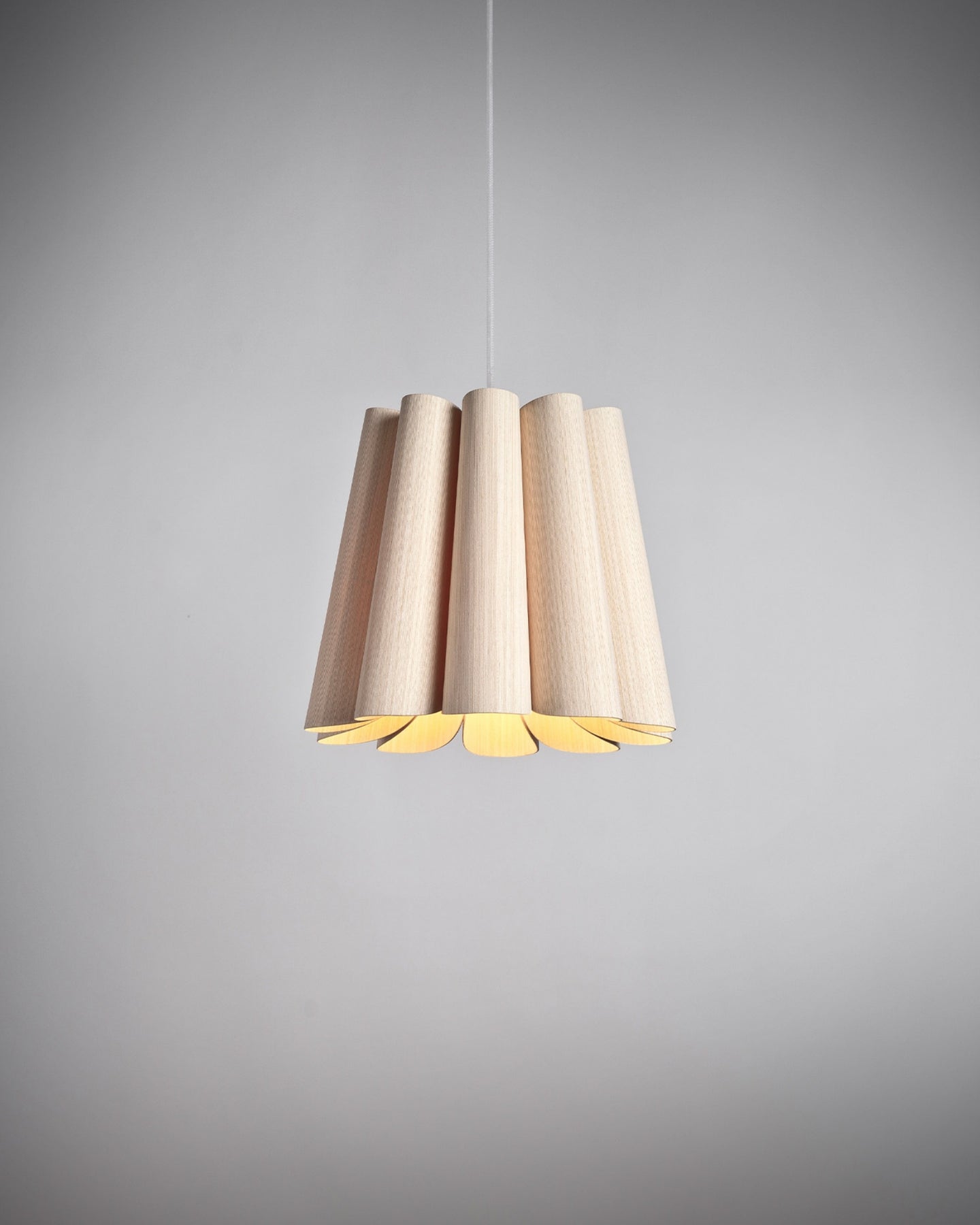 This real wood pendant boasts a flexible wood veneer which lends it a singular, aesthetically pleasing design. It's crafted with superior quality and is available in multiple finishes and sizes. Each pendant is a distinct piece with its own captivating character; its beauty is matched by its functionality, practicality, and versatility. Ideal for living areas, hallways and bedrooms as an individual fixture or in a group of various sizes in expansive areas.