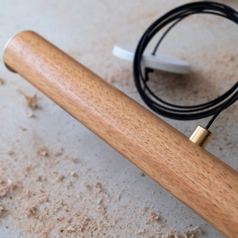 An original design by Fluxwood crafted in Currumbin - Queensland Australia. Featuring a cylindrical body, and a distinctive metal detail this pendant will create a focal point and an organic statement in an interior space including over a kitchen bench or dining table. The Australian Cylindrical Timber Linear Pendant is a versatile way to highlight the natural beauty of Australian timber, whilst still being a functional LED linear pendant.