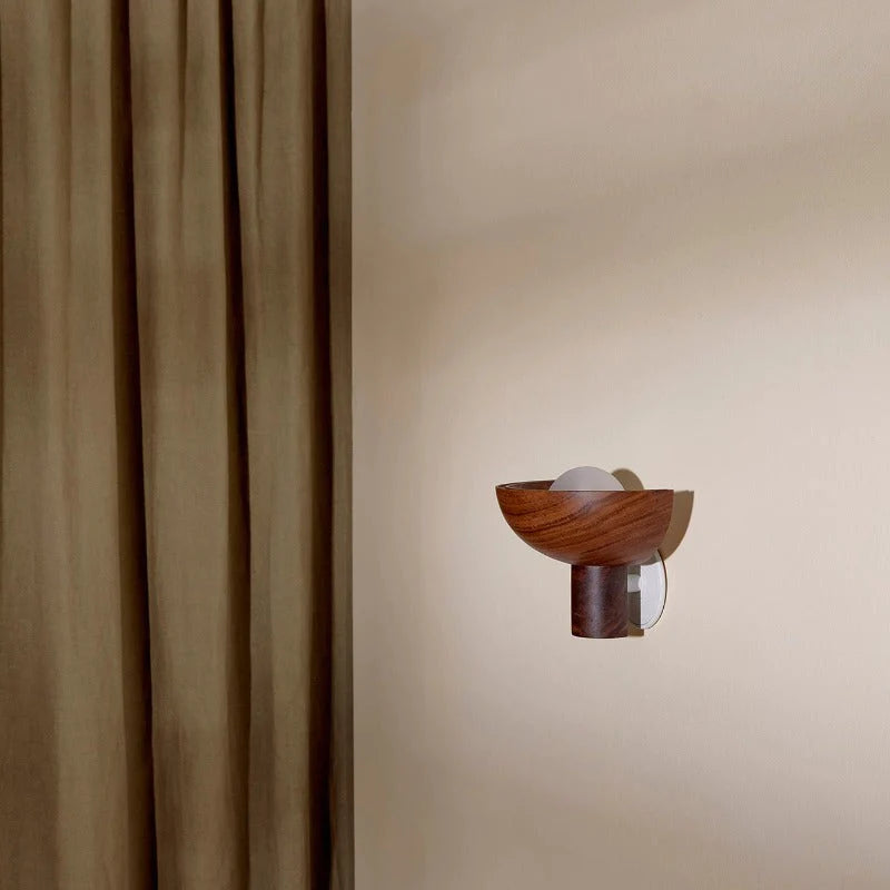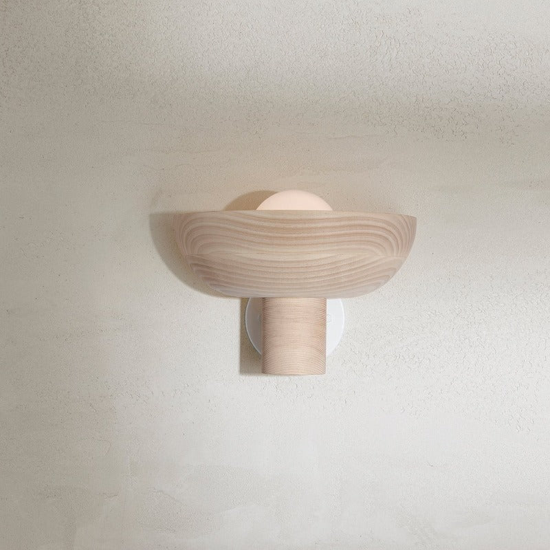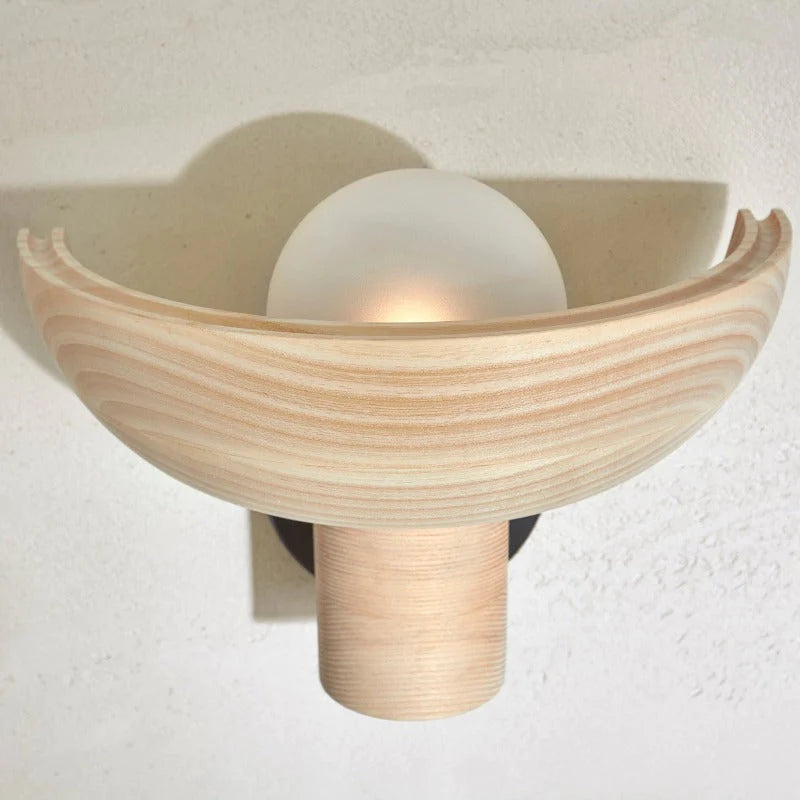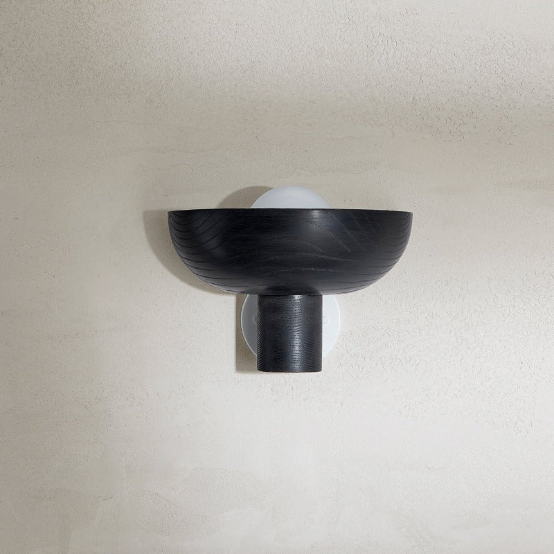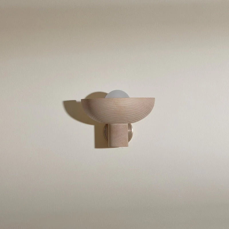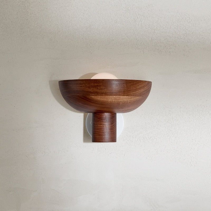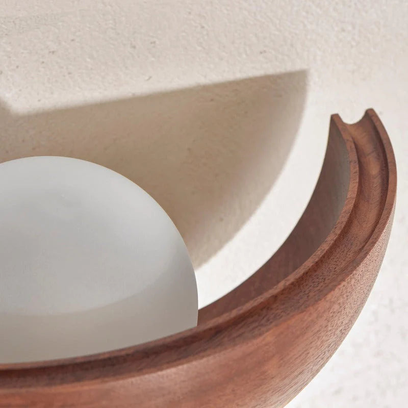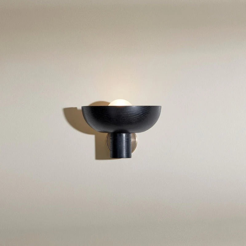 Practising sustainability this wall light is designed and designed in Australia by utilising timber offcuts. This contemporary wall light explores alternative means of lighting design and takes inspiration from Greek mythology,  Selene - the goddess of the moon. Its quarter moon-shaped shade sits upon a cylindrical base that is attached to the wall by a simplistic metal wall plate available in Brushed Black, Brass, Brushed Nickel or White. Accompanied by a clear frosted diffuser housing a 5W LED globe (included), this wall sconce will provide a warm 3000K ambient glow.  Featuring uniquely handmade components this wall-mounted fitting will add a sophisticated element to any interior. Available in Small Or Large.