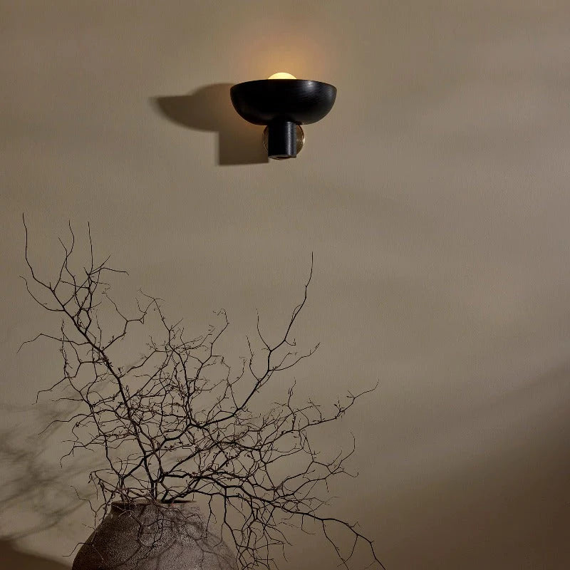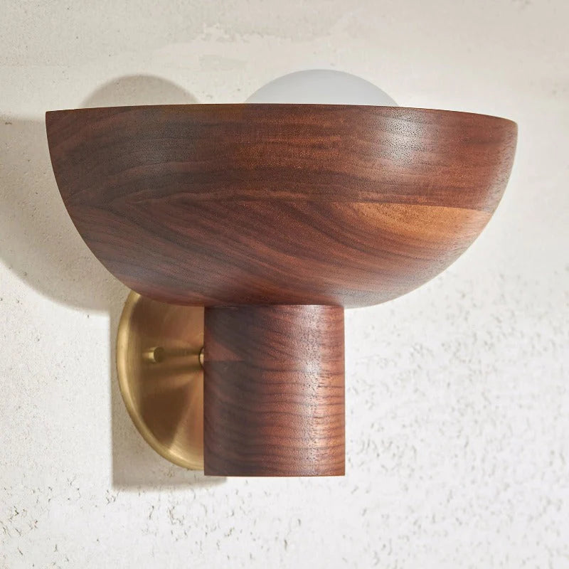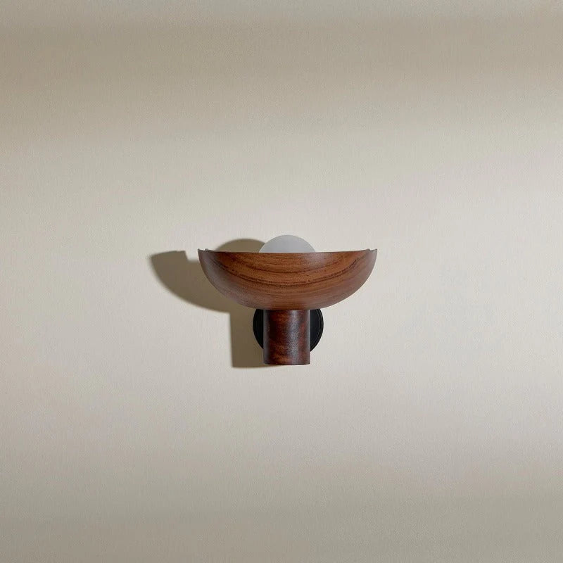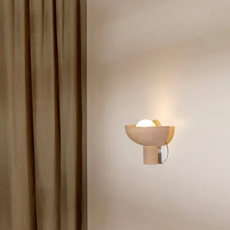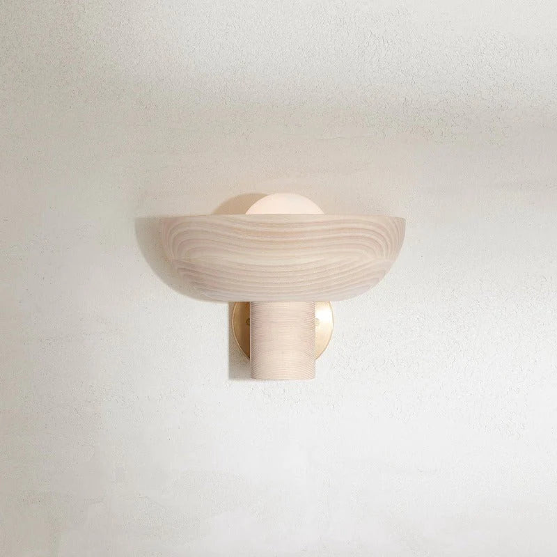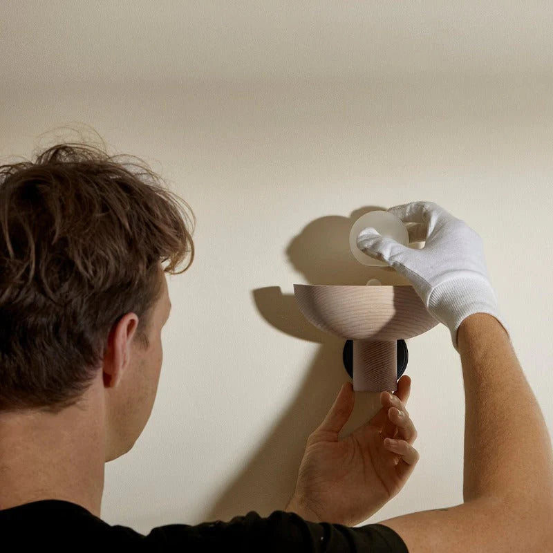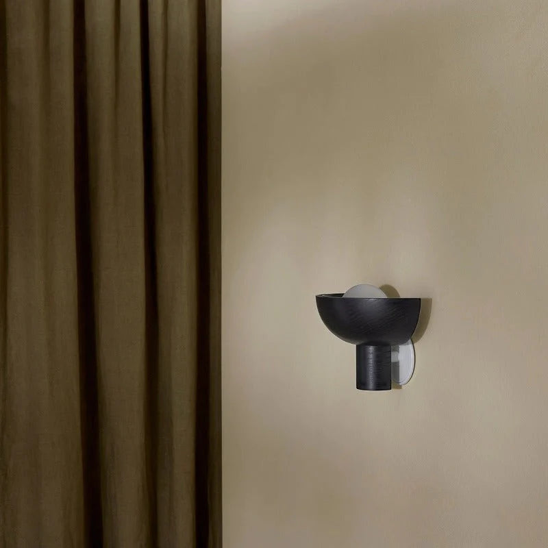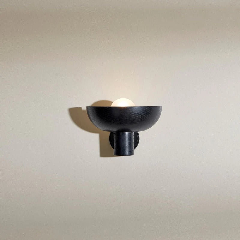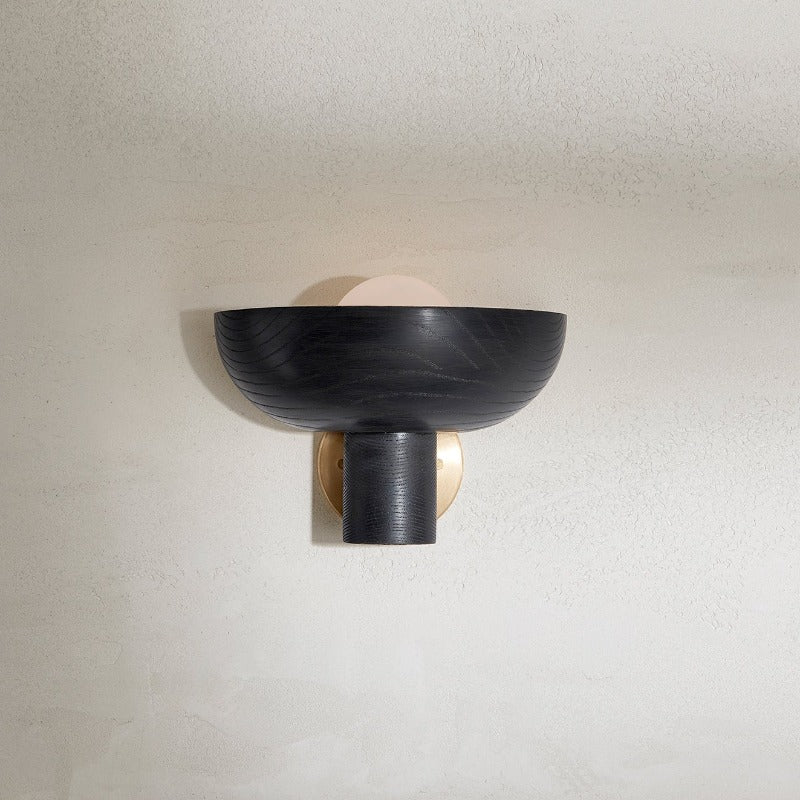 Practising sustainability this wall light is designed and designed in Australia by utilising timber offcuts. This contemporary wall light explores alternative means of lighting design and takes inspiration from Greek mythology,  Selene - the goddess of the moon. Its quarter moon-shaped shade sits upon a cylindrical base that is attached to the wall by a simplistic metal wall plate available in Brushed Black, Brass, Brushed Nickel or White. Accompanied by a clear frosted diffuser housing a 5W LED globe (included), this wall sconce will provide a warm 3000K ambient glow.  Featuring uniquely handmade components this wall-mounted fitting will add a sophisticated element to any interior. Available in Small Or Large.