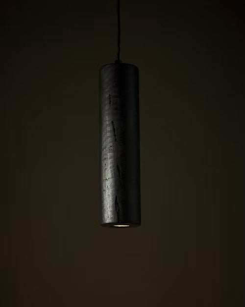 This pendant light offers restrained blend of simplicity and timber craftsmanship. The Cylinder Pendant features a clean cylindrical form that effortlessly draws attention to the warm material which is available in natural Australian Eucalypt timber or ebonised/stained black for a more dramatic, contemporary contrast.