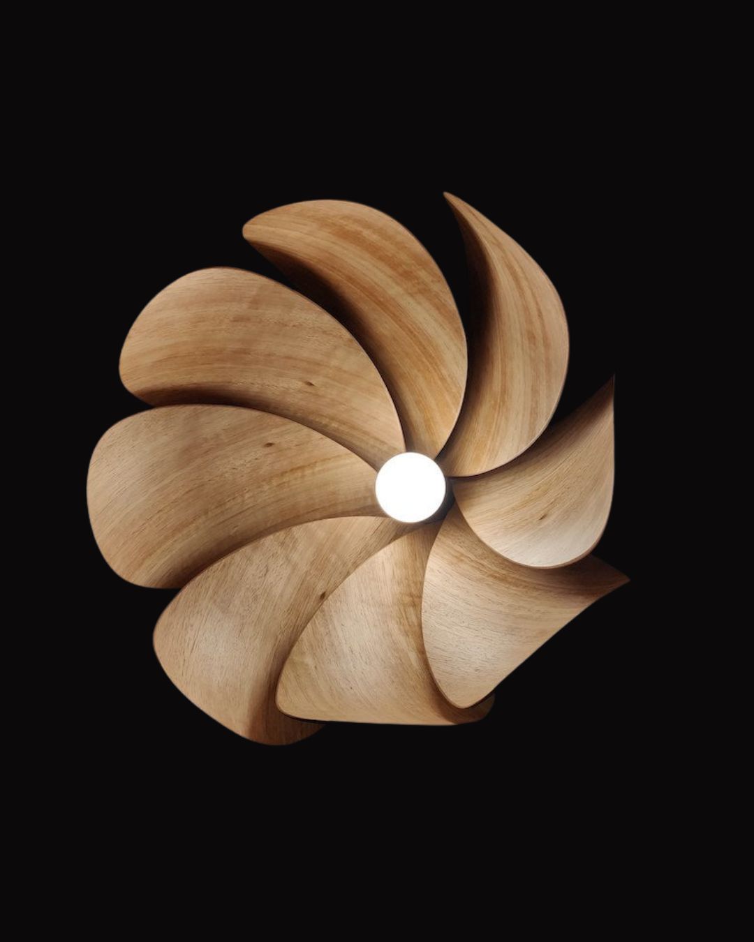 Designed and manufactured in Tasmania, they fuse hand-crafting with computer-aided precision—eight curved blades slot into a custom central bracket, and finished with a turned Tasmanian Blackwood nose-cone cap.