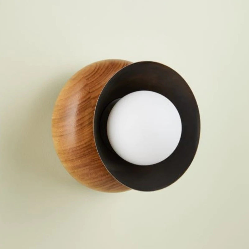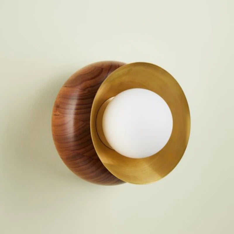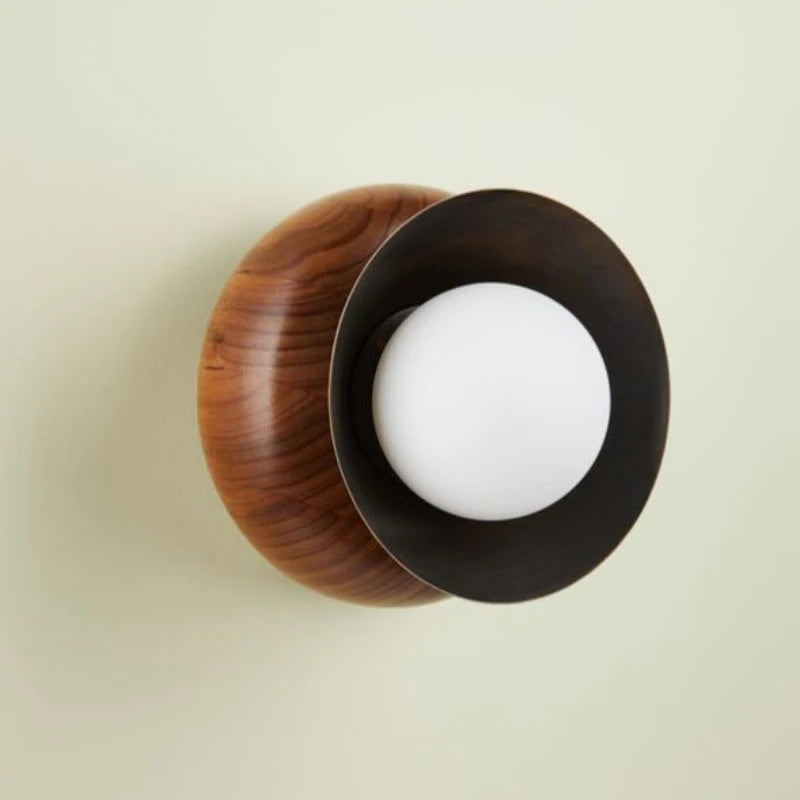 MaterialsSolid Hardwood | Spun Brass Shade | Glass Opal Bulb | Textile Cord