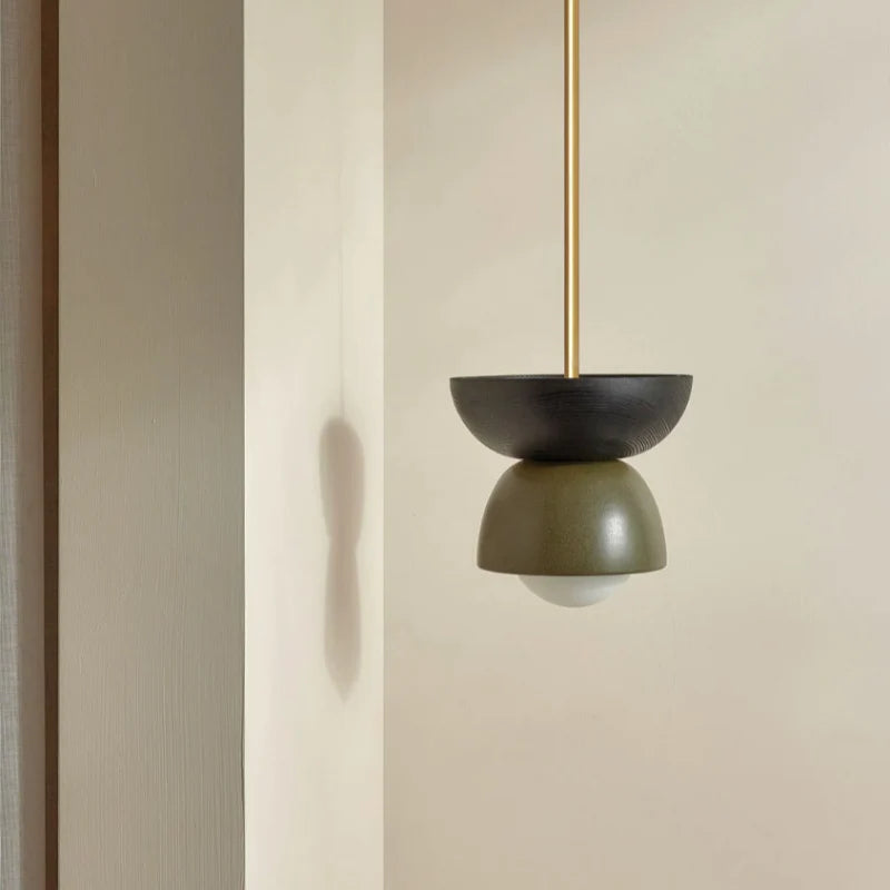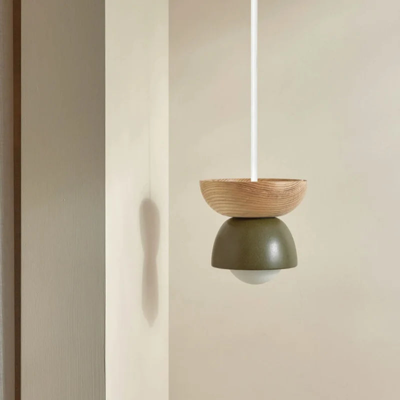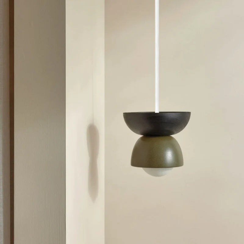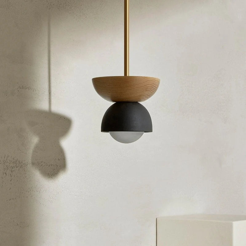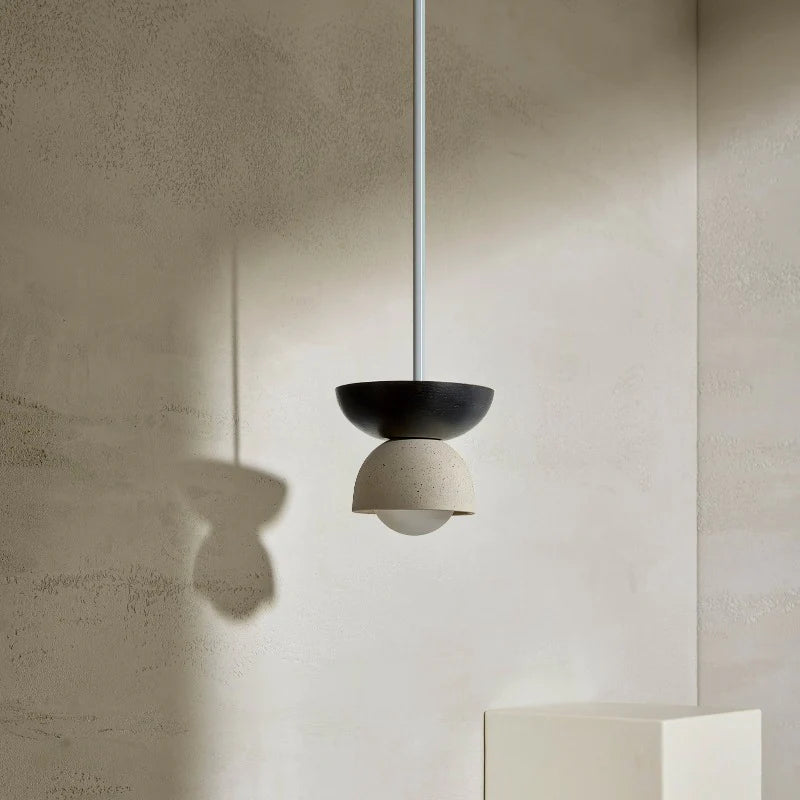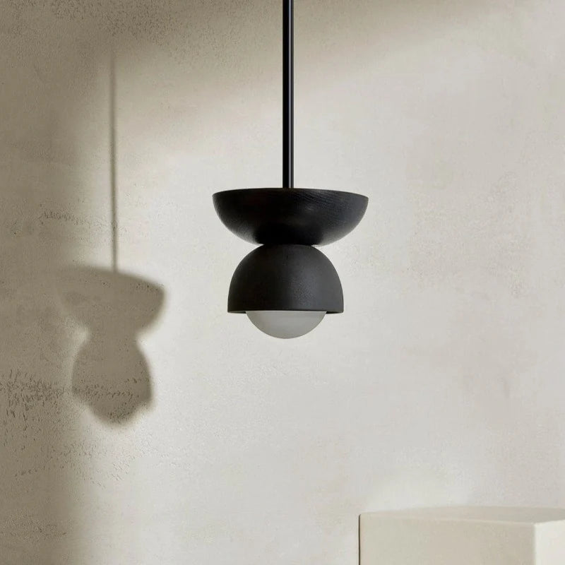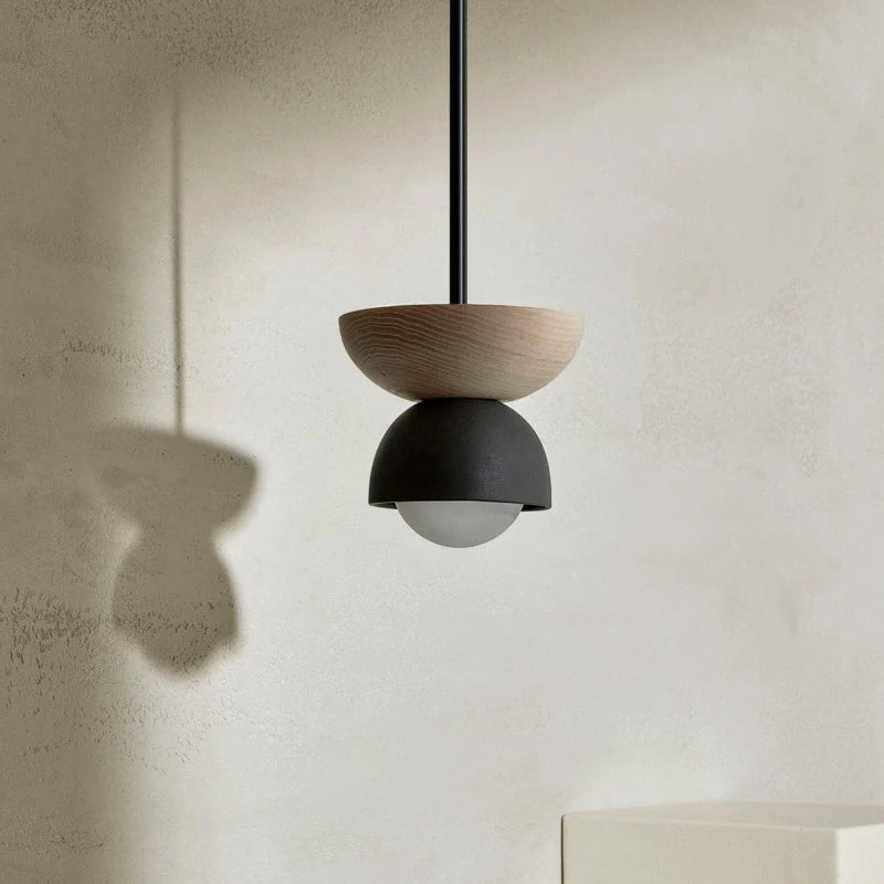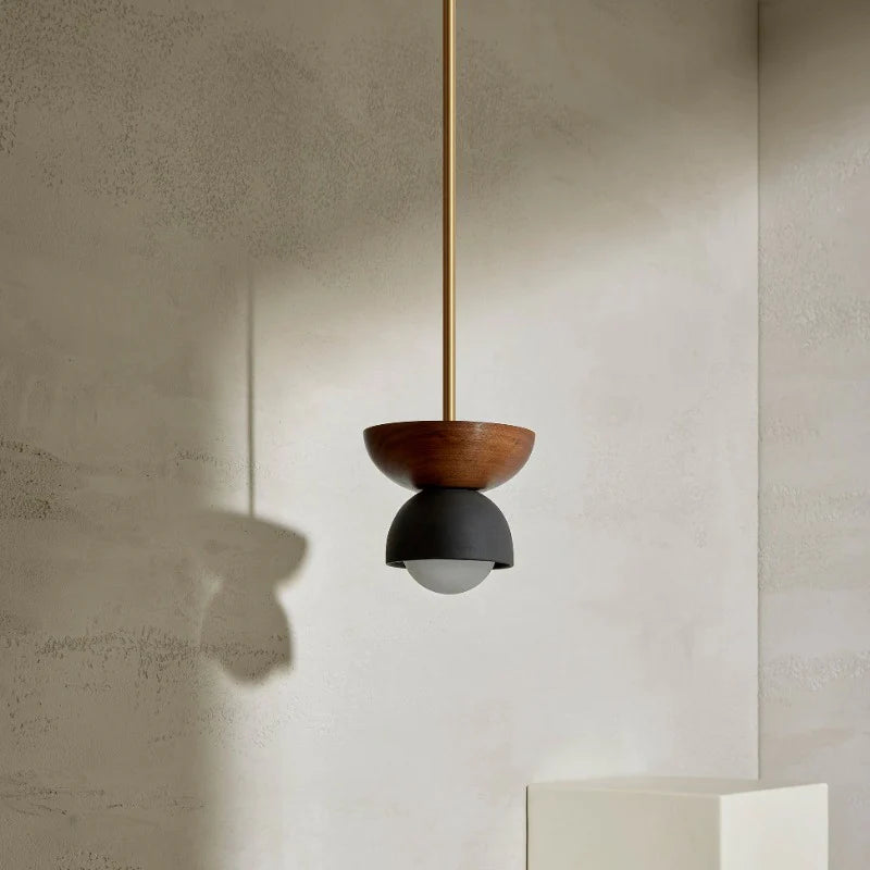 Contrasting domes crafted from hand-turned timber and slip-cast ceramic have been used to create this modern pendant which seamlessly pairs two natural forms. This Australian-designed pendant features a 700mm metal rod suspension and diffused light source allowing for ambient illumination.
