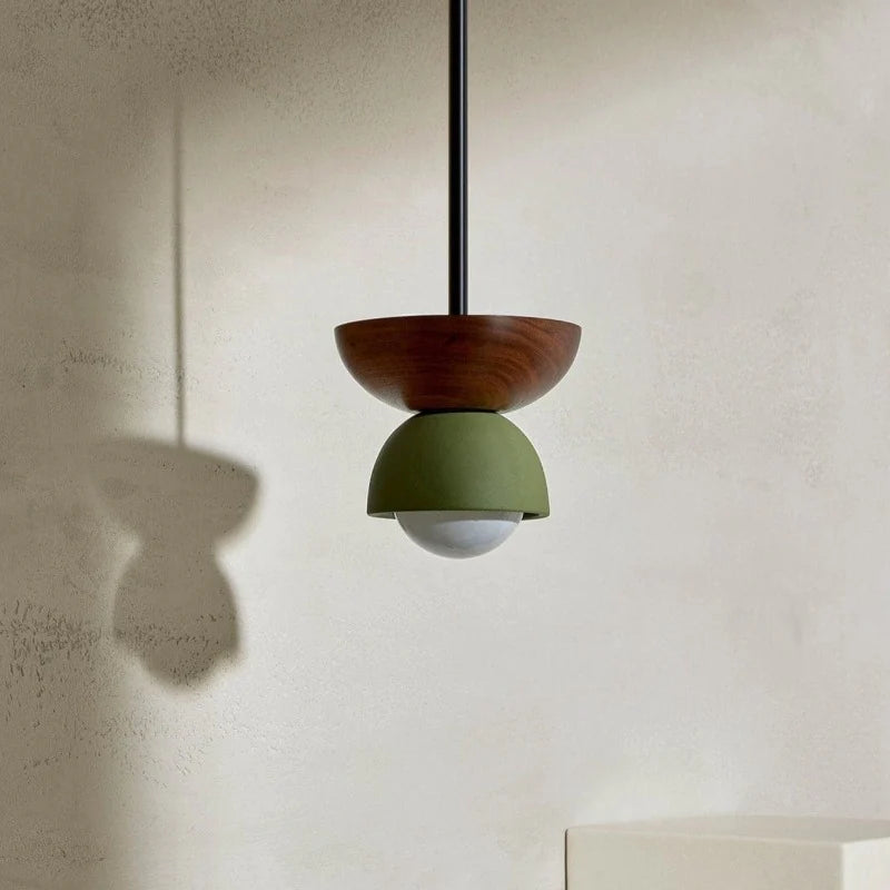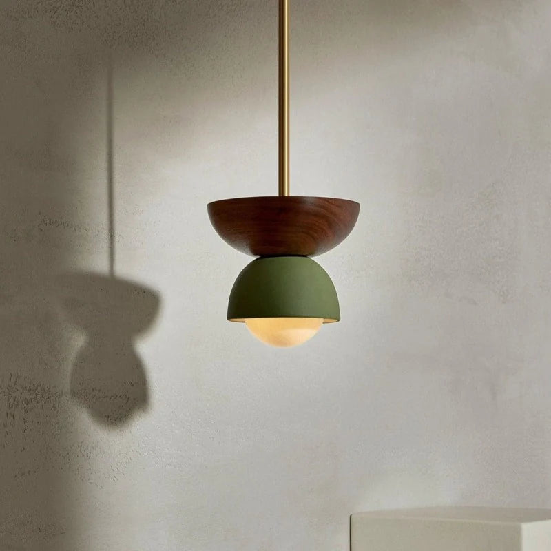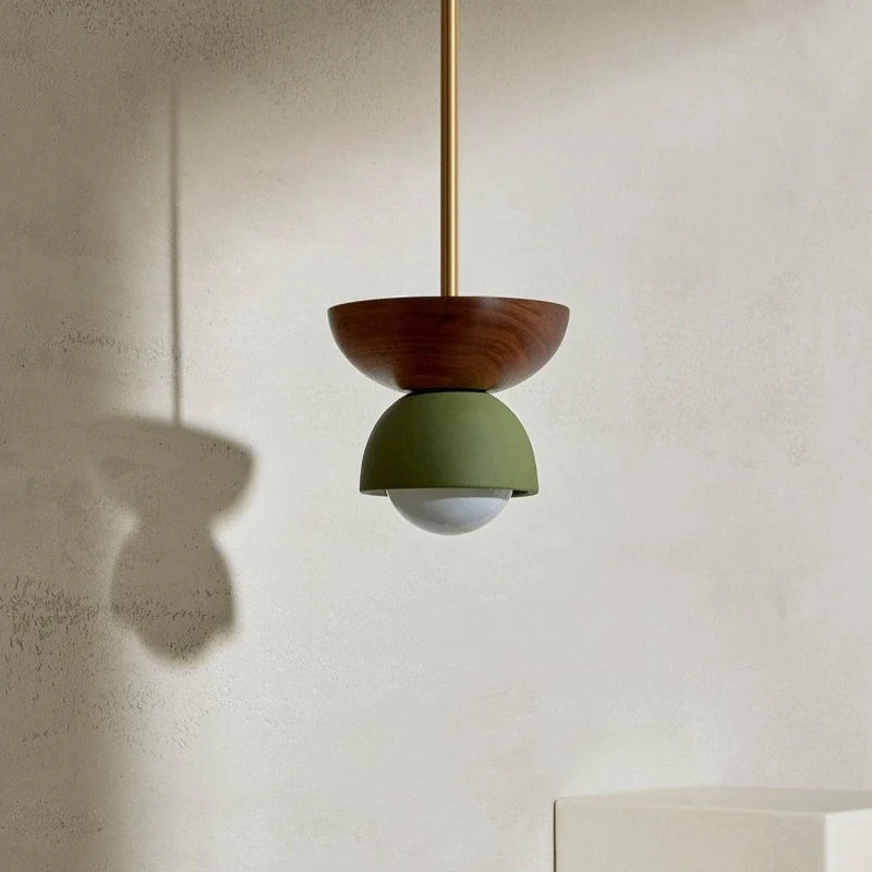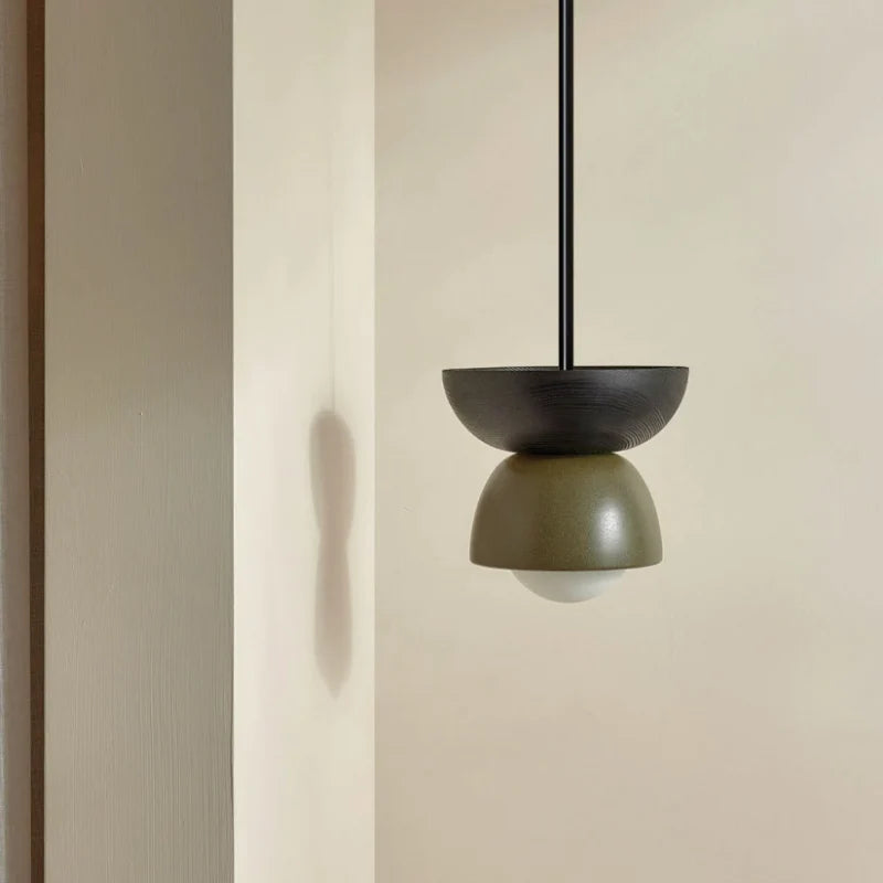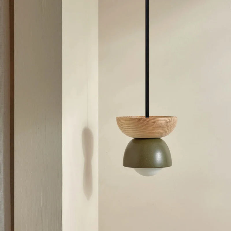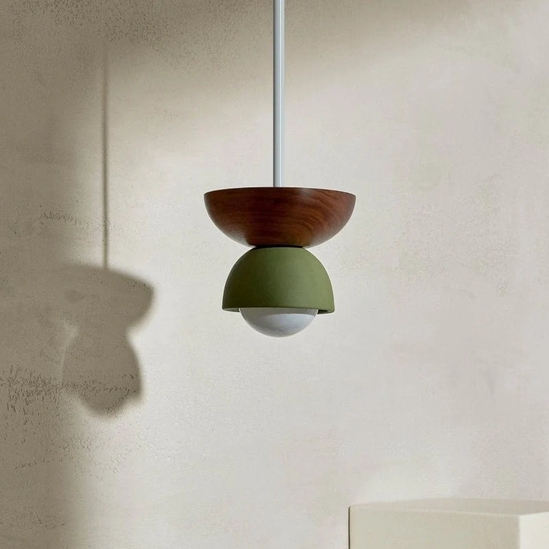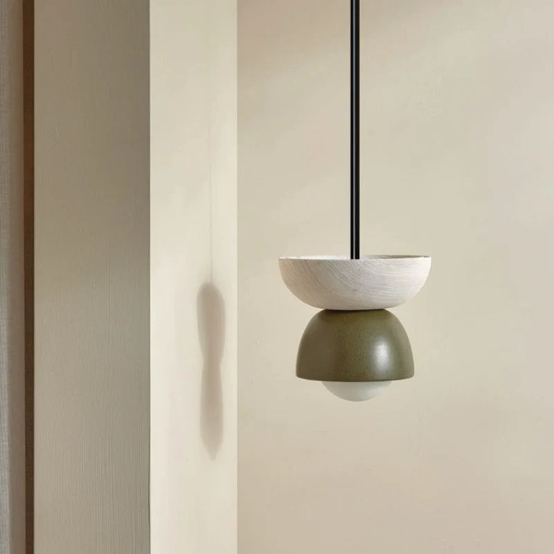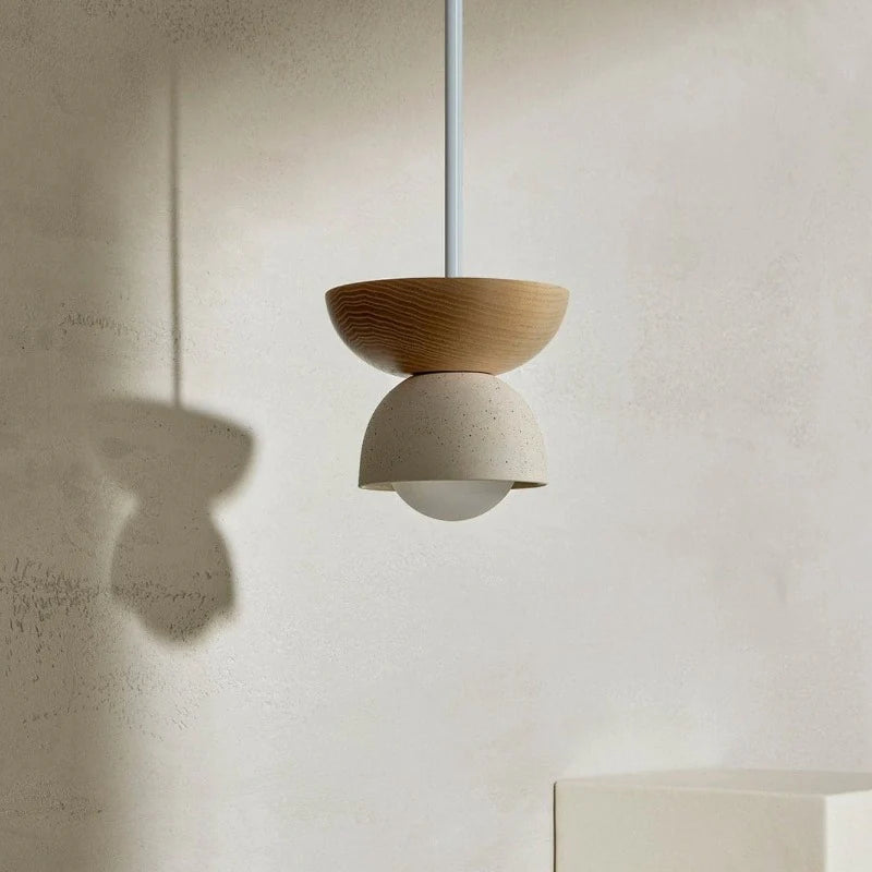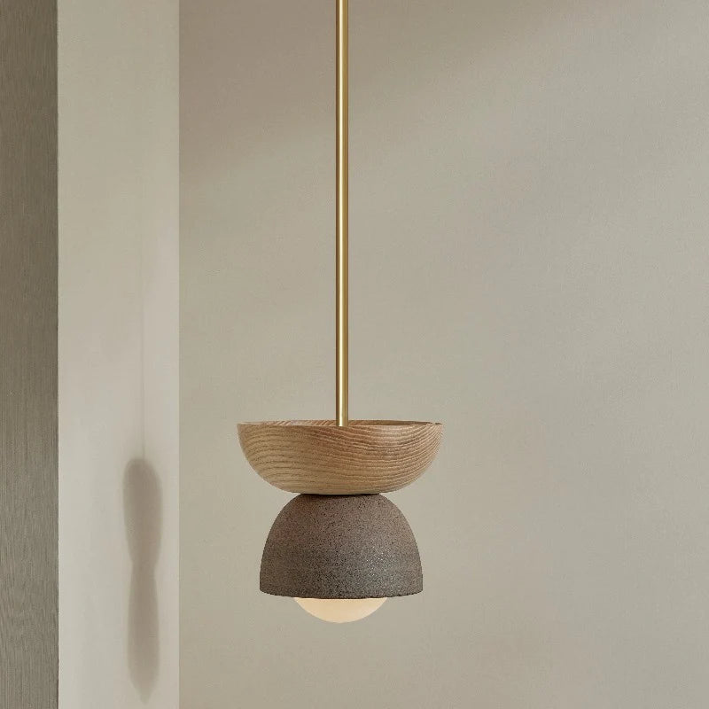 Contrasting domes crafted from hand-turned timber and slip-cast ceramic have been used to create this modern pendant which seamlessly pairs two natural forms. This Australian-designed pendant features a 700mm metal rod suspension and diffused light source allowing for ambient illumination.