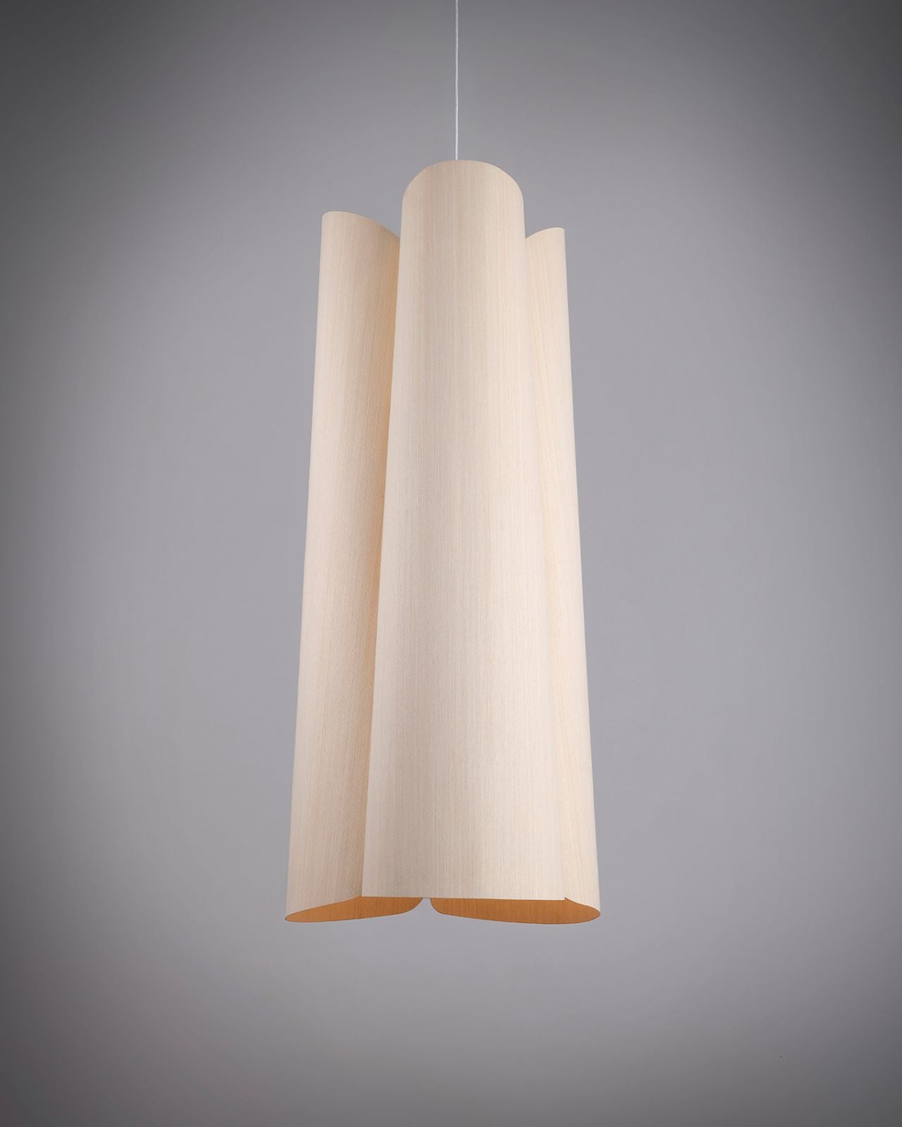 This pendant boasts a flexible wood veneer which lends it a singular, aesthetically pleasing design. It's crafted with superior quality and is available in multiple finishes and sizes. Each pendant is a distinct piece with its own captivating character; its beauty is matched by its functionality, practicality, and versatility. Ideal for living areas, hallways and bedrooms as an individual fixture or in a group of various sizes in expansive areas.