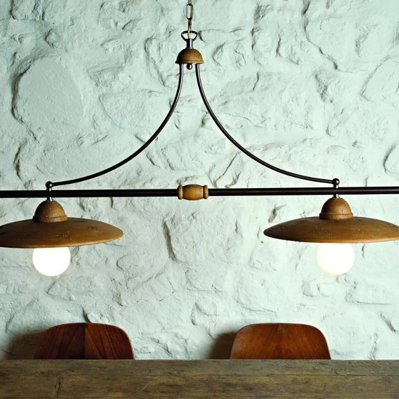 Individually hand-made in Italy with the Tuscan Tradition of hand-pressing clay forms this stunning double light suspended pendant is ideal for placement over a kitchen island or dining table. This artistic pendant is suited to enhance a range of styled interiors from traditional to contemporary.