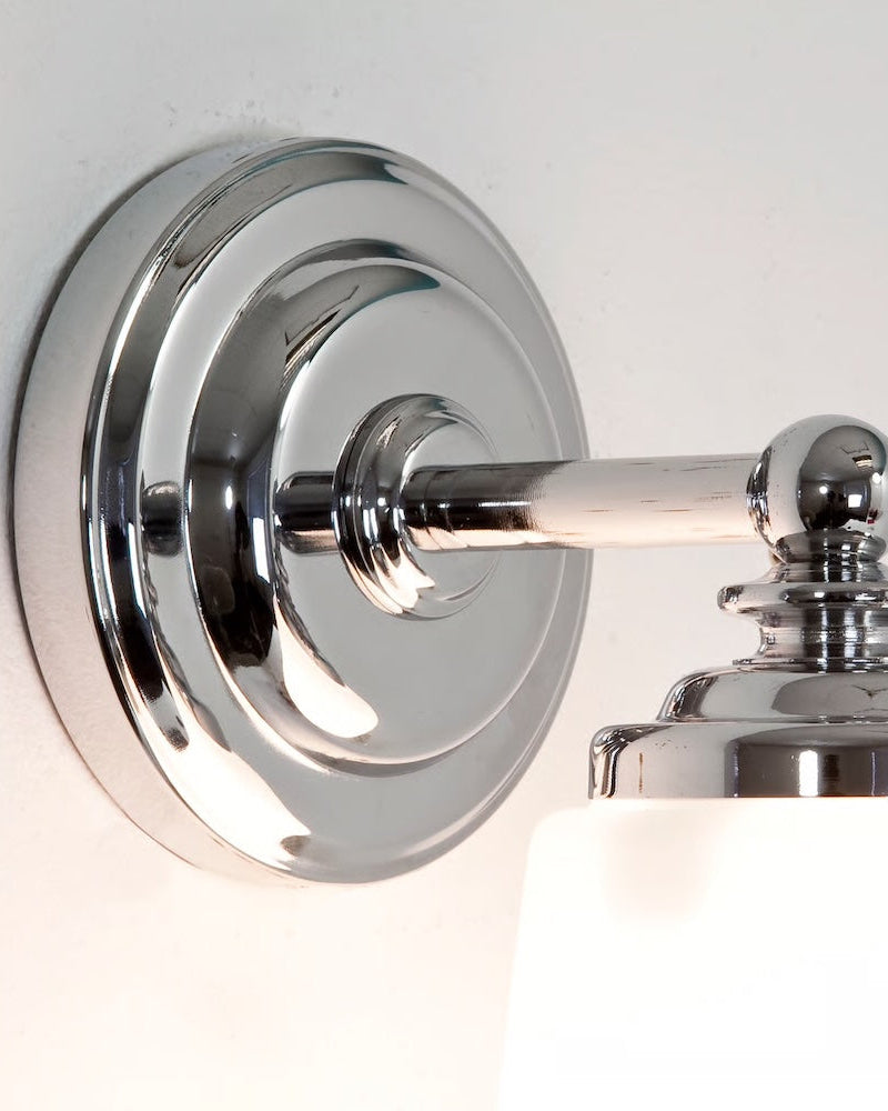 Close up of a Transitional Chrome & Opal Glass Wall Light