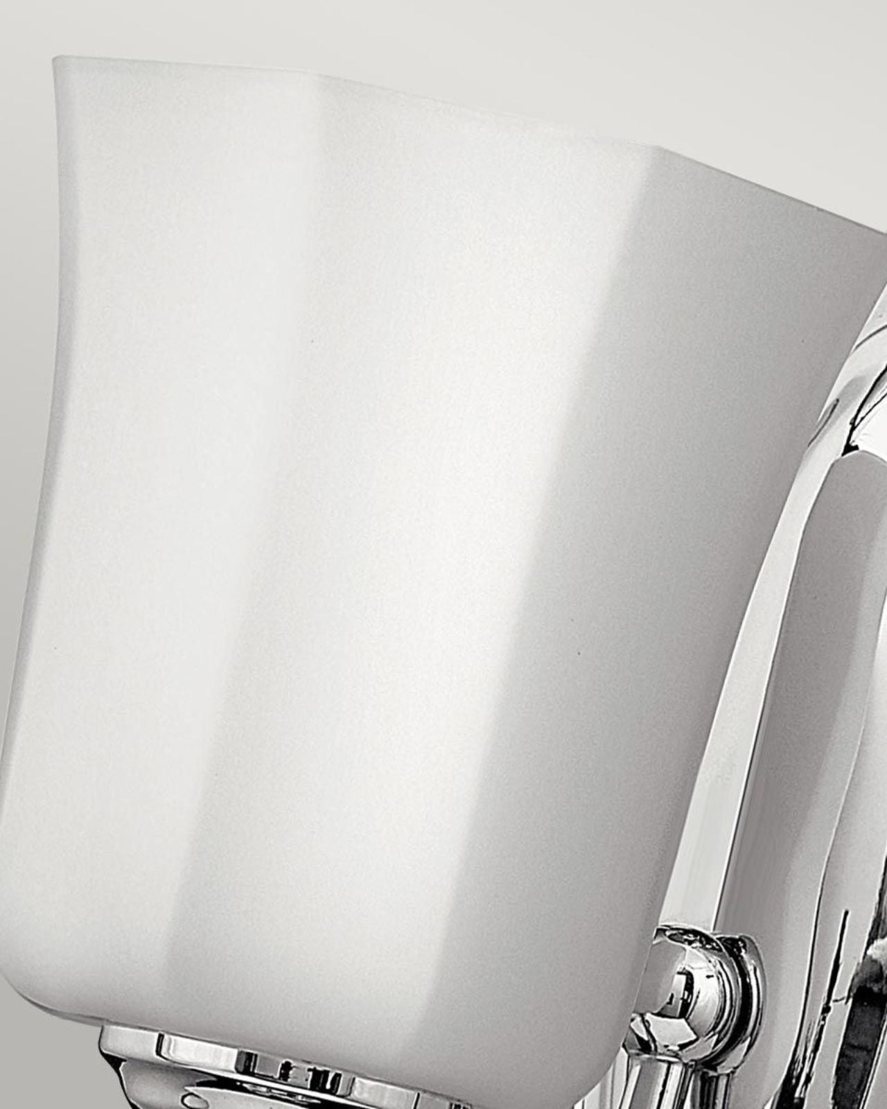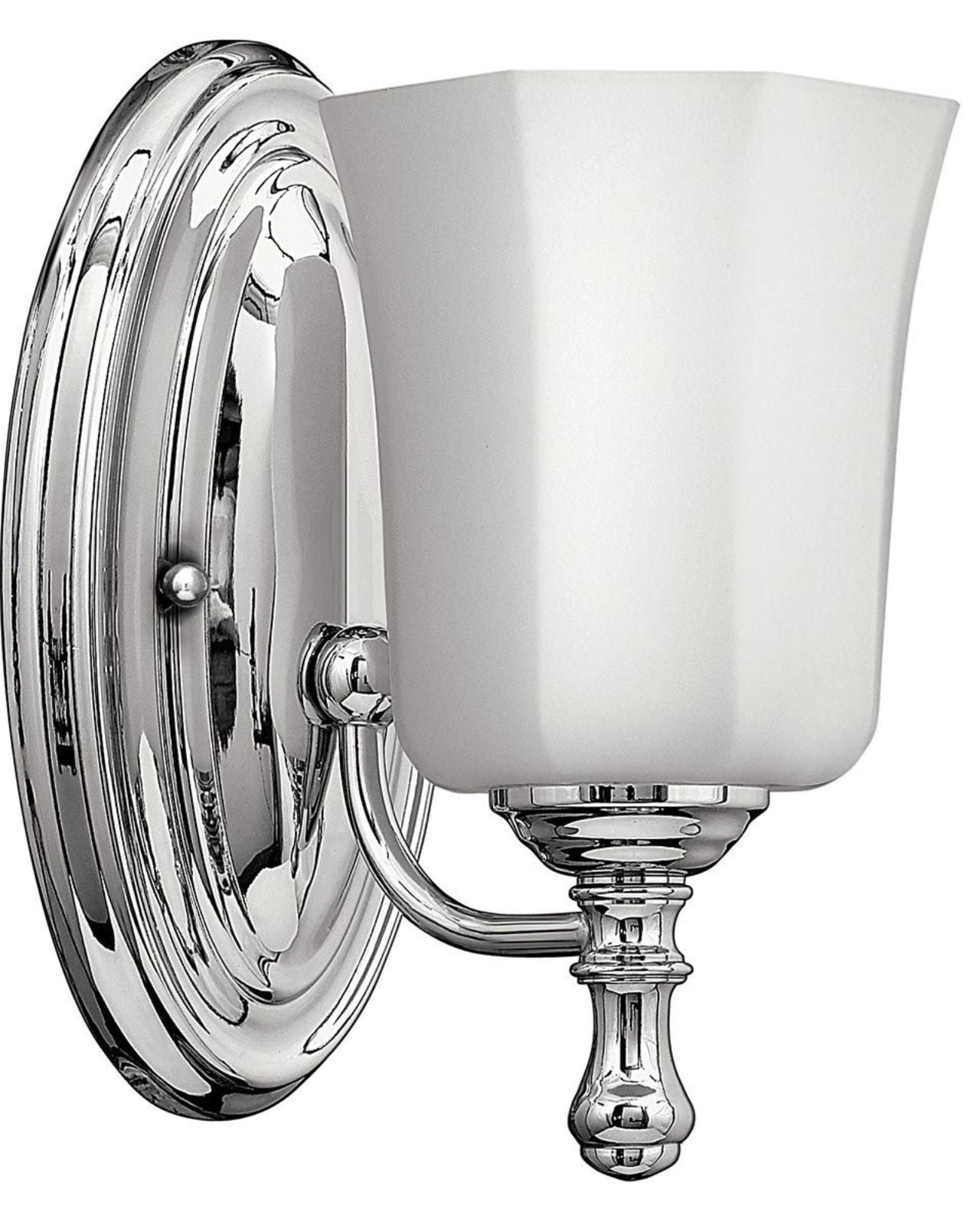 This transitional vintage inspired wall light features clean detailed chrome arms and opal glass shade. A  beautiful eclectic fitting that is perfect for your bathroom or elsewhere to harmonise with other lighting throughout the house.