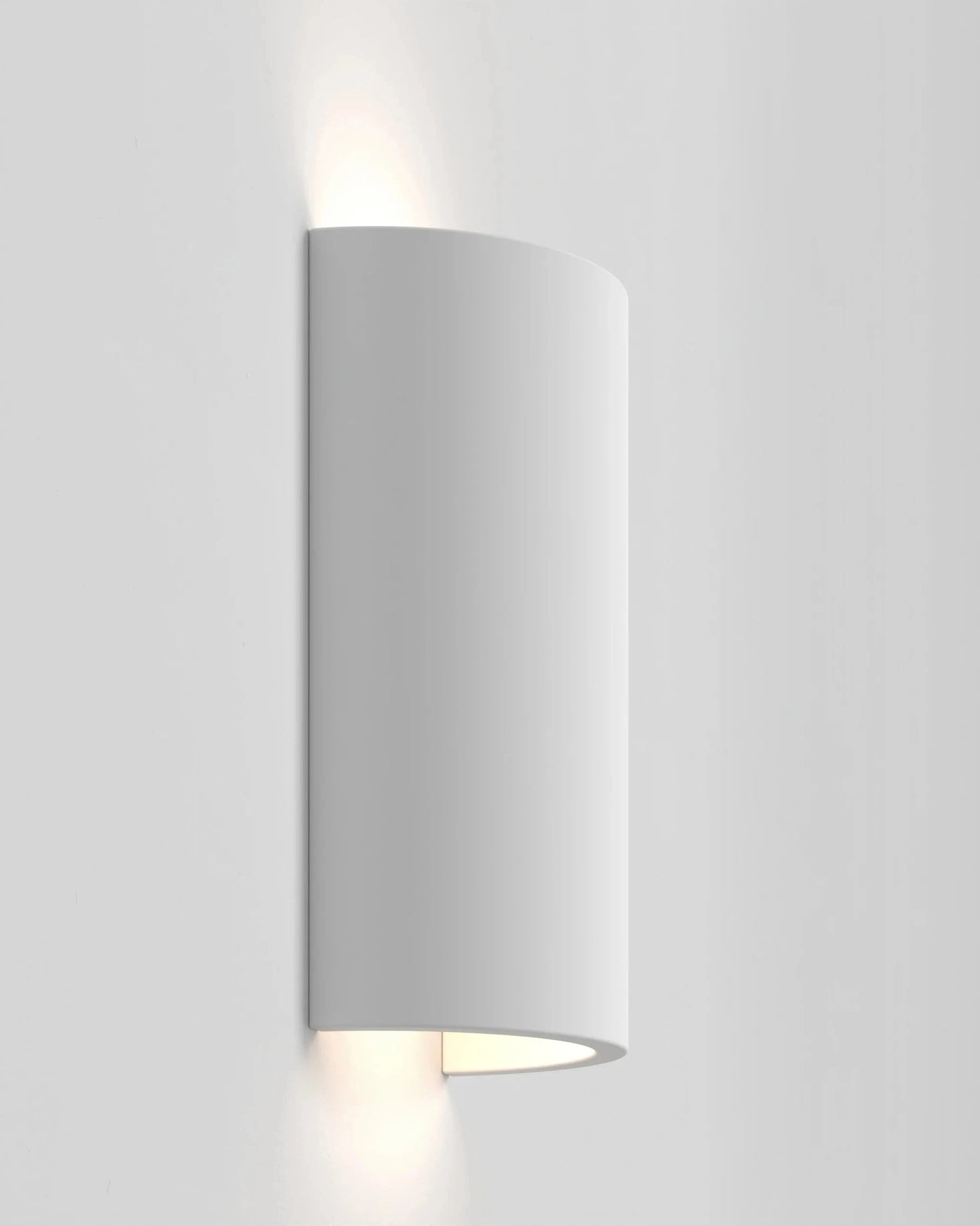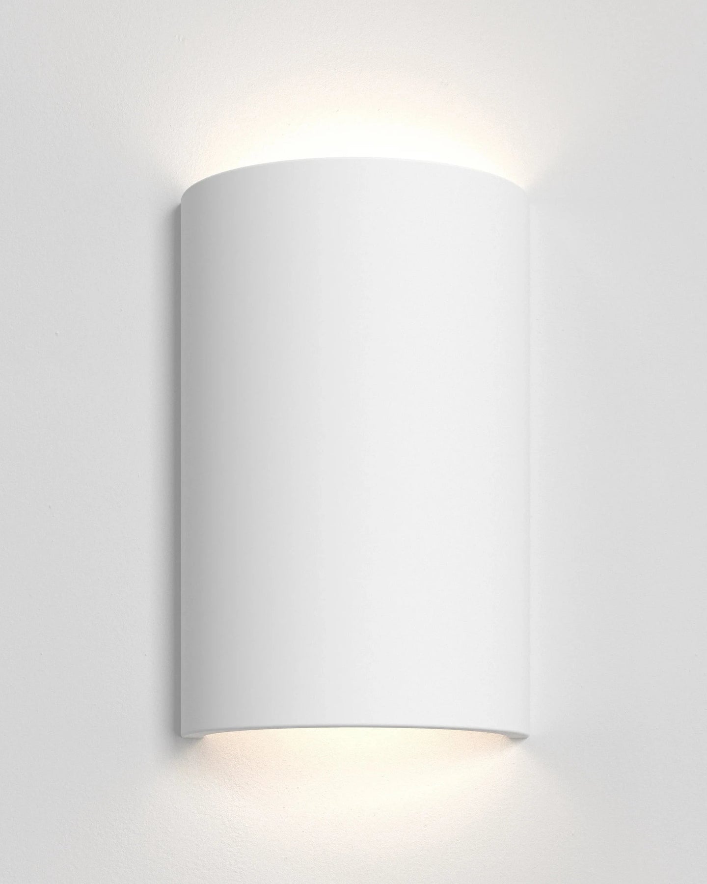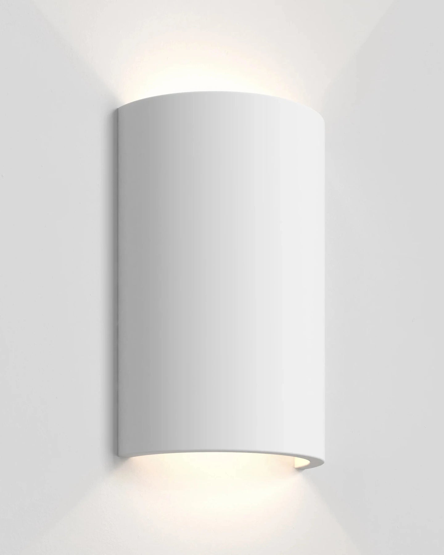 A simple yet multi-functional wall light boasting an on-trend rounded, demi-cylinder silhouette. Light plays with the fixture to bounce off the top and bottom in order to create a playful and interesting effect that is both contemporary yet timeless.
