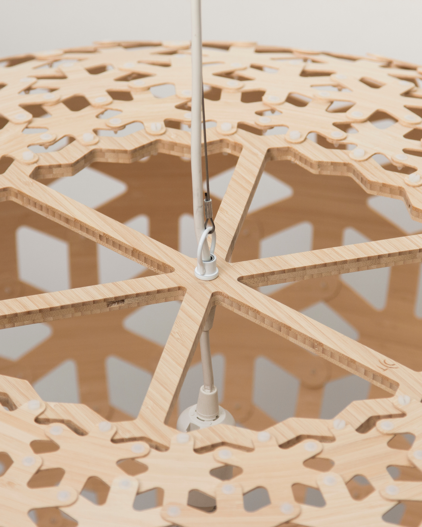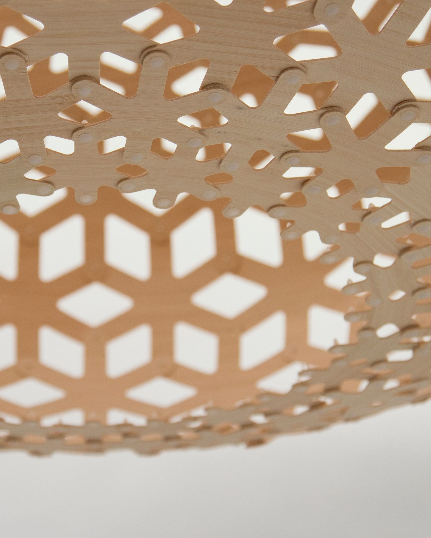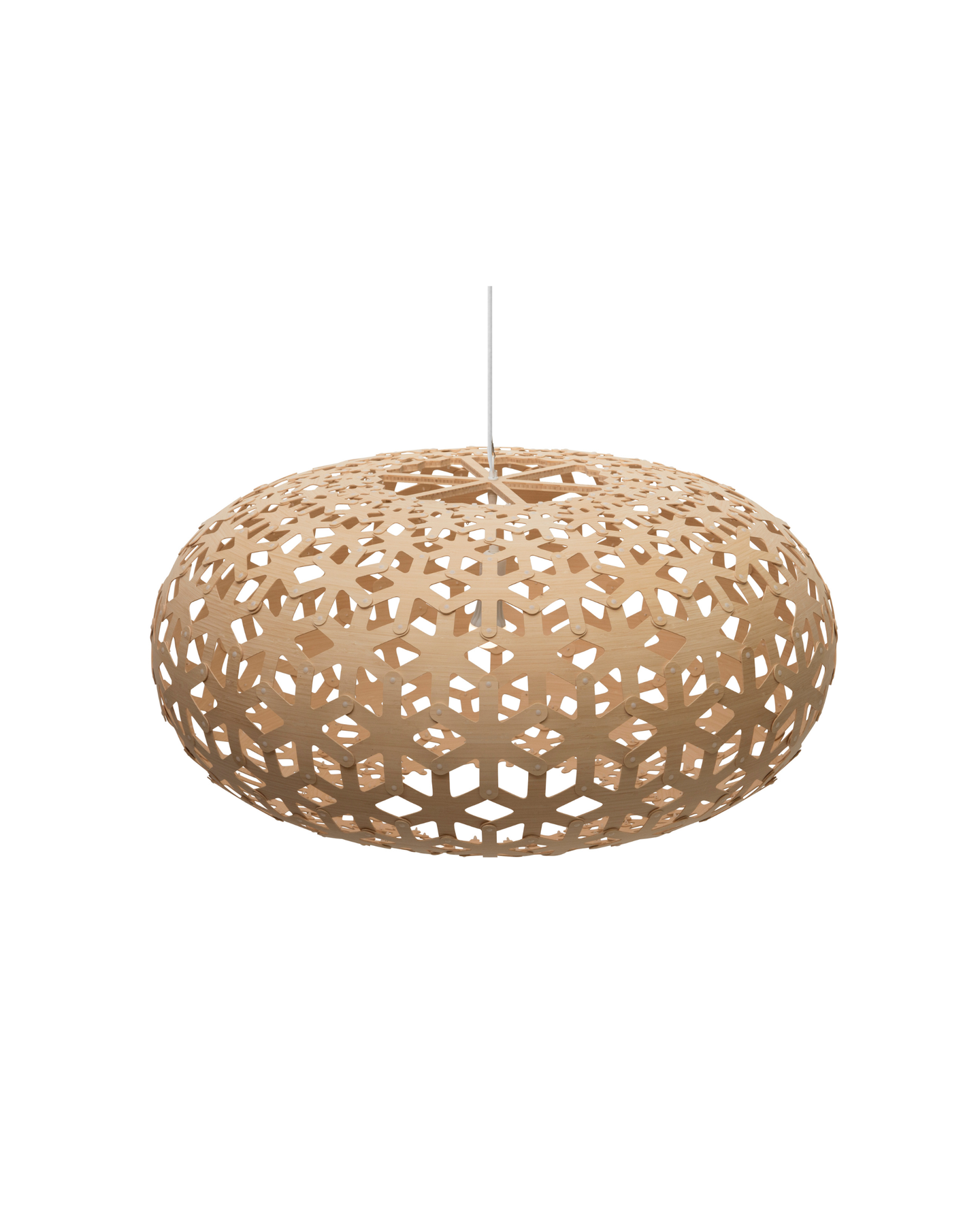 The Snowflake Pendant Light creates an ambient, inviting atmosphere, evoking a sense of comfort and cosiness within a space. Constructed with chemical free, sustainably sourced bamboo. Handmade in New Zealand, this design features a snowflake shape, inspired by the patterns David Trubridge observed during his Antarctica trip.