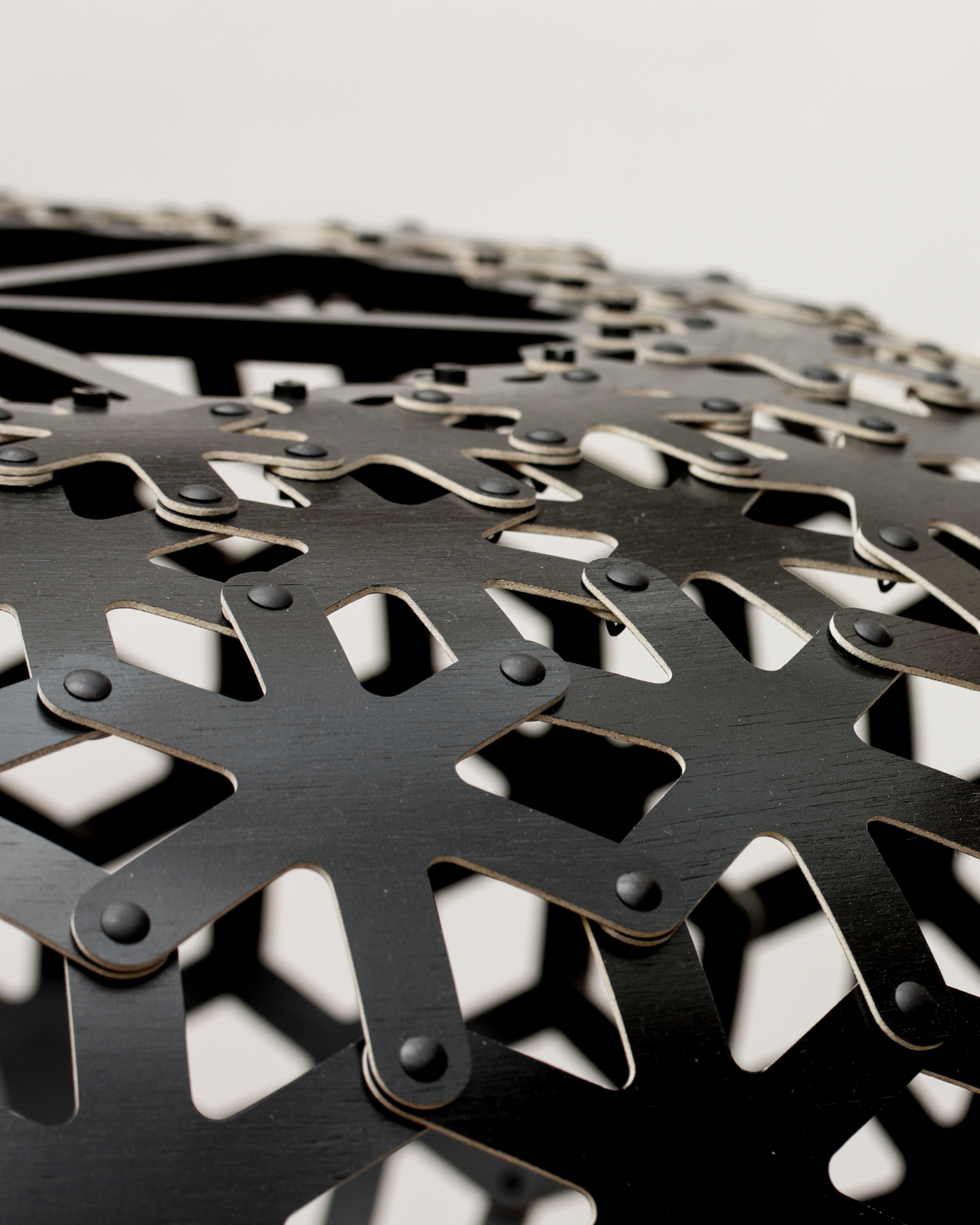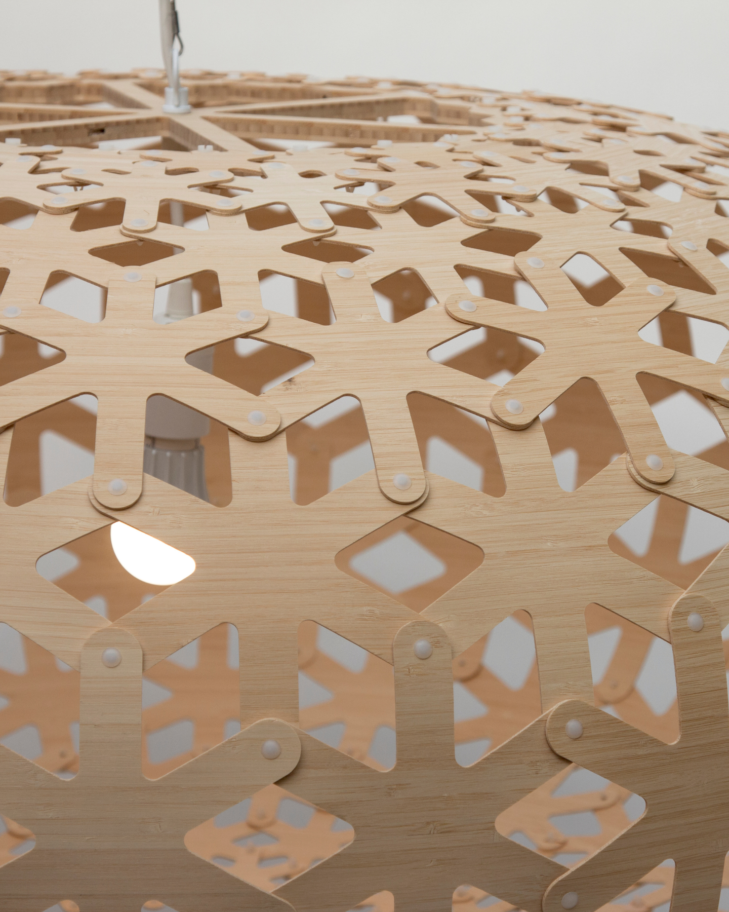 "The same form as Kina but using a snowflake shape instead. It is another outcome of my Antarctica trip. I love the unexpected patterns set up from the repetition of the shapes." – David Trubridge.