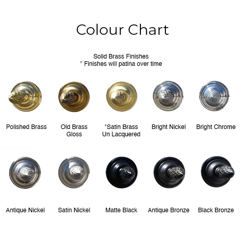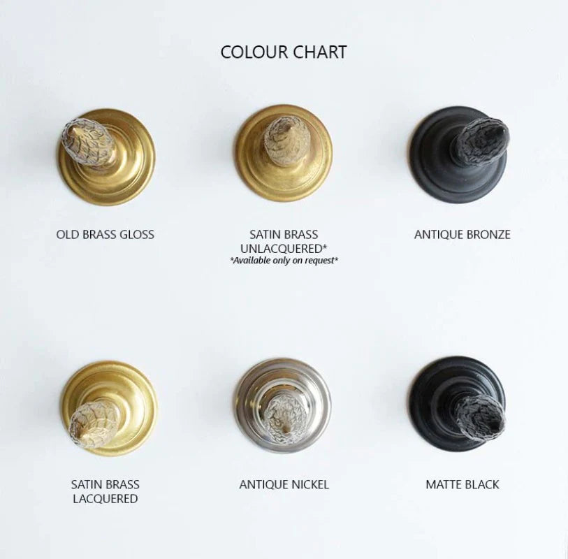Finishes | Satin Brass Lacquered | Antique Bronze | Matte Black | Old Brass Gloss | Polished Nickel |