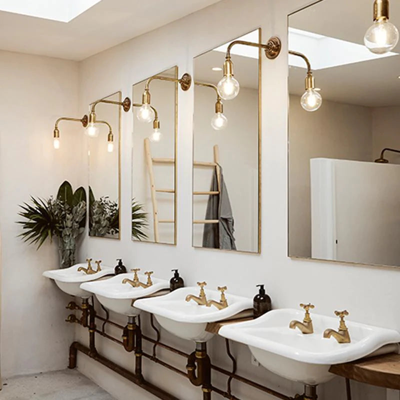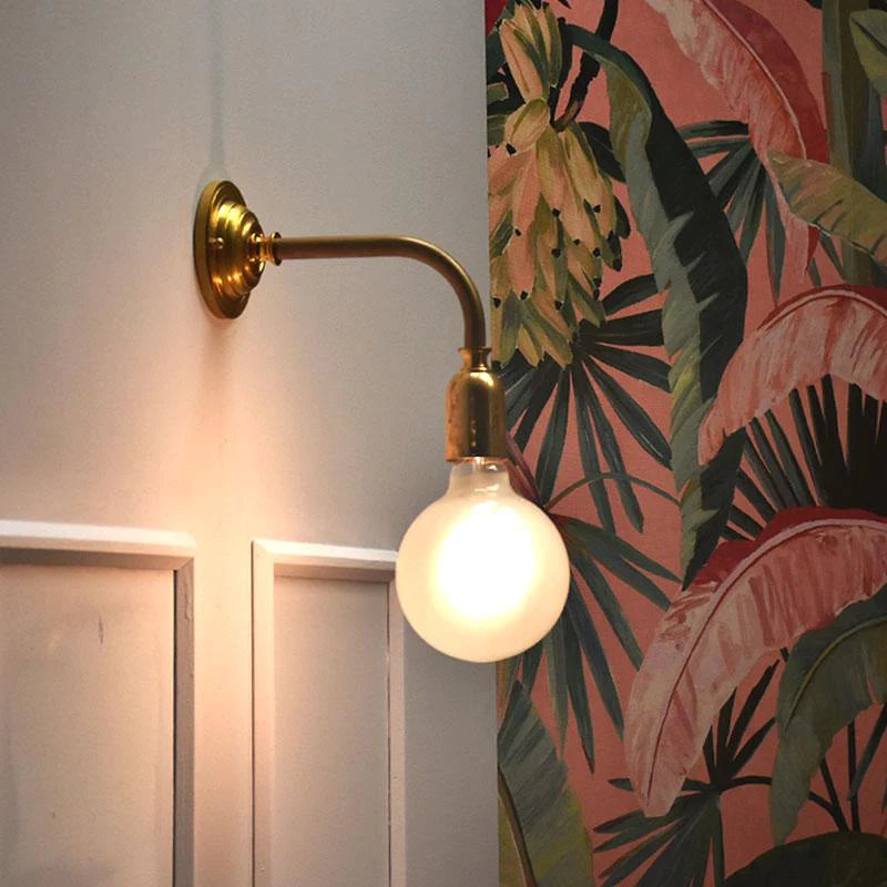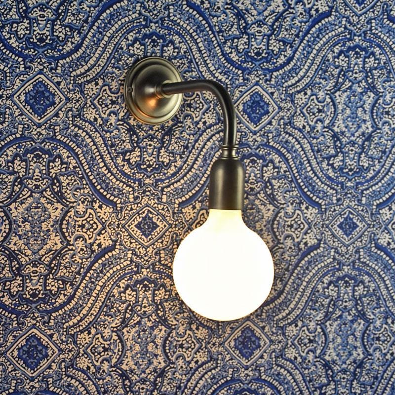 Vintage Solid Brass Exposed Wall Lamp - Matte Black / Long
