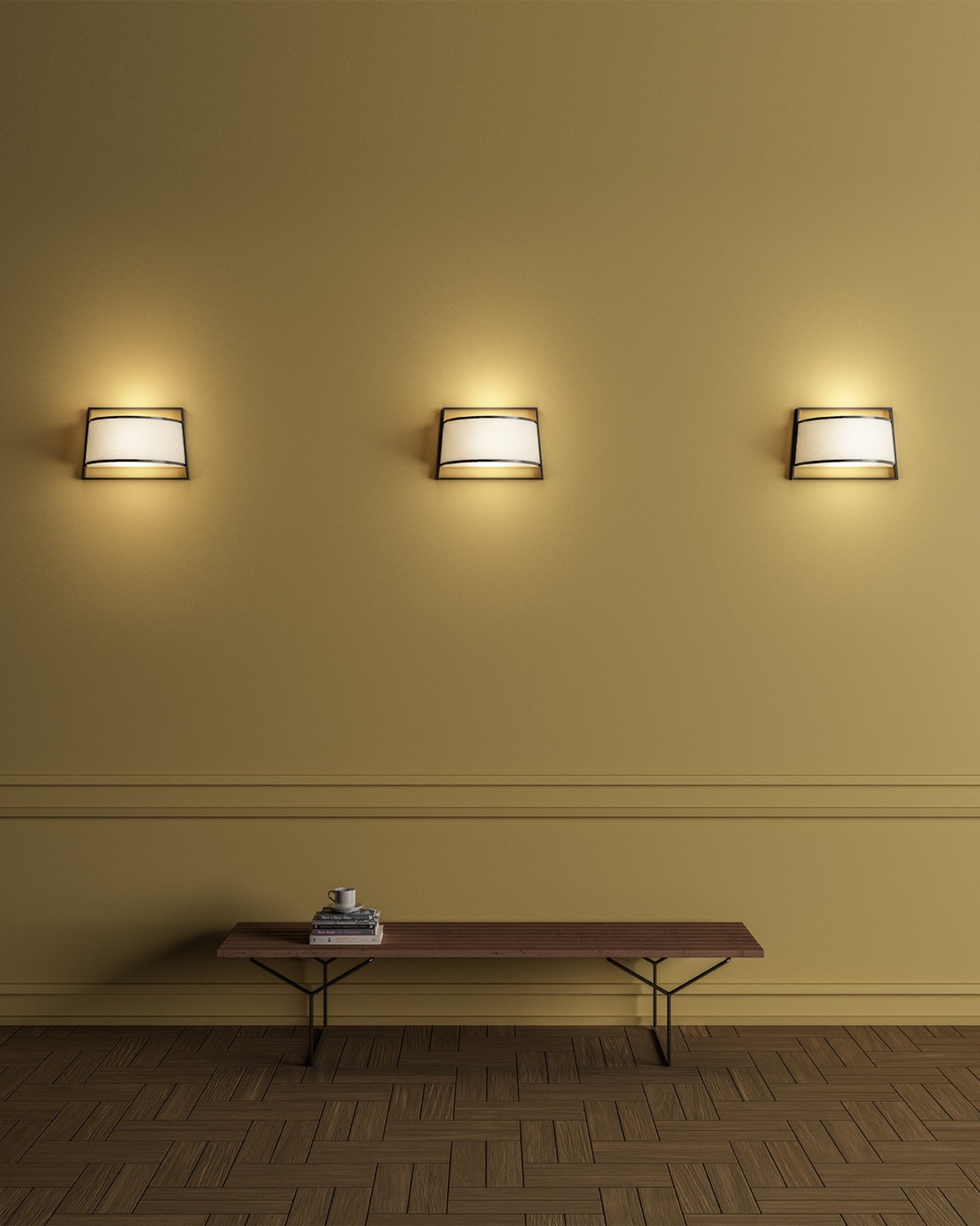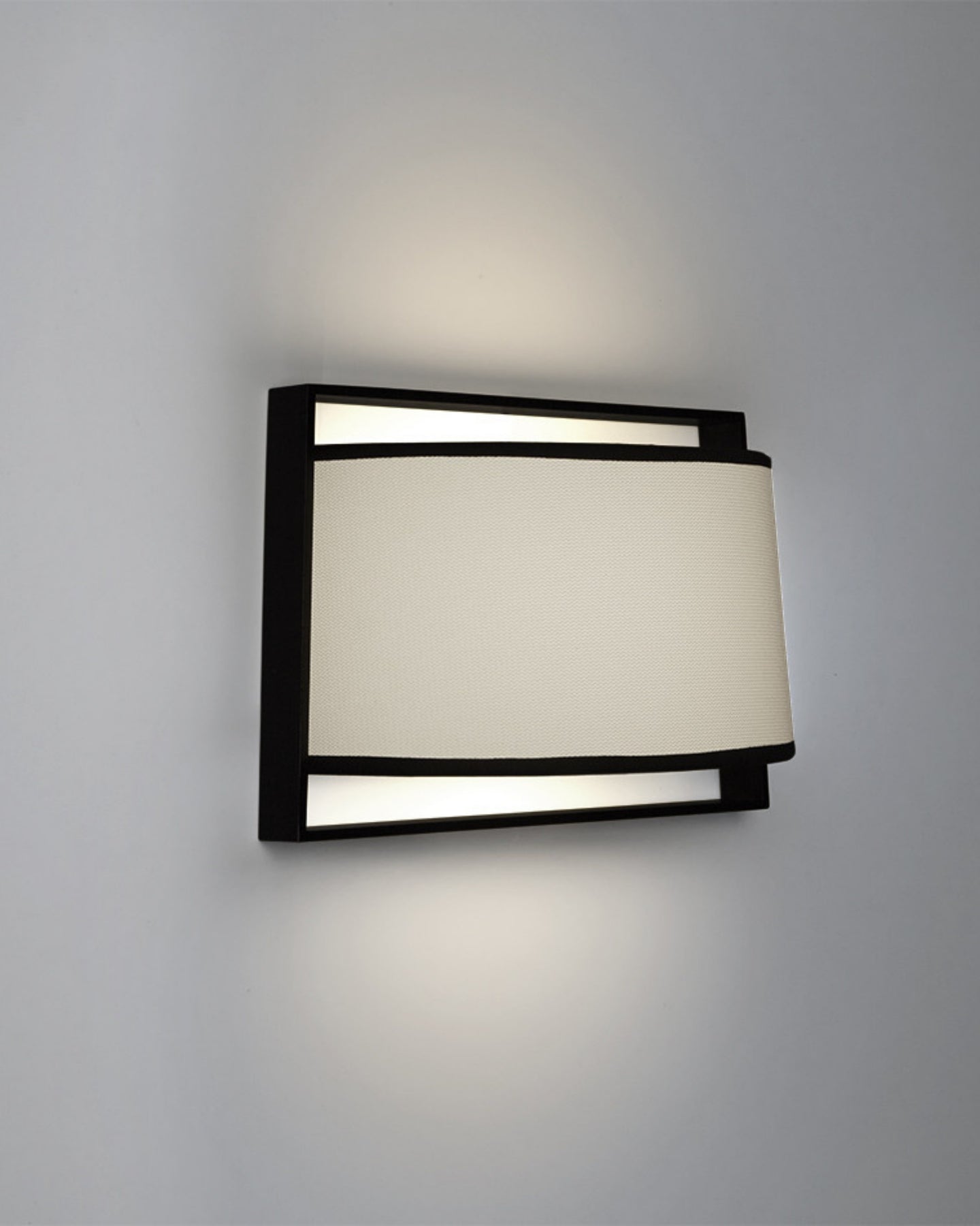 Available in white or beige mesh fabric, the semi-circular shade is mounted on a sleek metal structure painted with black epoxy powder. Light and minimalist, it will easily enhance any modern or contemporary interior space with its modern Japandi style. Ideal in corridors, living rooms or bedrooms, this fixture will provide warm white light in the surroundings.