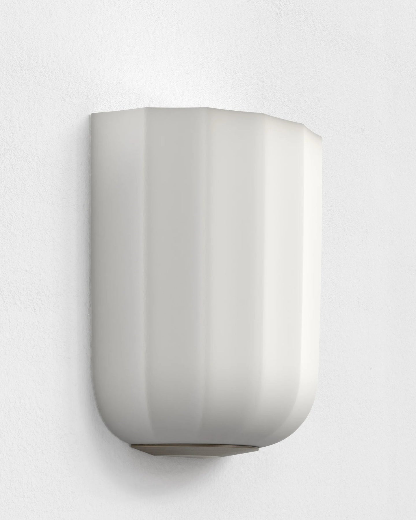The Pleated Glass Wall Sconce takes inspiration from the fluted columns of classical Greek architecture, bringing timeless elegance into contemporary interiors. Featuring a decorative pleated glass shade paired with a sleek metal base, this fixture creates an ambient glow that enhances both residential and commercial spaces. Ideal for hallways, living areas, or as an accent light, the refined design makes it a sophisticated addition to any modern setting.
