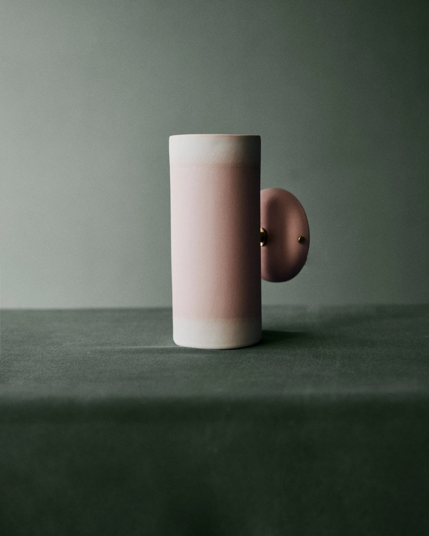 Ceramic Dusked Eos wall light on a dark surface and grey background