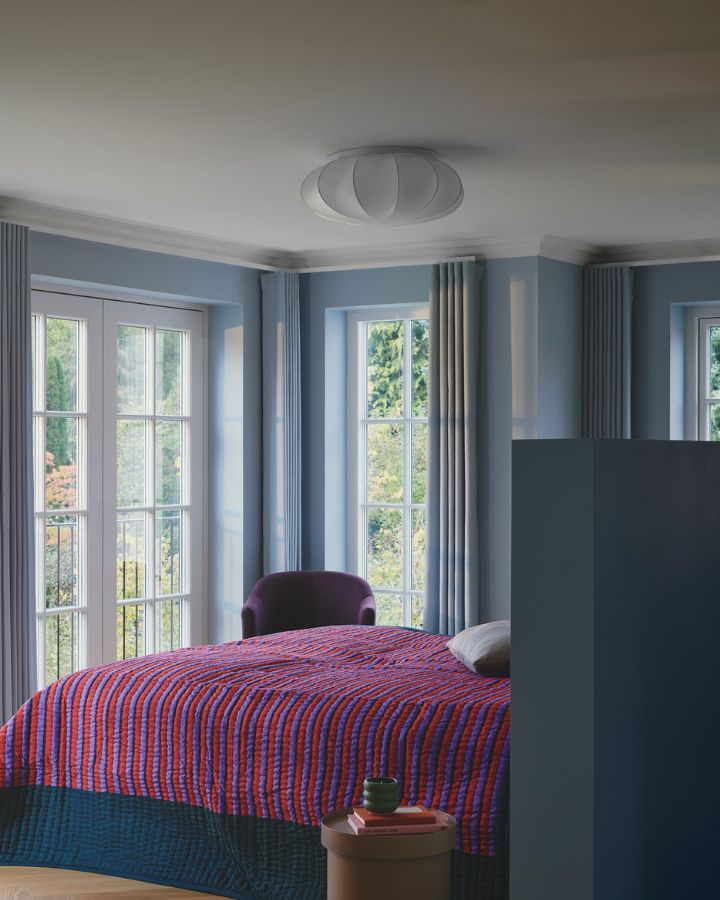 The Fabric & Metal Ceiling Light is a feminine and elegant design. Featuring a metal frame that is wrapped in a translucent fabric to softly diffuse light and create a ballooning effect. The fabric's gentle translucence creates a warm and inviting ambiance, making it ideal for dining rooms, bedrooms, or hallways. The sturdy hidden metal frame ensures durability while adding a chic, industrial edge to the design.