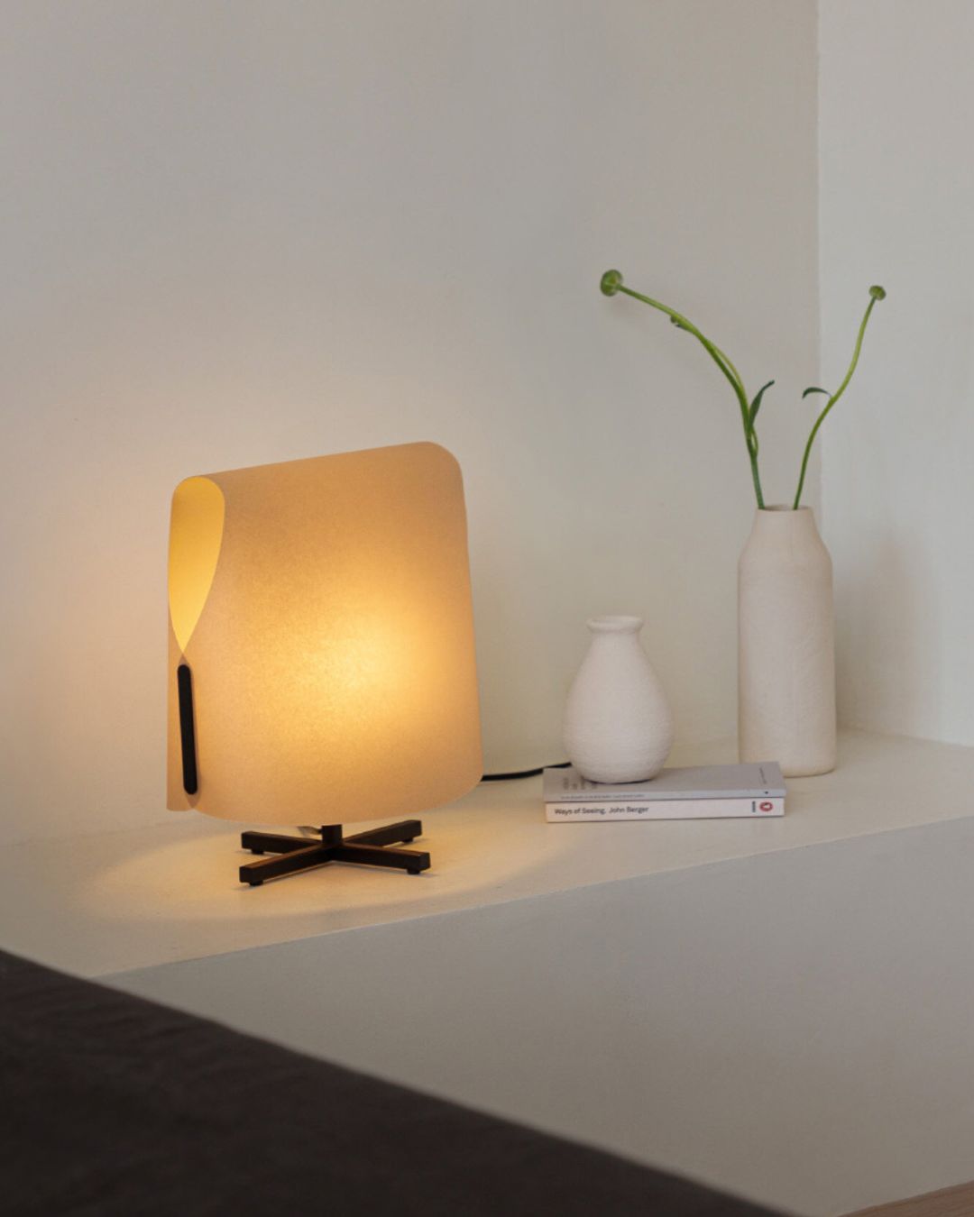 The Folded Shade Table Lamp is inspired by the traditional craftmanship and artisans from Southeast Asia. Utilising a flat sheet to create a three dimensional shade, this innovative lamp is a unique addition to any Japandi or Minimalist style interior. Featuring a shade made from Parchment, a blend of paper and natural fibres, this fitting will create a cosy glow for bedrooms or living rooms.
