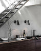 Black 1952 Scandinavian Designed Wall Light with gold accent on a gray background