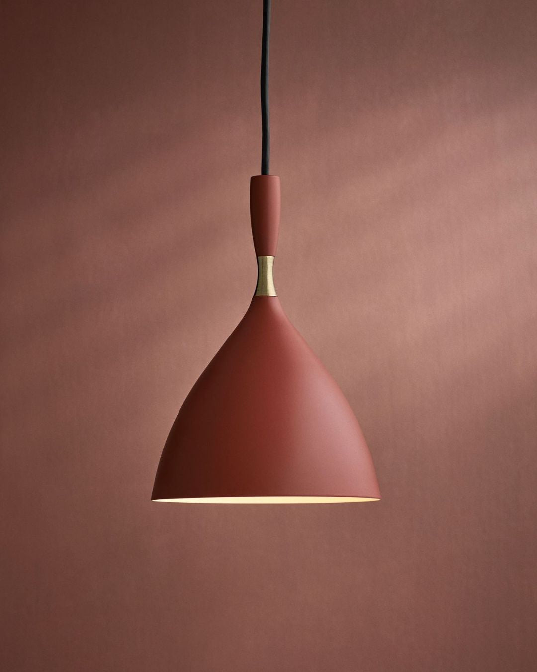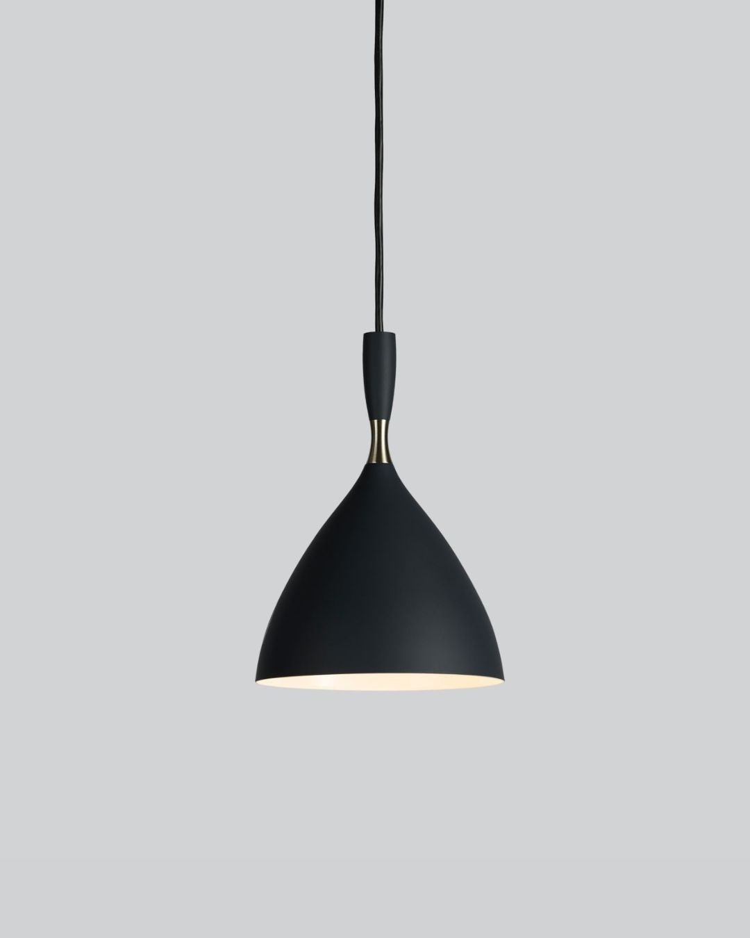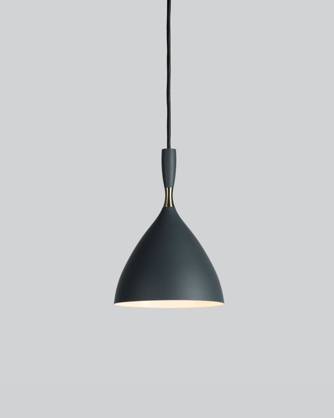 Available in six elegant colours and complemented by a brass ring, these modernist pendants look great on their own or in a row above benchtops and tables. Mix and match different colours for a bit of fun.