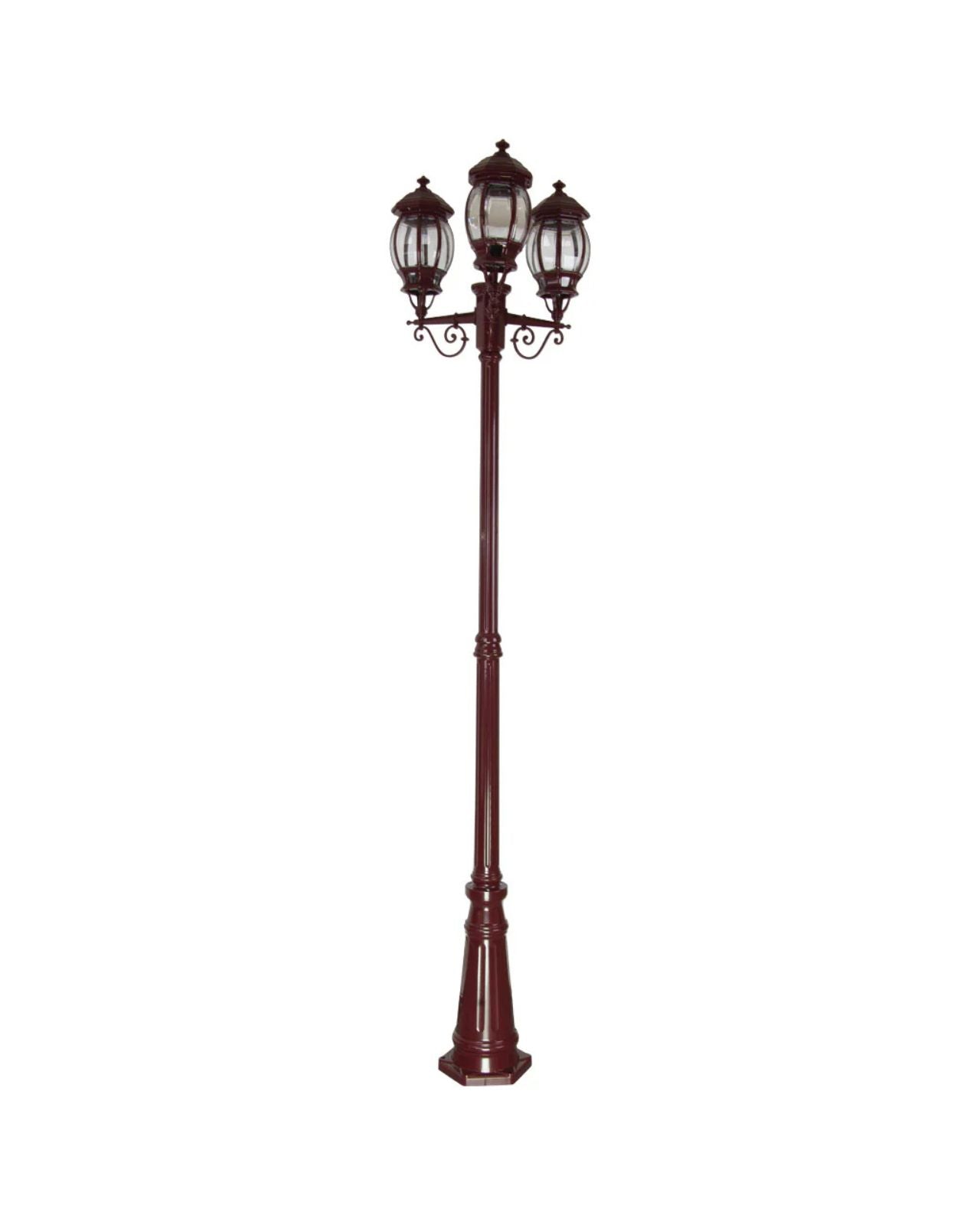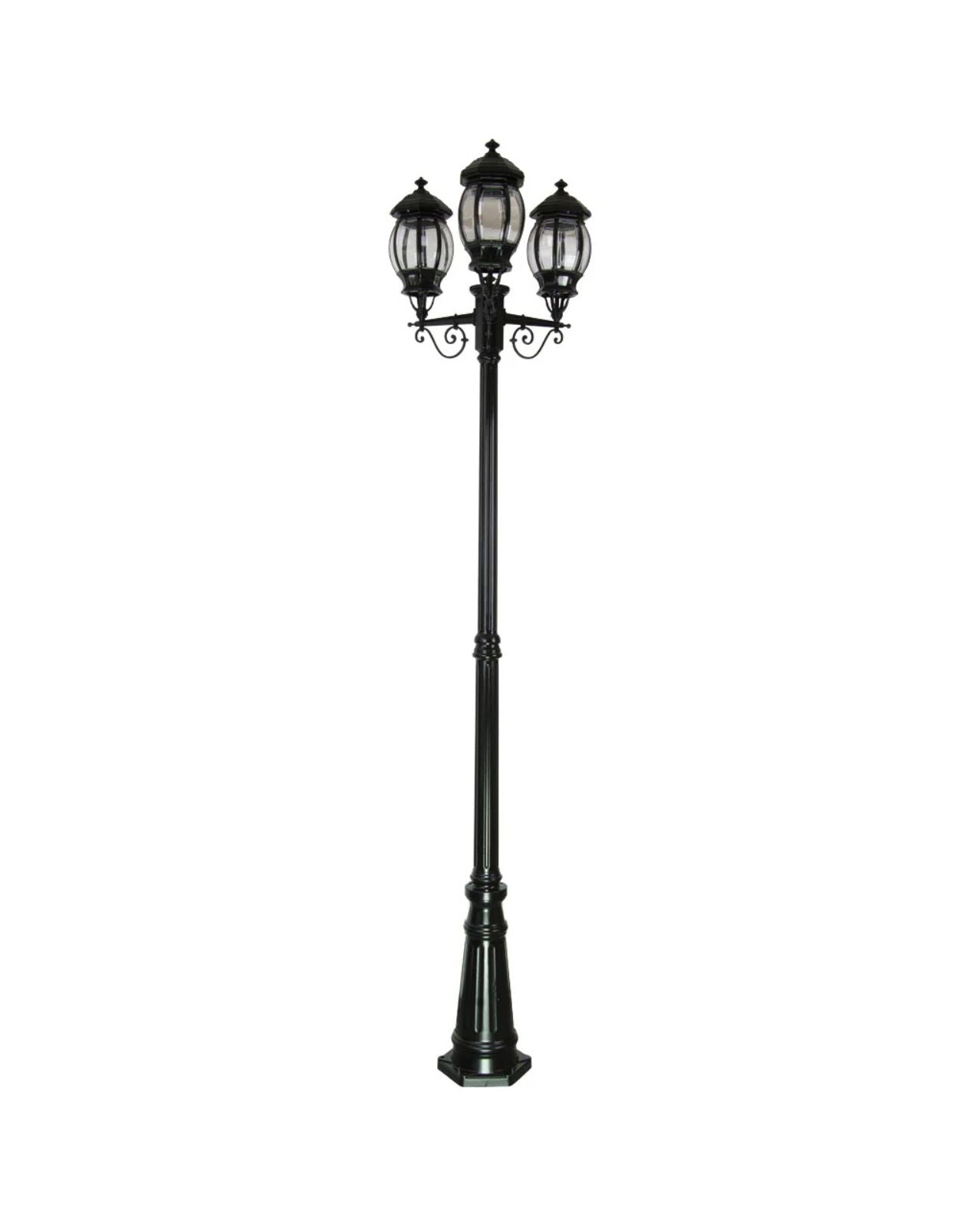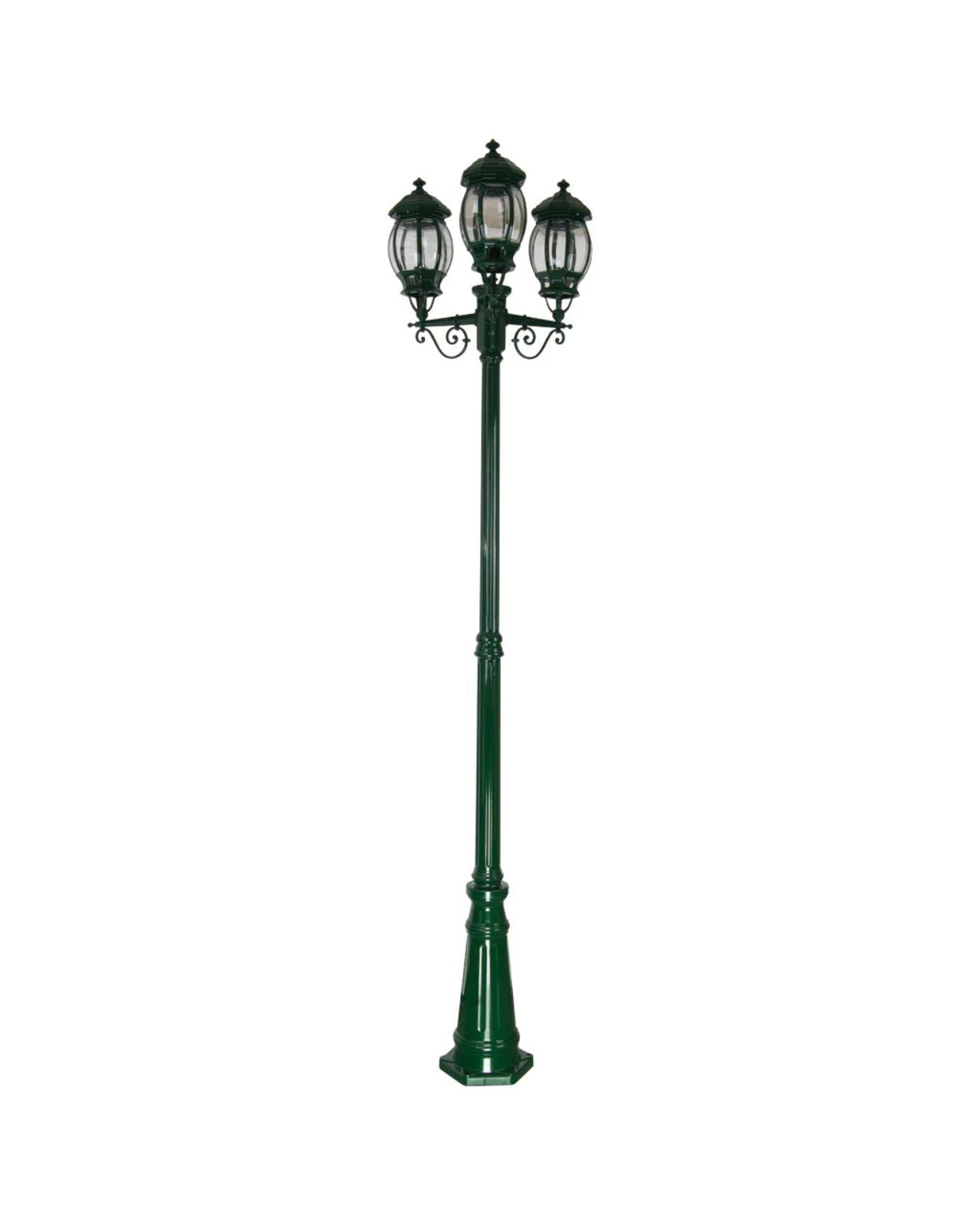 This Italian made and Australian assembled 3 head street light features a die-cast aluminium body and moulded acrylic lens. It is reminiscent of old times long gone and an elegant feature. It is supplied with a 1 year replacement warranty. Available in 1 light, 2 light and 3 light configuration.