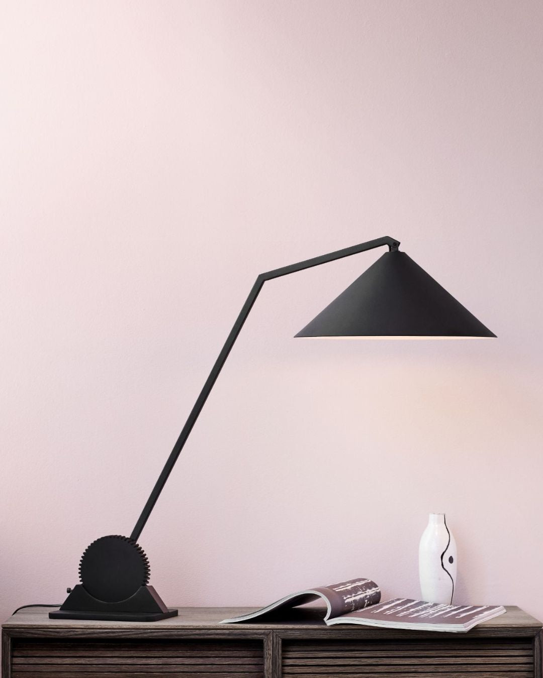 Crafted from aluminium and steel with a matte black finish, it provides focused illumination across work surfaces, with the added option to dim the light to suit the atmosphere you want to create.