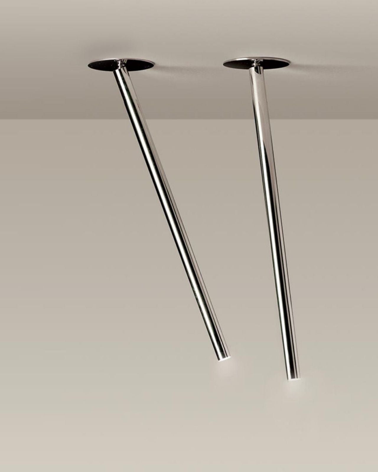 Expertly designed by Piero Castiglioni and Roberto Menghi, this ceiling light boasts a 50cm sleek cylinder that can be easily adjusted to an angle of 25 degrees, making it perfect for a variety of settings. Ideal for lighting up a bedroom, drawing attention to a wall frame, or accentuating a sculpture in a living room corner, this versatile semi-recessed fixture is crafted from high-quality metal and available in both white painted and chromed finishes. Its modern, minimalist design effortlessly complements a range of interior styles, from mid-century modern to classic.