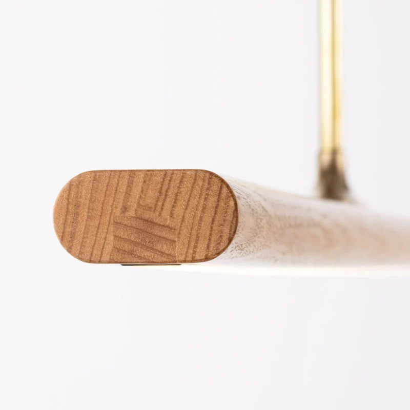 An original design by Fluxwood crafted in Currumbin Queensland- Australia. Featuring a slimline timber body, this minimalist linear pendant highlights the organic beauty of the Australian timber material used. The Australian Slimline Timber Linear Pendant uses minimal strip LED lighting, that is recessed into the pendant that is suspended from a single rod making the pedant both an aesthetic and functional statement to place over a kitchen bench or dining table or to replace existing downlights in an interior space.