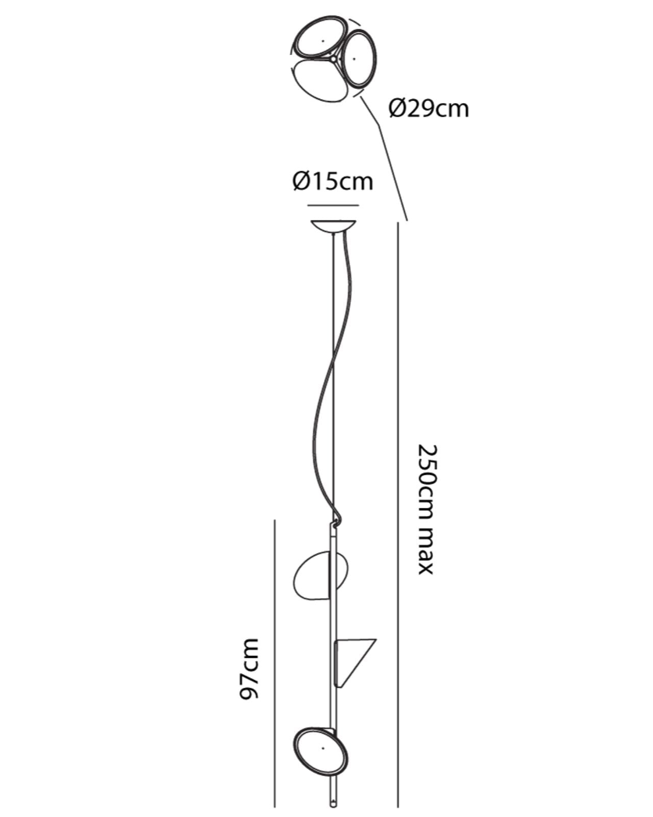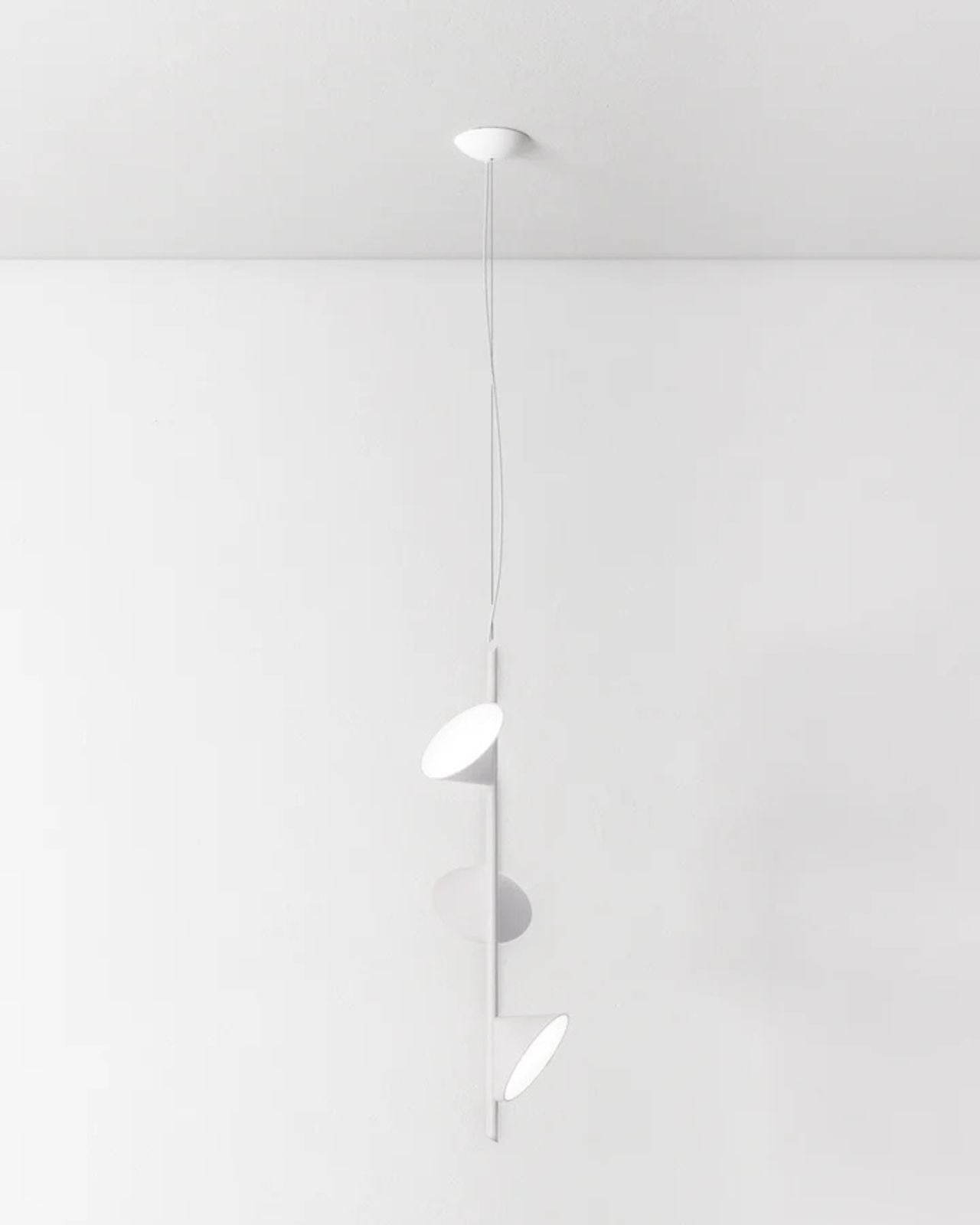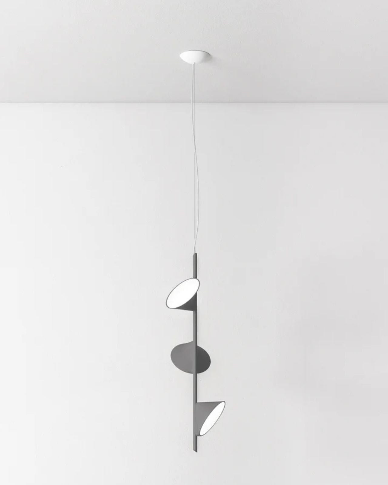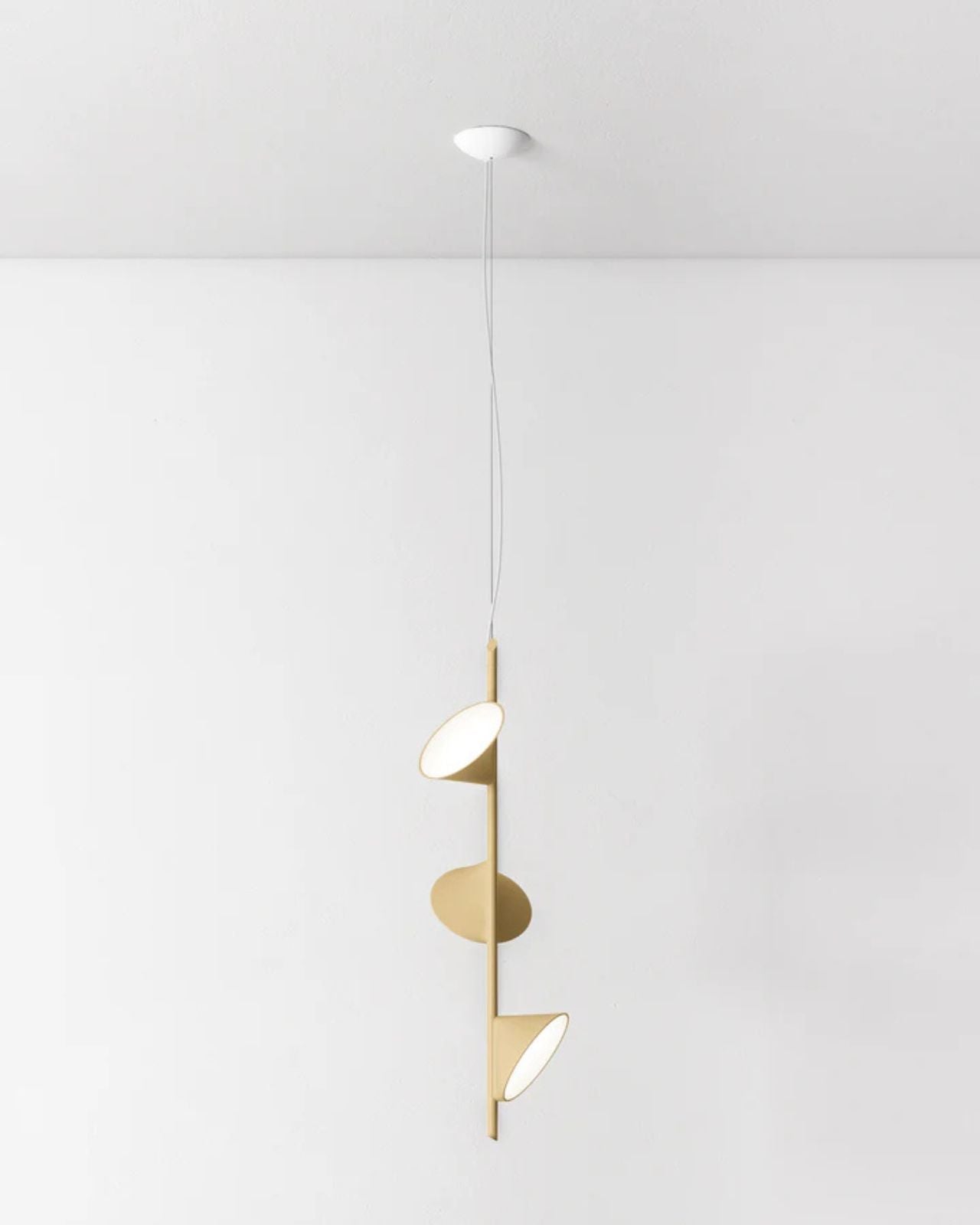 The Blossom Vertical Pendant is a pendant inspired by nature. The three cone shaped shades set on a suspending rod provide downward and upward lighting and the structure of the aluminium blossom-shaped diffuser prevents the pendant to overheat.