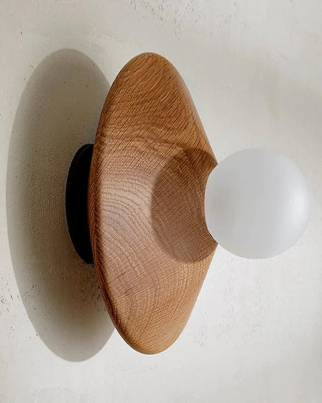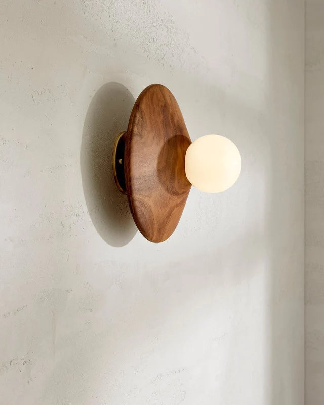 Introducing the wall-mounted disc complimented by a brushed nickel, brass, satin white or matte black backplate, a stunning addition to the Bright Beads collection. These lights are crafted by hand from FSC-approved walnut and oak, showcasing their unique textural qualities as a sculptural element.