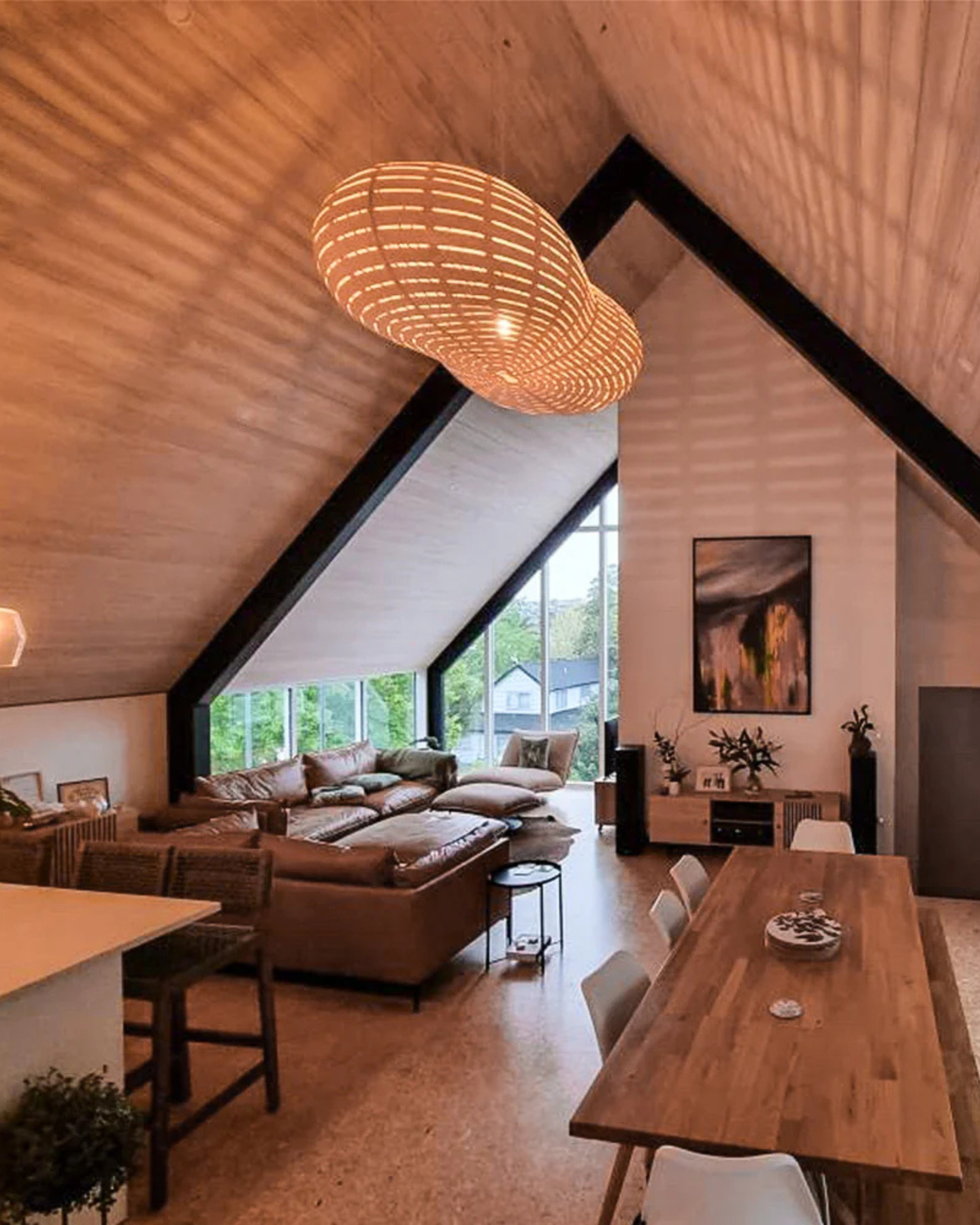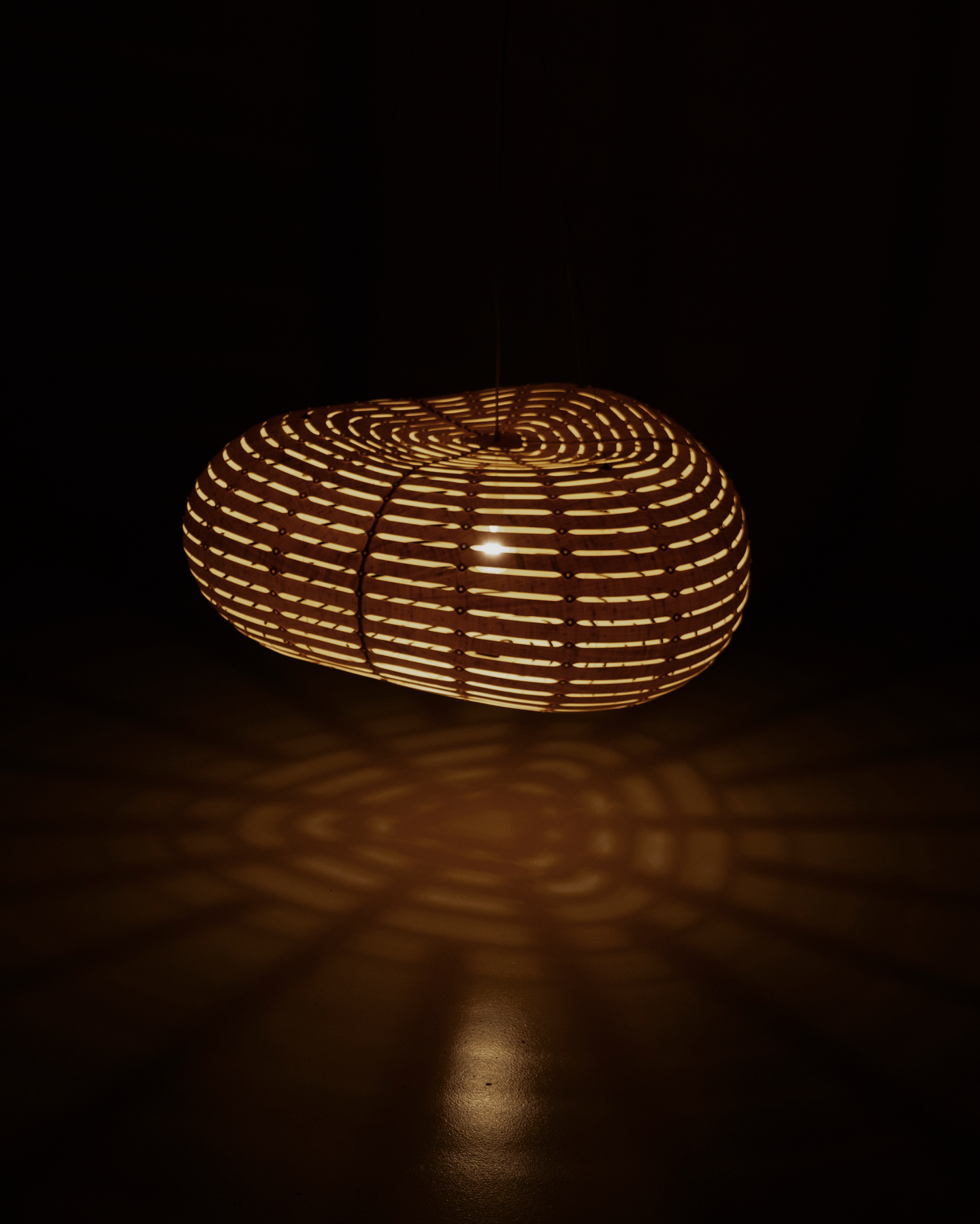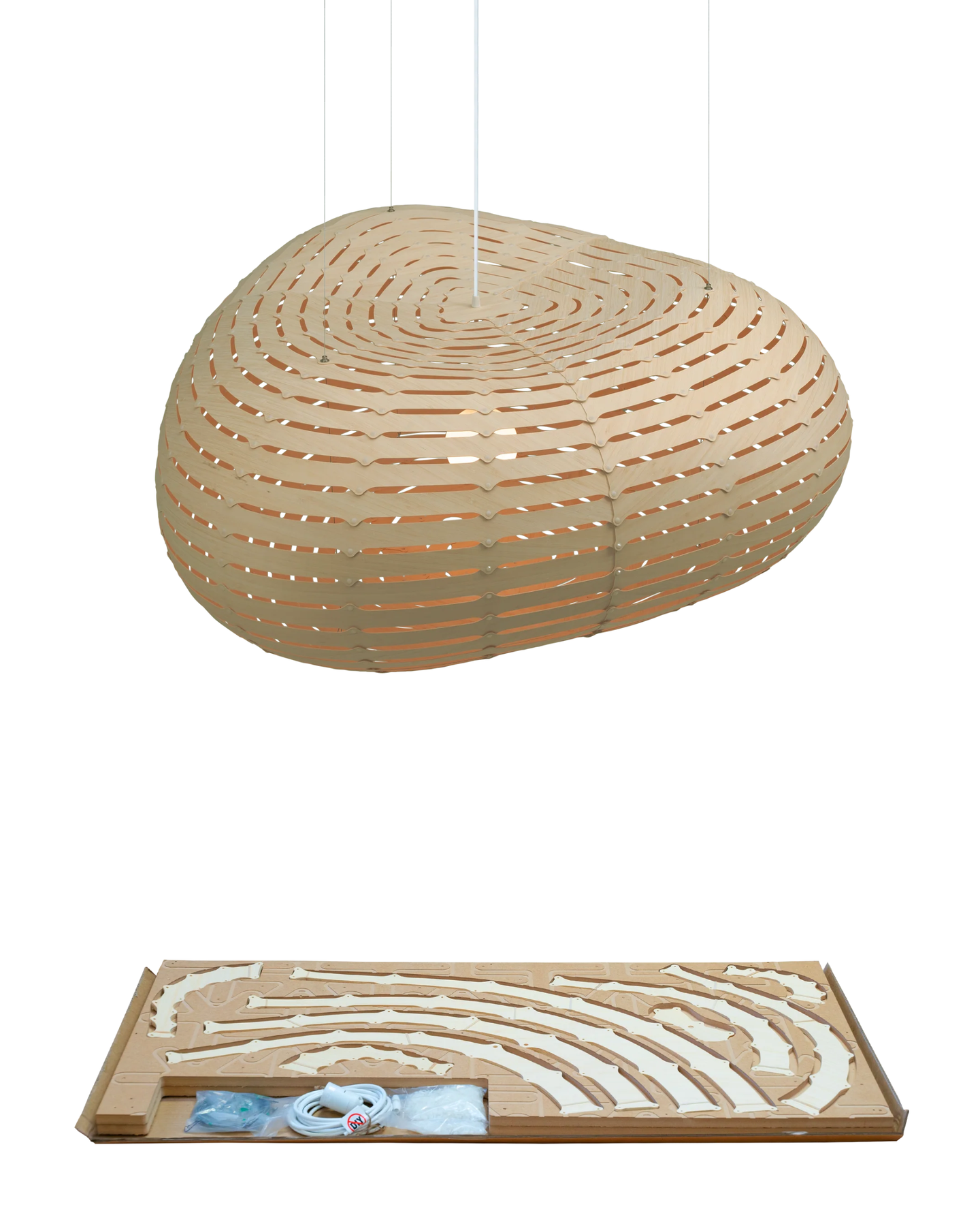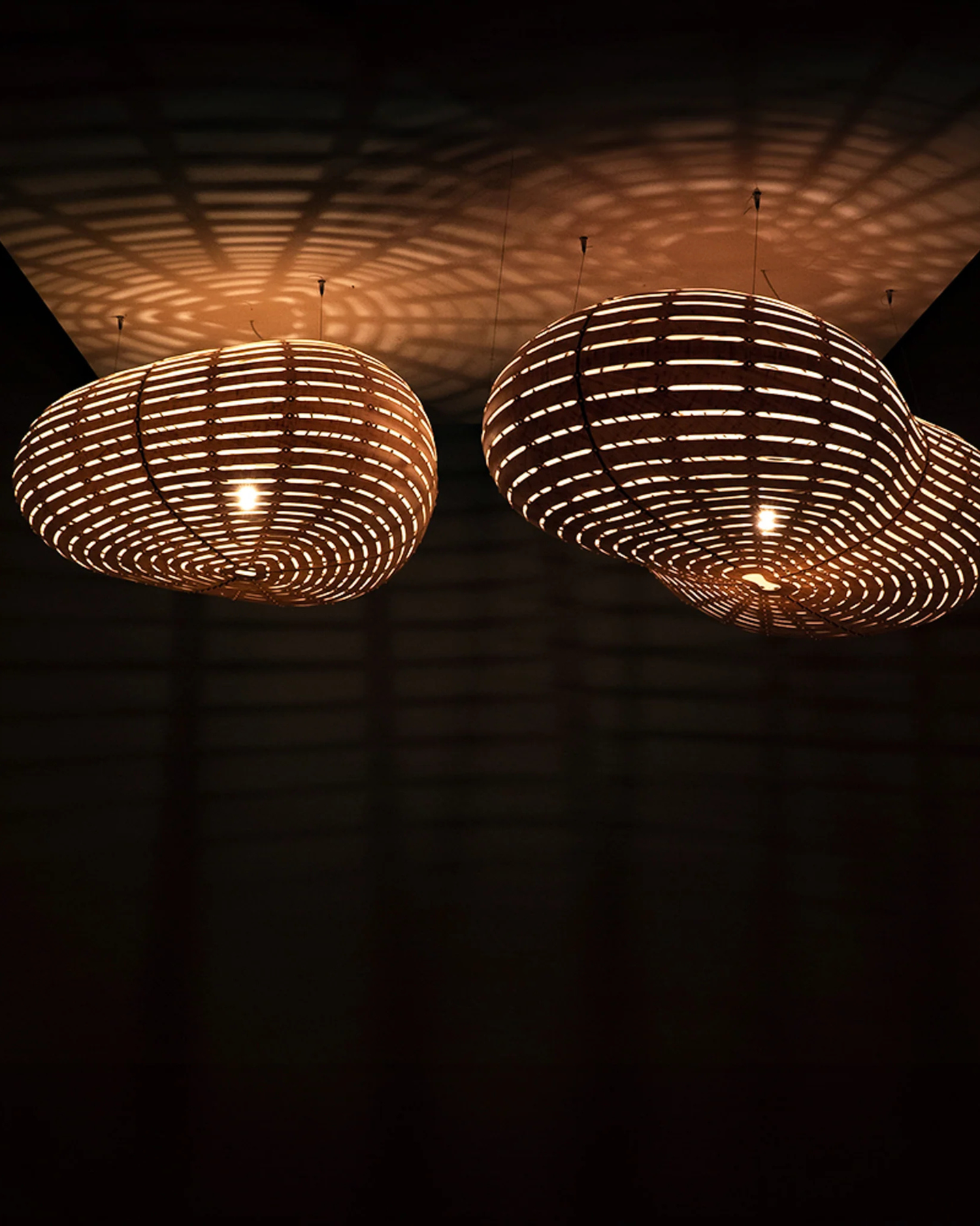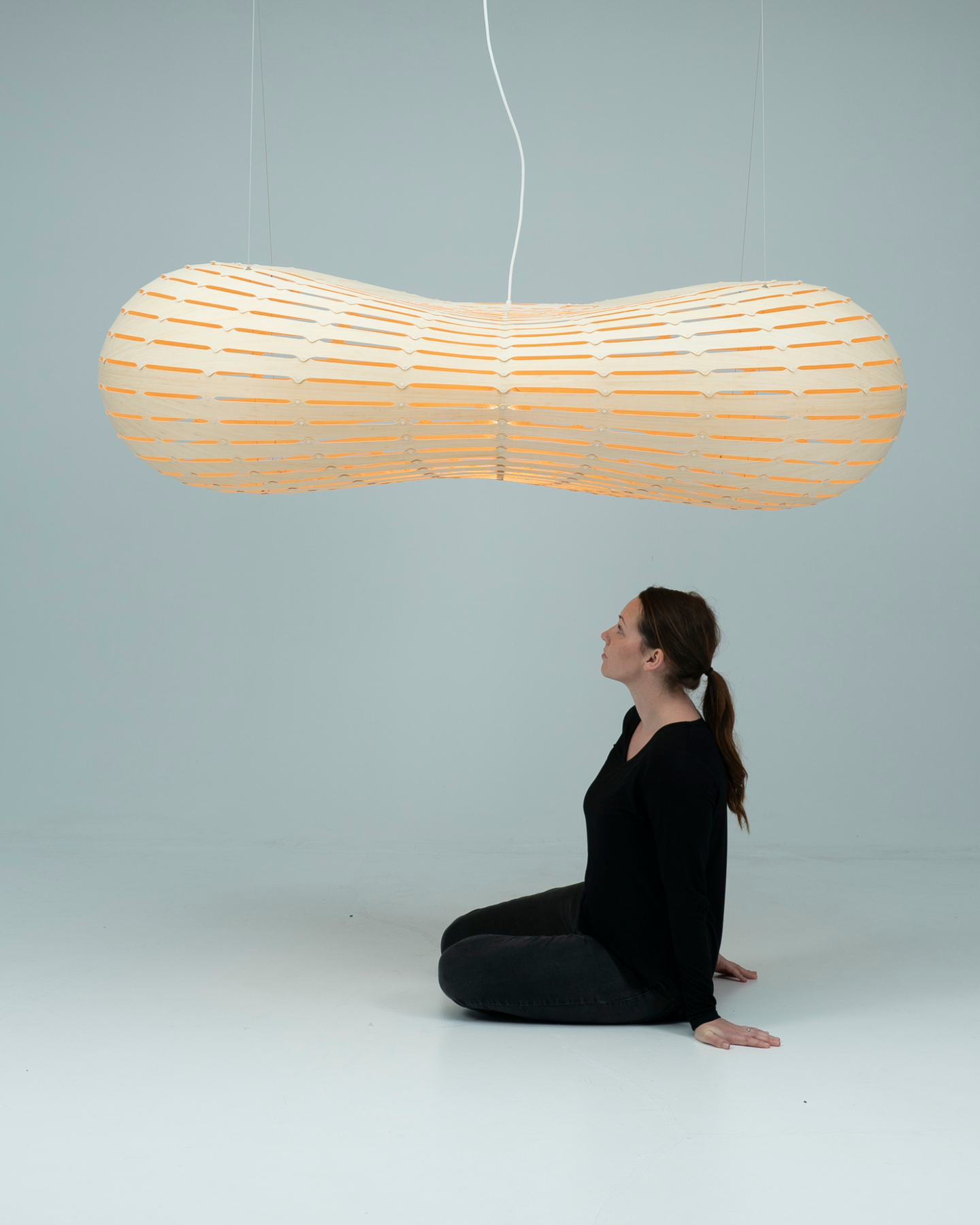 Inspired by the clouds that hover over small islands in the Pacific Ocean, the Cloud Pendant is a striking lighting fixture that plays on the unexpected. Its sinuous, organic shape evokes the forms found in nature, making it perfect for organic interiors. Designed and made in New Zealand by David Trubridge, this fitting is ideal for large voids as an eye-catching focal piece. Ideal for kitchens, dining areas, and living spaces. The Cloud Pendant brings a sense of natural elegance and captivating beauty to any room.