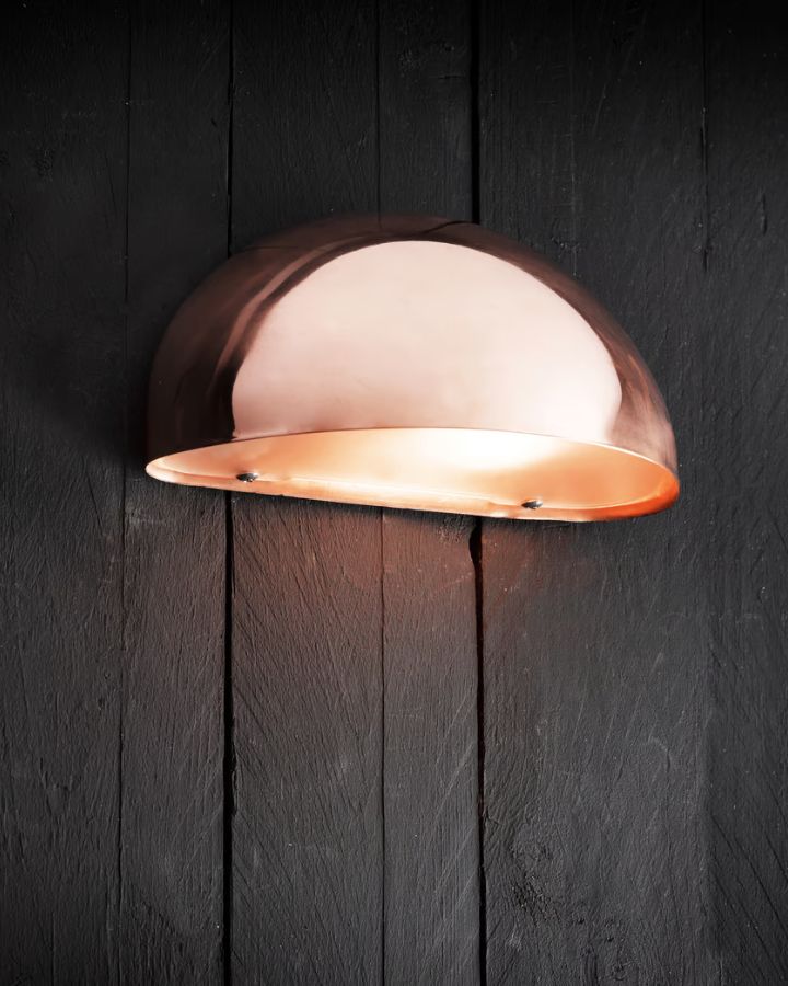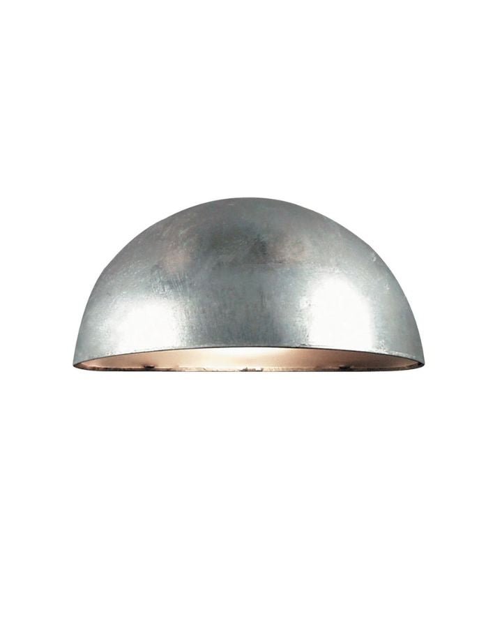 This half-domed exterior wall sconce is designed to illuminate front entranceways, fences or stairways. Crafted from durable materials this design is suitable for installation in coastal areas. Available in galvanised steel or copper.
