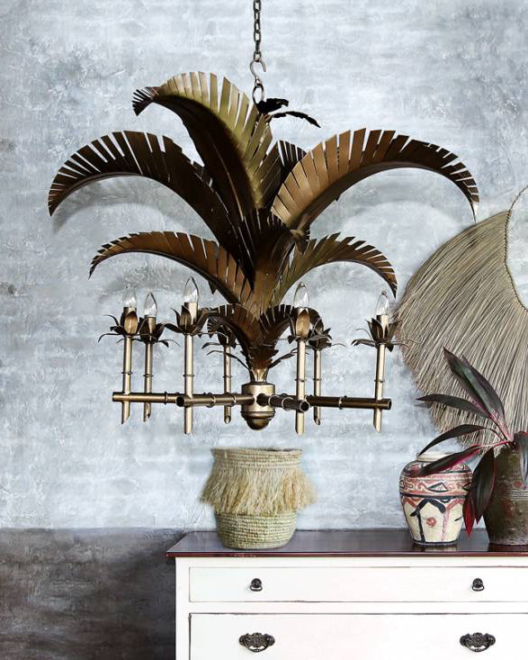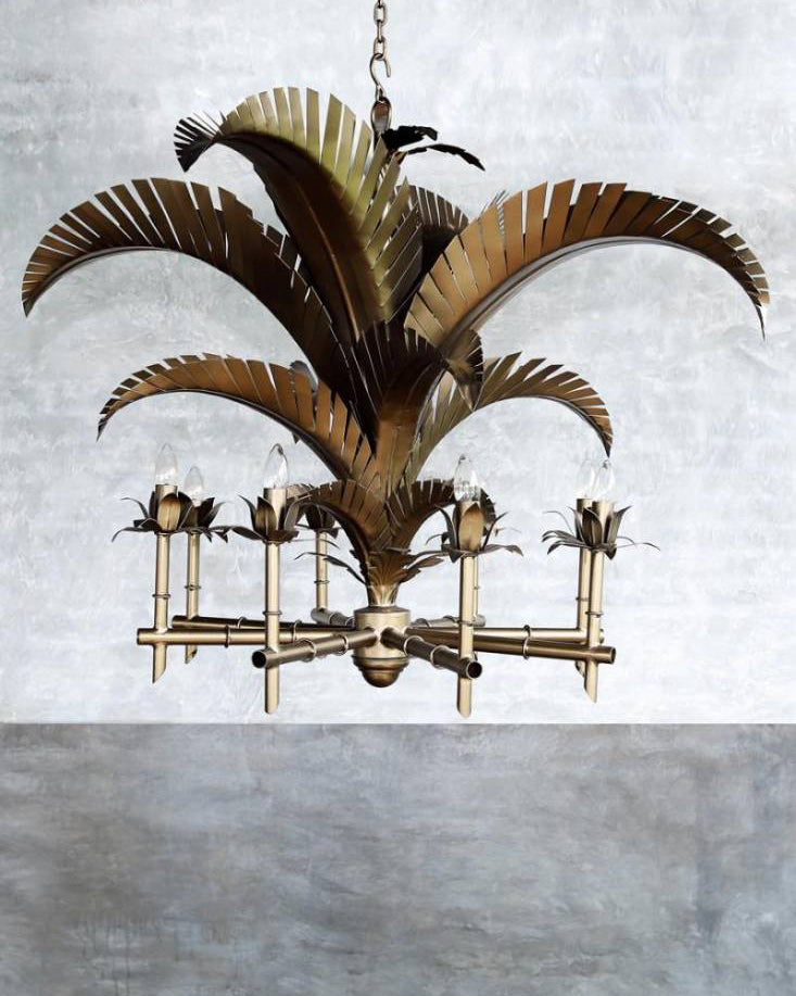 This eclectic chandelier draws inspiration from palm trees and bamboo for a stunning coastal-luxe statement.