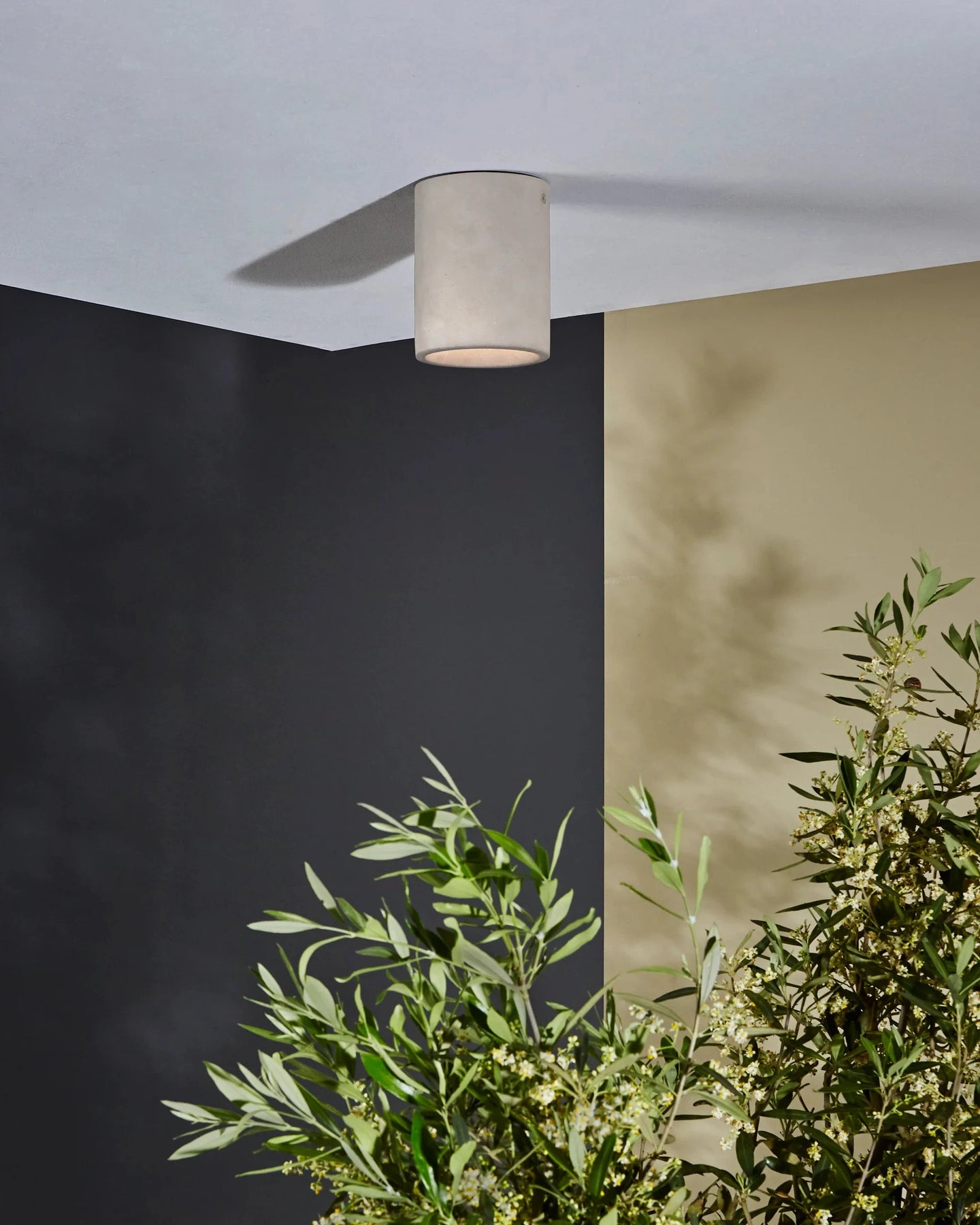 This modern ceiling light features a slender, minimalist design in a matte concrete finish, bringing a subtle, contemporary touch to your downlighting. Its clean lines and understated aesthetic make it ideal for enhancing exterior spaces, particularly under canopies where it delivers a broad, soft illumination.