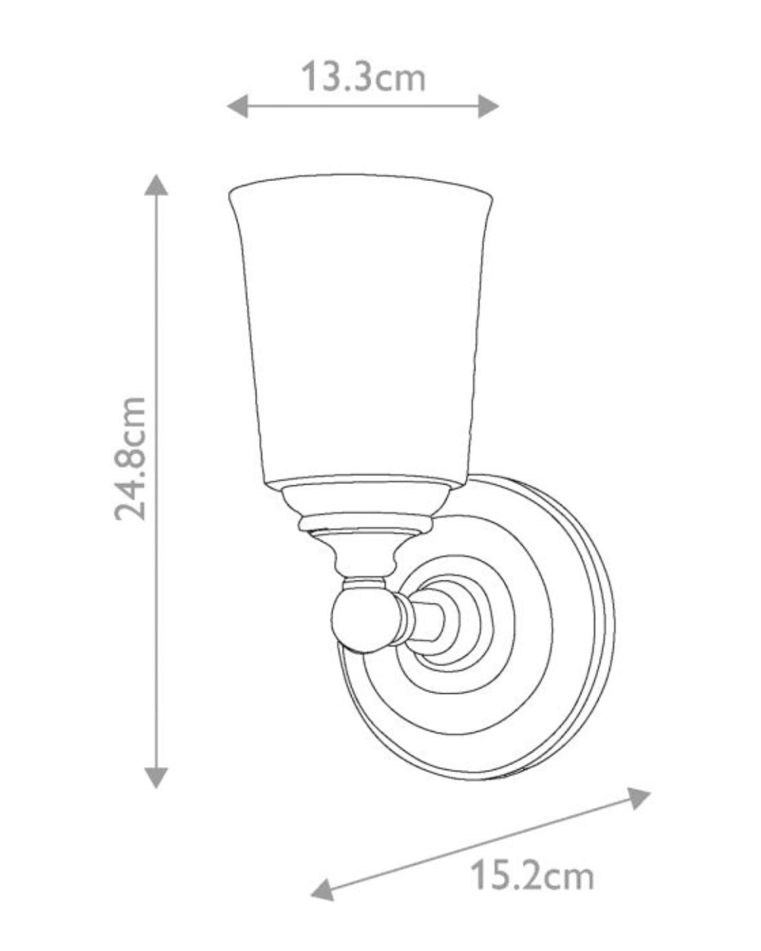 This Colonial Chrome and Glass Wall Light is distinguished by its round design and chrome or brass finished body, featuring an opal-etched or seeded glass shade. This versatile luminary is not only ideal for bathrooms but can be installed with the shade facing up or down for added customisation.