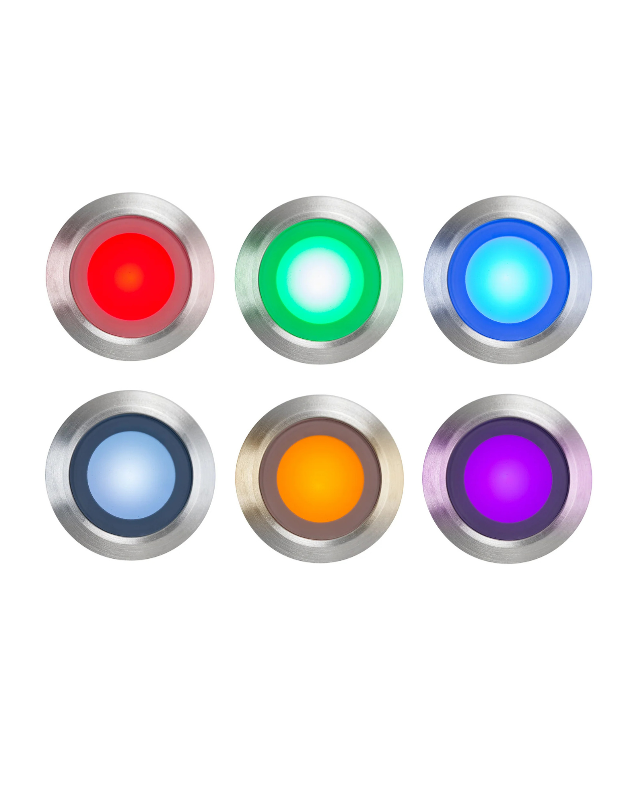 A complete kit of six low-voltage, colour-changing LED deck lights designed for versatile outdoor illumination. Each light is crafted from 316 Marine Grade Stainless Steel with frosted tempered glass.